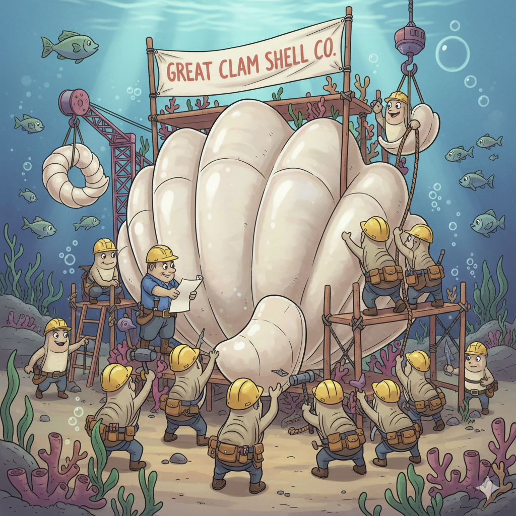 It's amazing how similar the materials that marine life produces to build it's shells are actually very similar to the materials that humans use to build their "shells".... houses and buildings. Their shell materials are very similar to the calcite and sedimentary stone like marble and limestone. Some shells are basically made of cement.