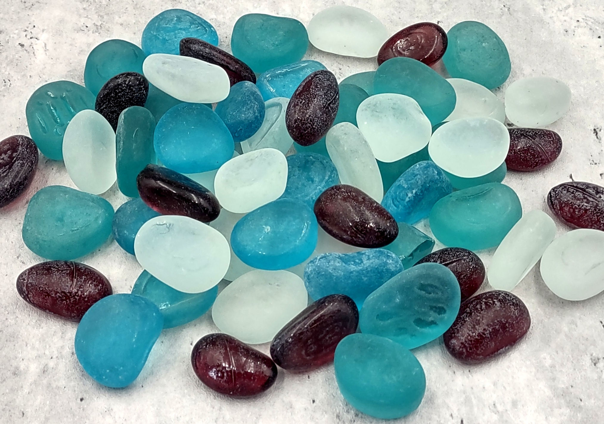Beach Glass Blue Purple White Assorted Frosted Tumbled Rounded Pebbles (approx. 1 kilogram 1+ inches) Sea Glass Pebbles for vases & crafts!