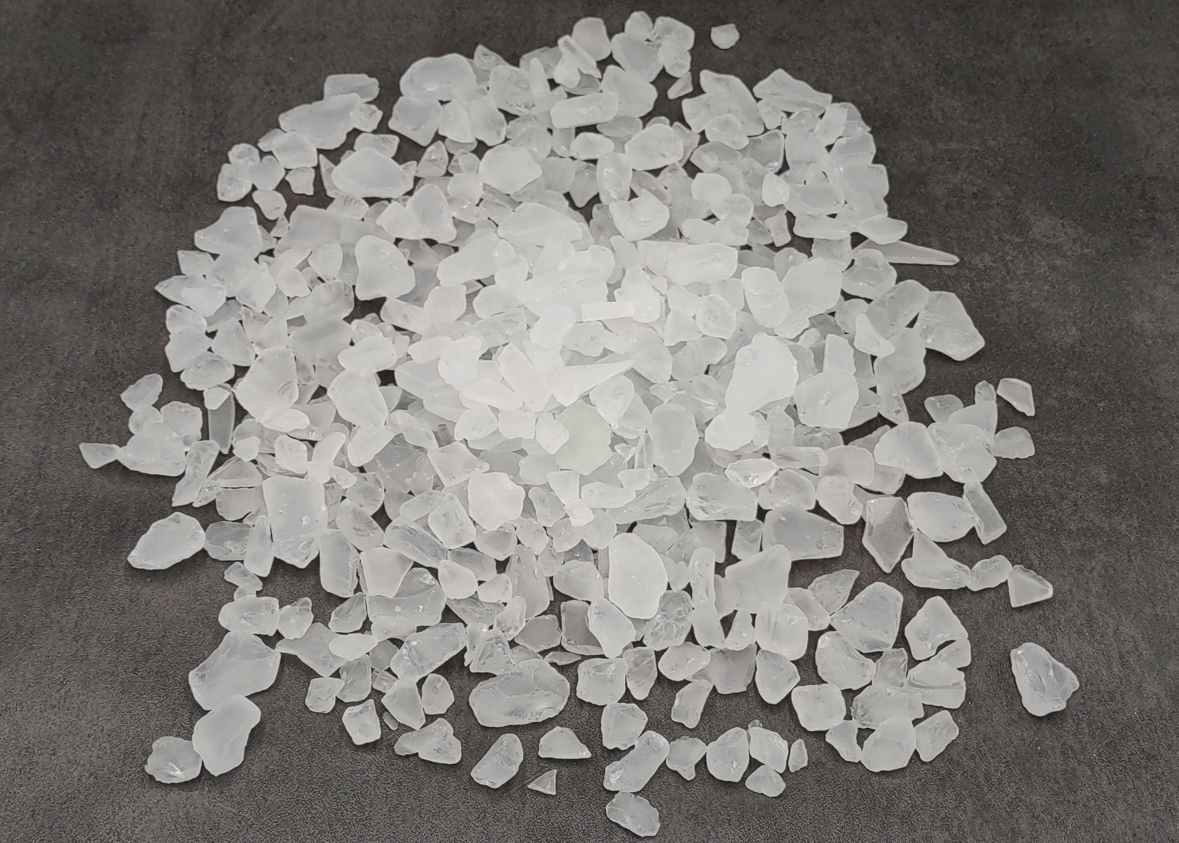 These frosty white small tumbled rough beach glass pieces are machine tumbled recycled/re-manufactured glass pieces. Use our tumbled beach glass to bring a distinctive touch to any craft project or special event arrangements. Can be used as an accent in vases, aquariums, mosaic tile installations, etc.