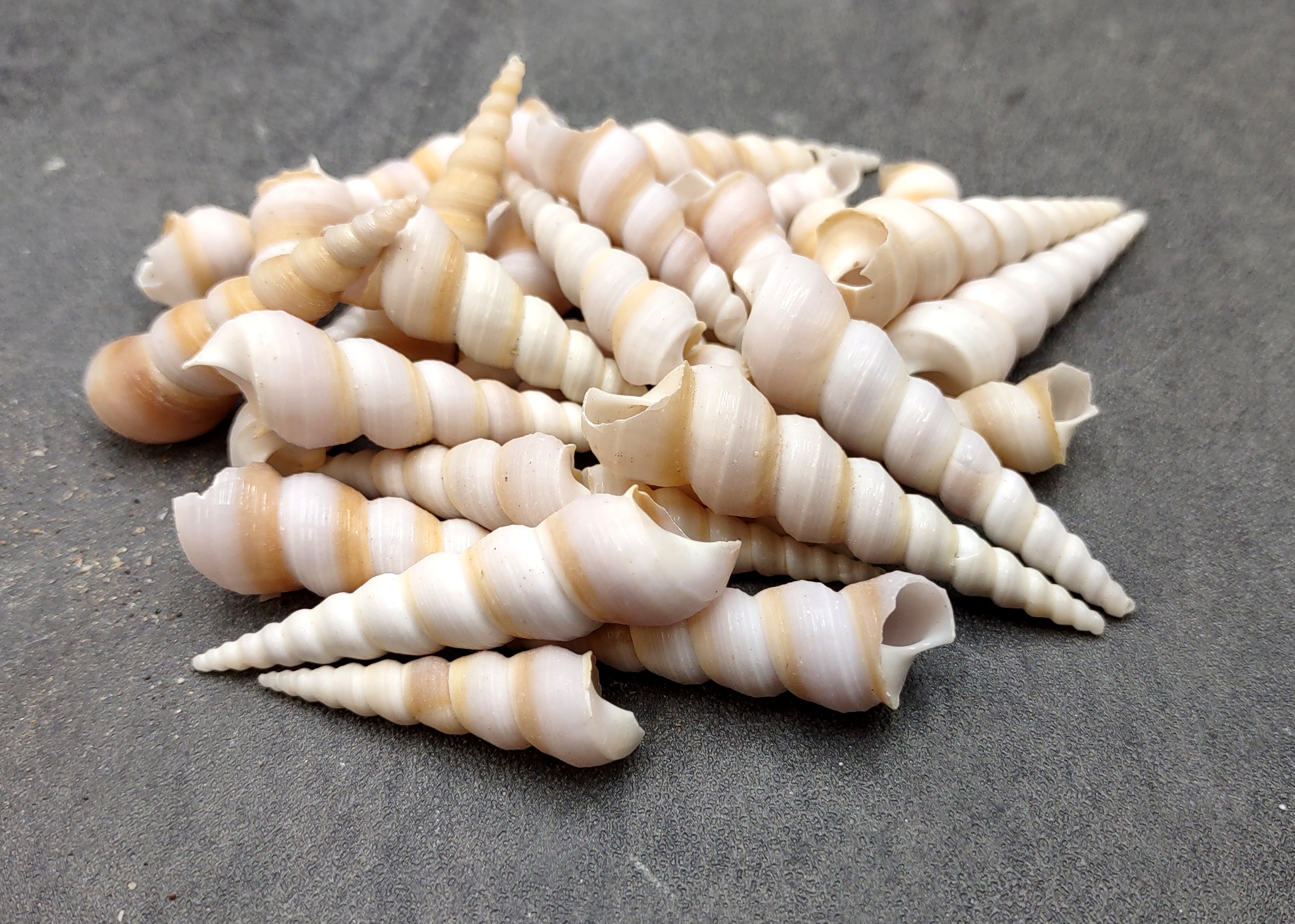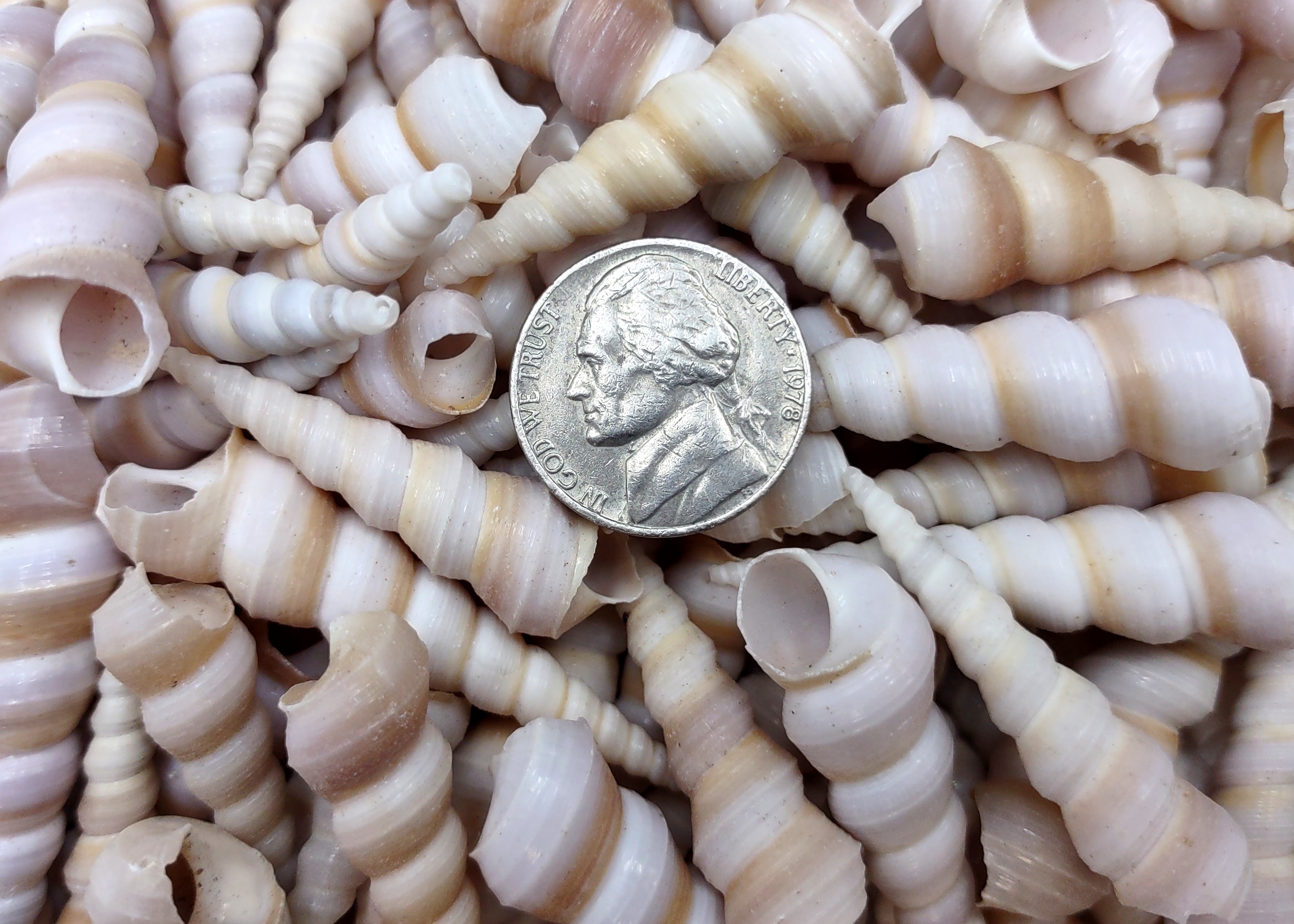 Turitella Communis or the 'Common Screw Seashell.' These are great for decorating picture frames, shadow boxes, wind chimes, etc.