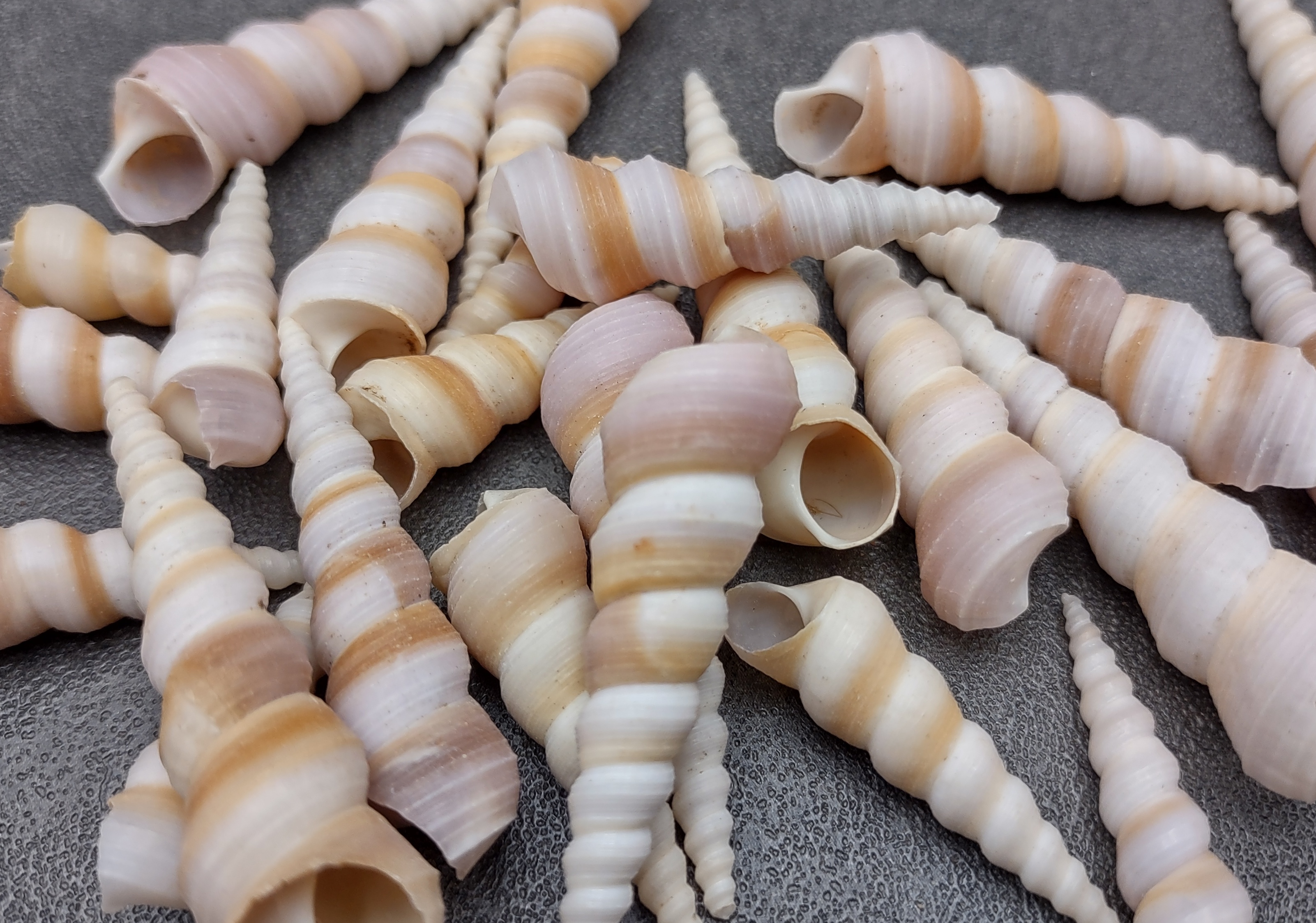 Customers often search for: purple turitella, spiral purple shells, grey white seashells, purple grey seashell, sea shells for sale, seashells for crafts, Turitella Communis, common screw shell, spiral cone shell, natural sea shells, real seashells, bulk shells for sale, turitella seashells