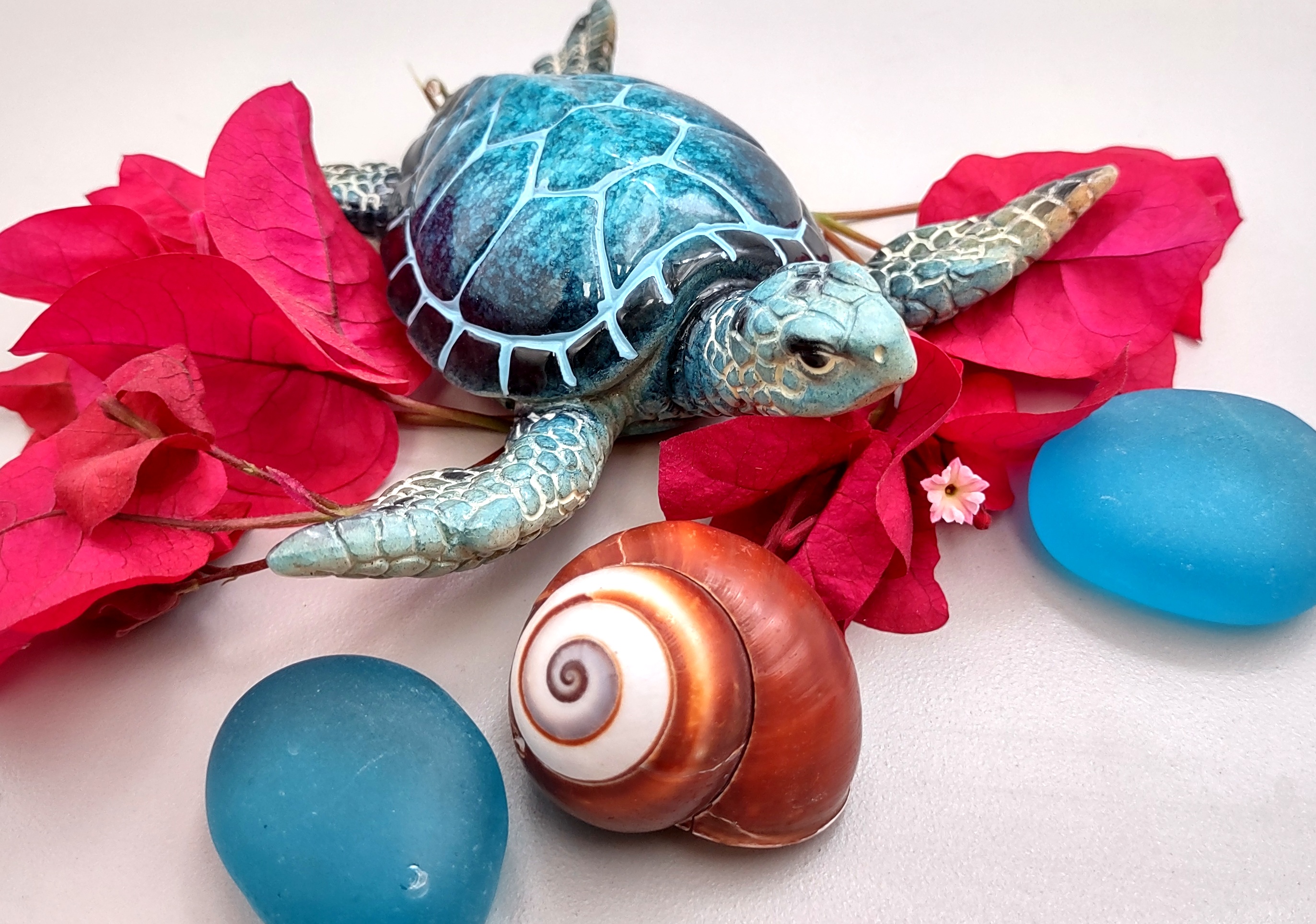 Whether displayed on a shelf, desk, or as part of a sea-inspired collection, this delightful sea turtle figurine is sure to bring a touch of oceanic calm and charm to any setting.