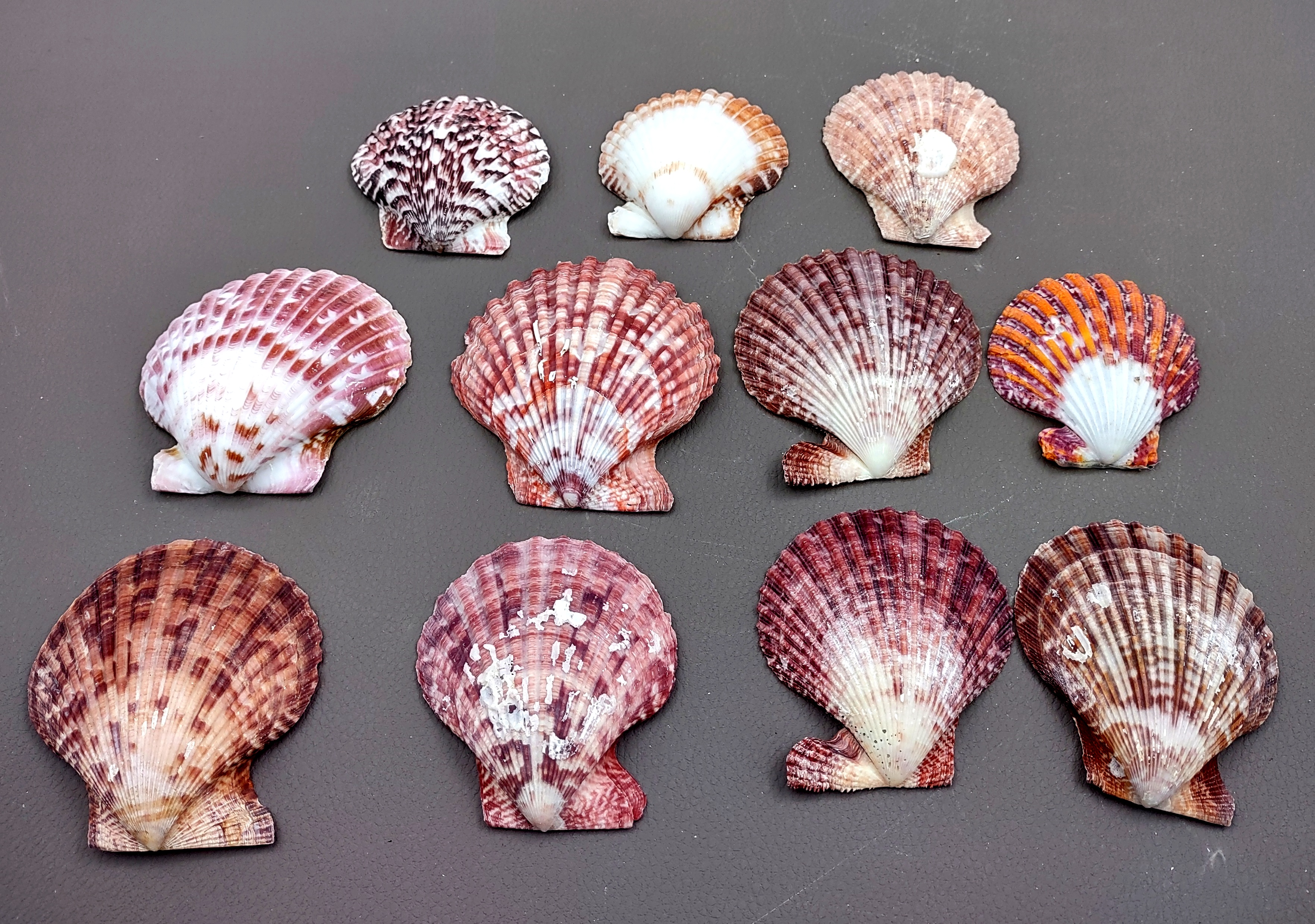 Calico Atlantic Scallop Seashells Purple Argopecten Gibbus (10 shells approx. 2+ inches) Purple Scallop shells for arts crafts & jewelry!