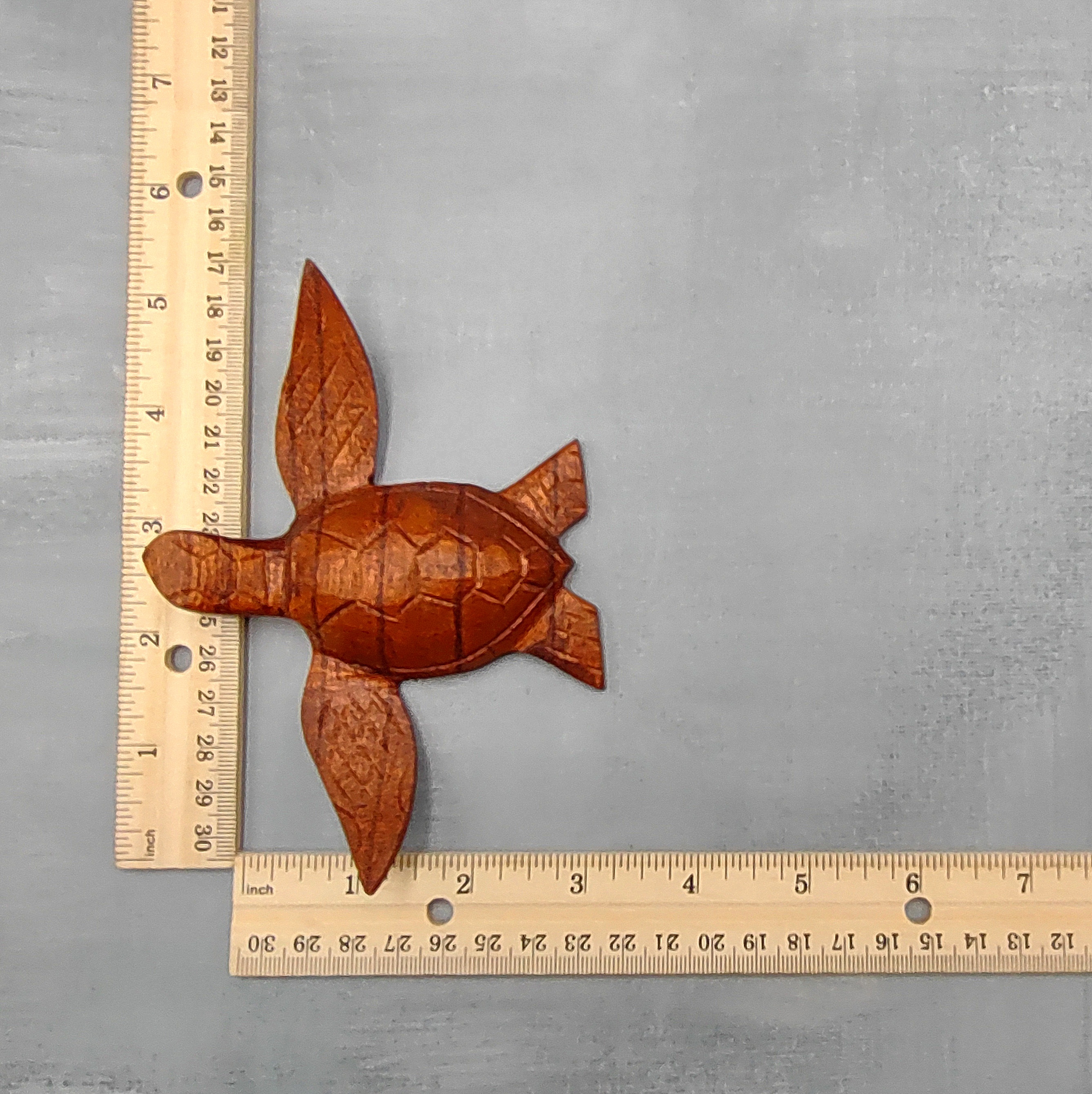 Carved Wooden Sea Turtle Brown (1 turtle approx. 3.5+ inch wide) Wood Sea Turtle Figure for coastal beach home display & decoration!