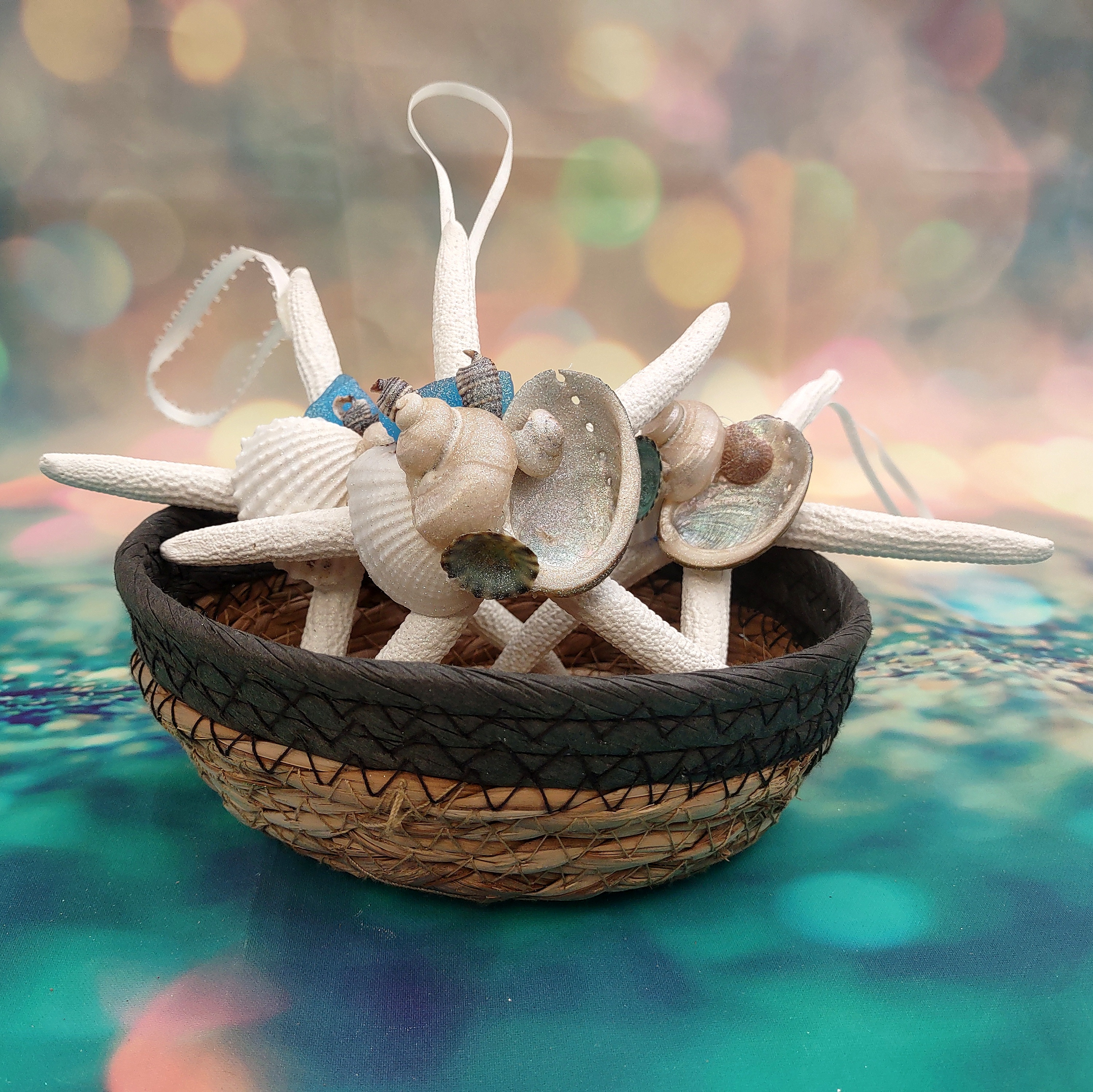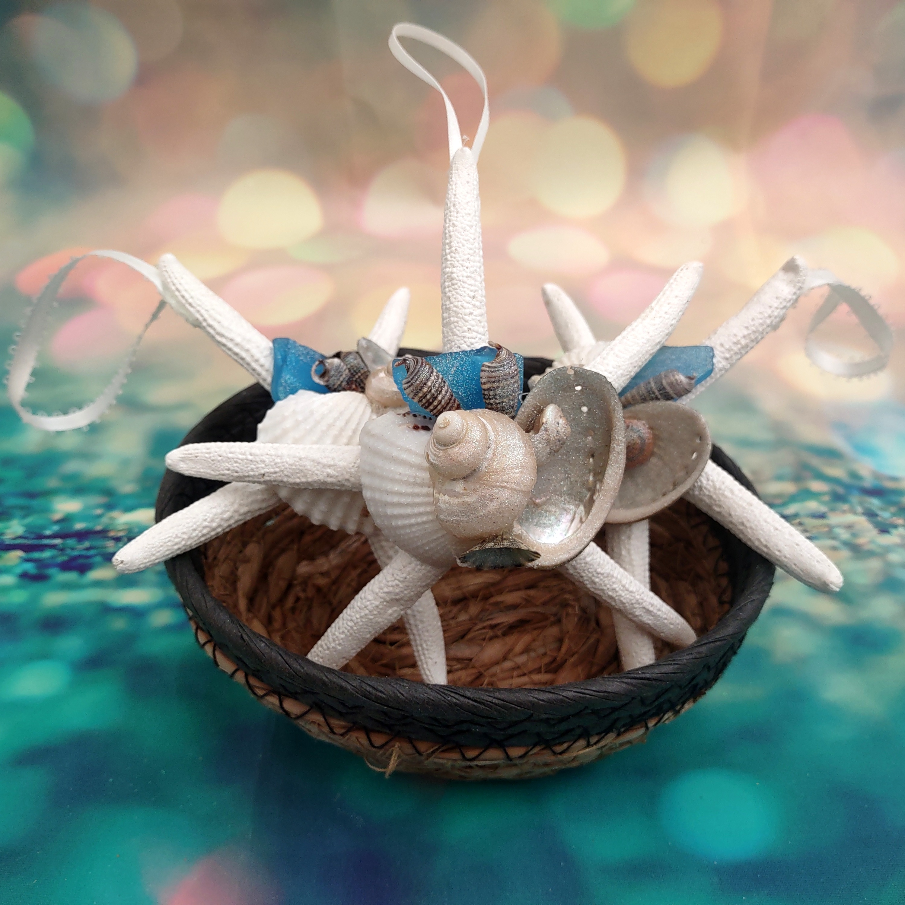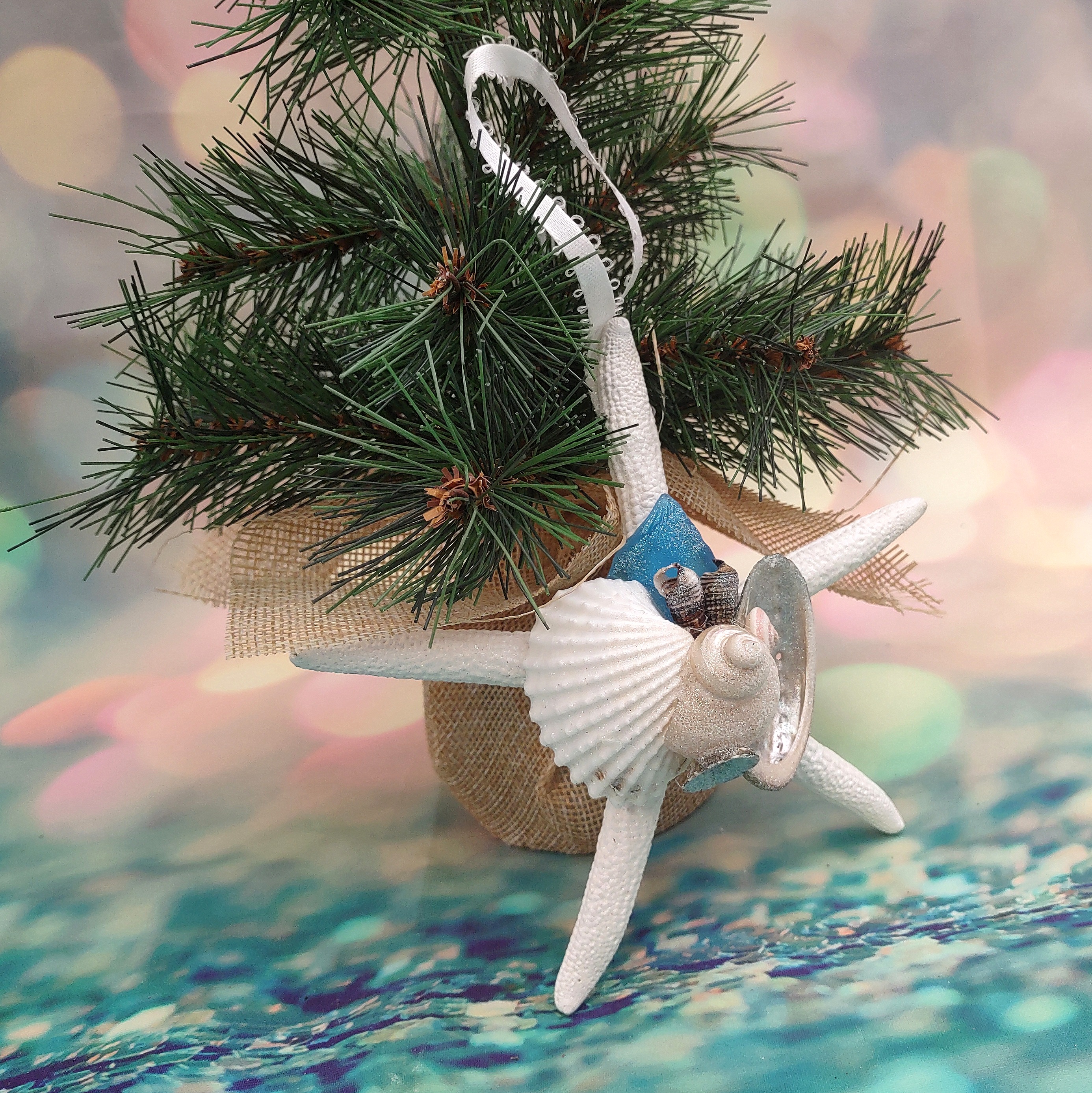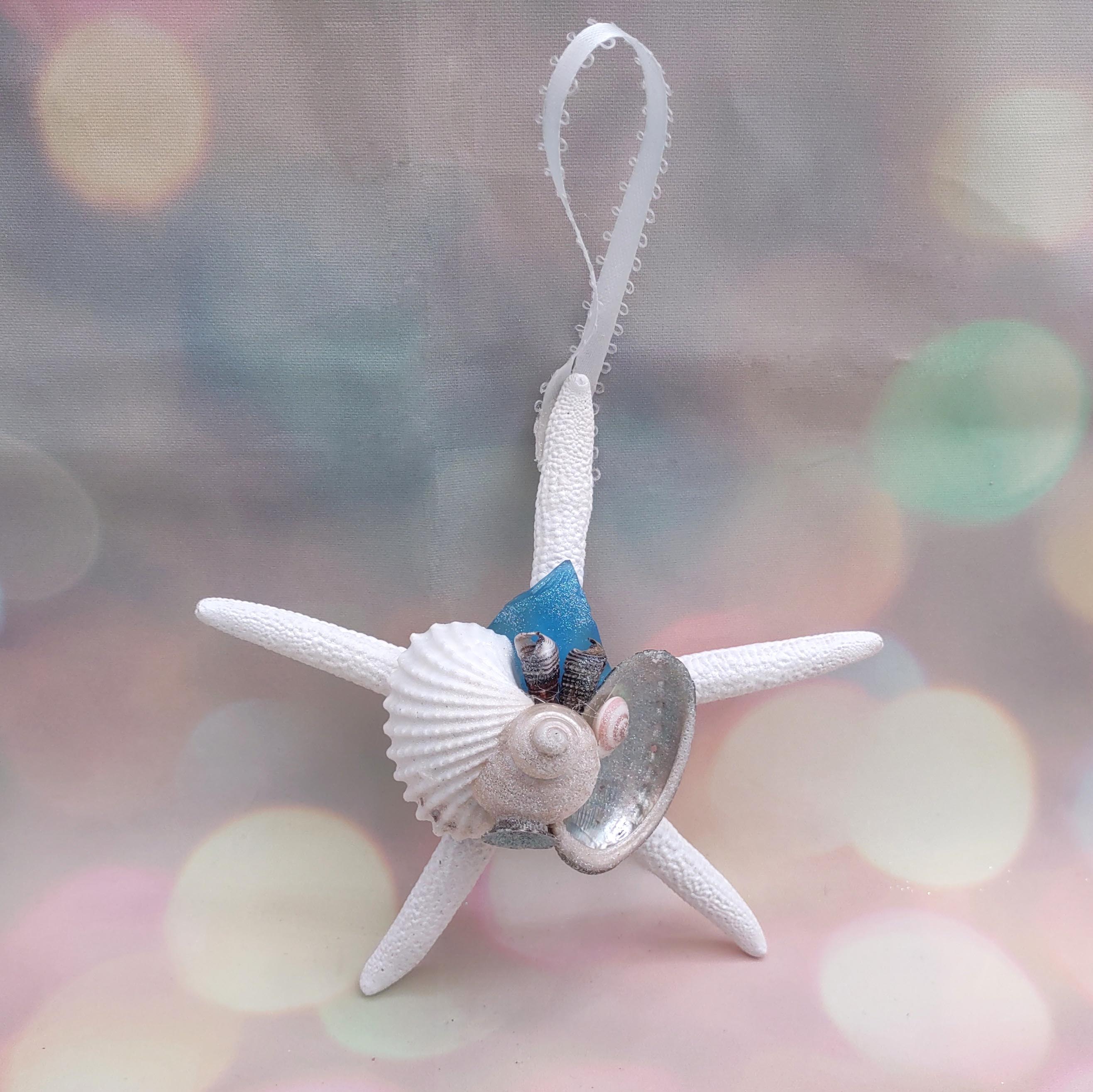 This ornament will look beautiful on your coastal themed Christmas tree and gifts, hanging in a window or a door knob or holiday wreath. This ornament could be used any time of year for a touch of coastal whimsical charm. Makes a great hostess gift also!