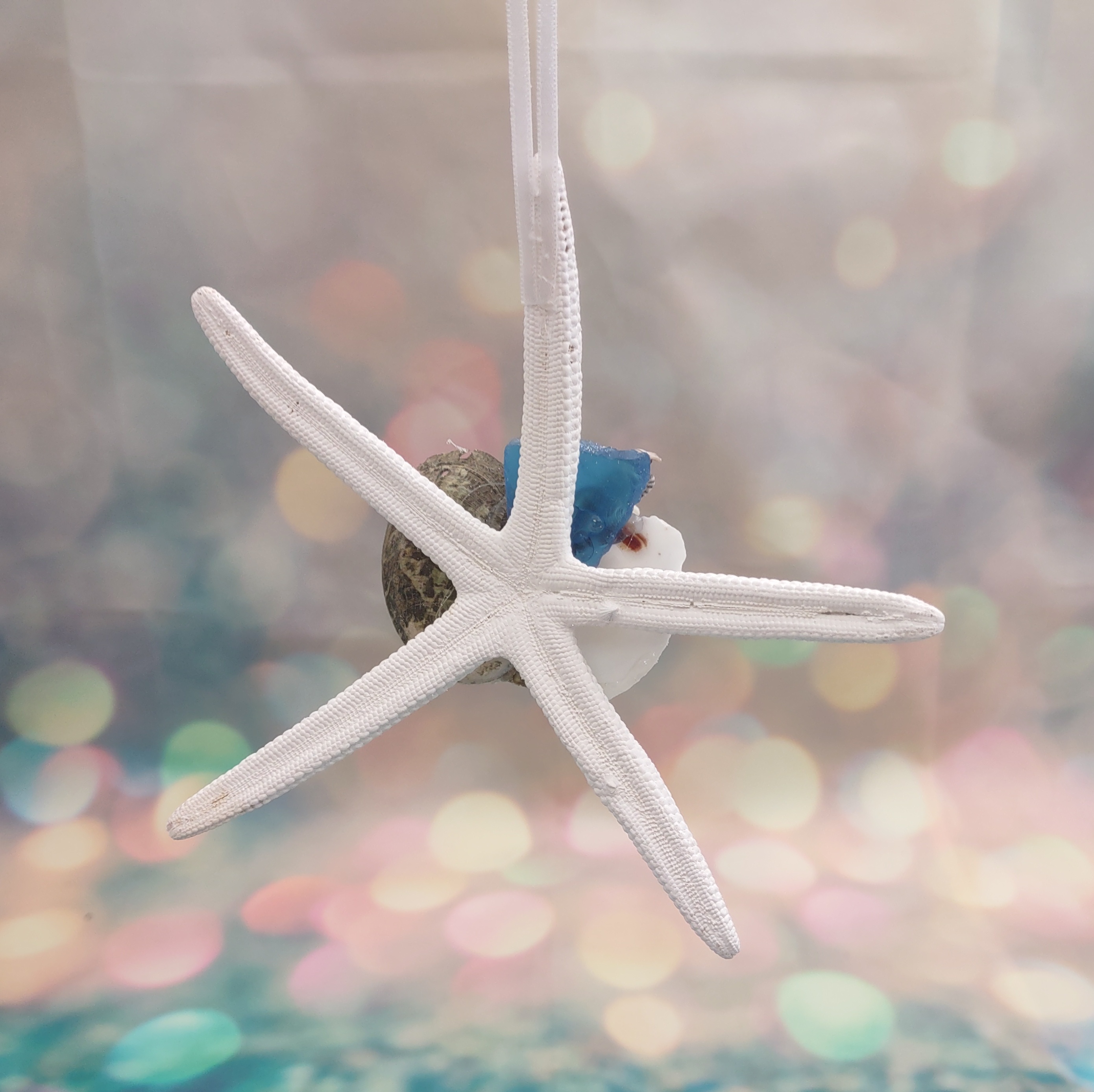 Frosted White Starfish Seaglass Christmas Ornament (1 seastar approx. 4-5+ inches) Starfish Xmas Ornament for holiday décor & gifting!