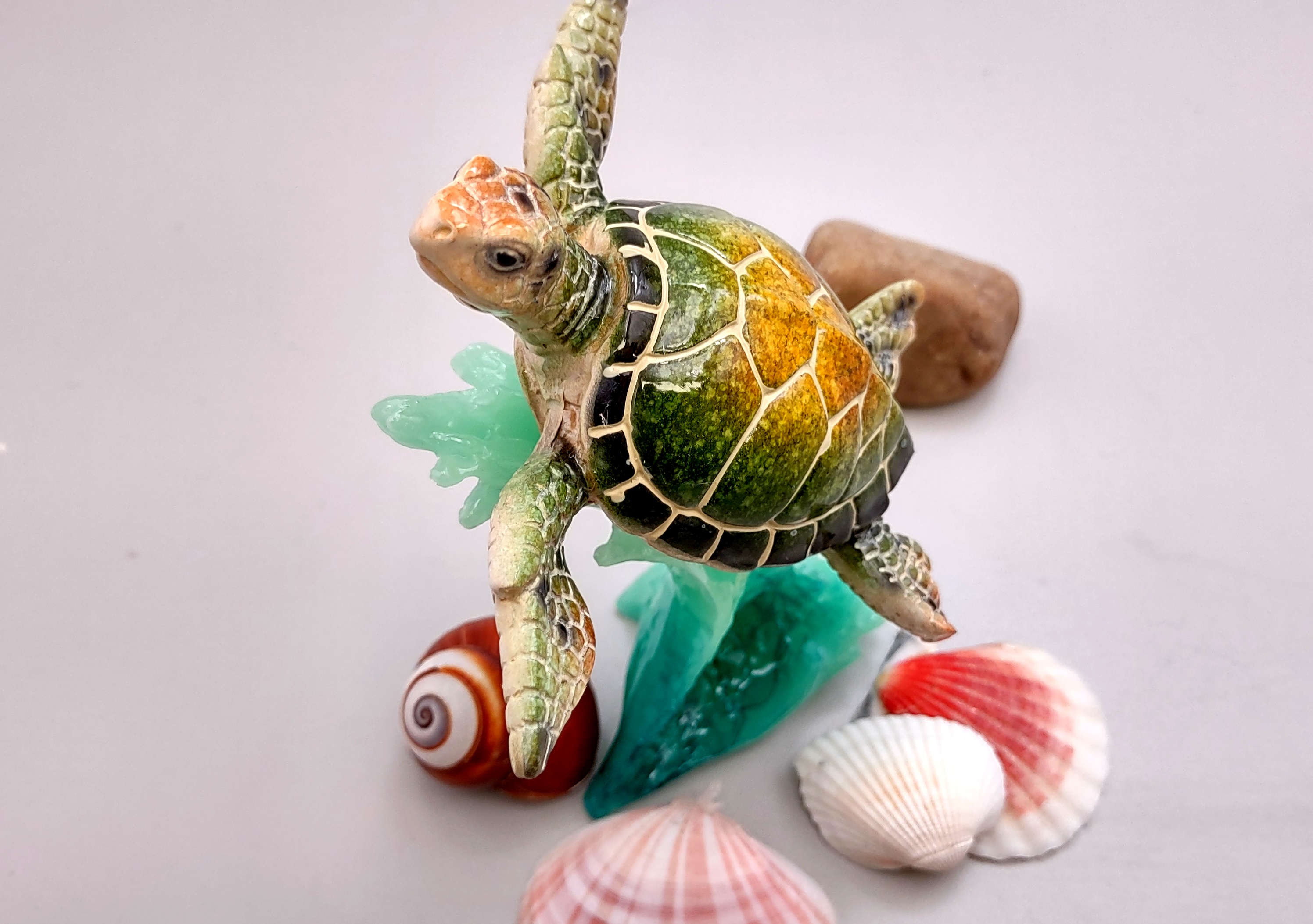 - Green Sea Turtle Figurine Riding A Wave