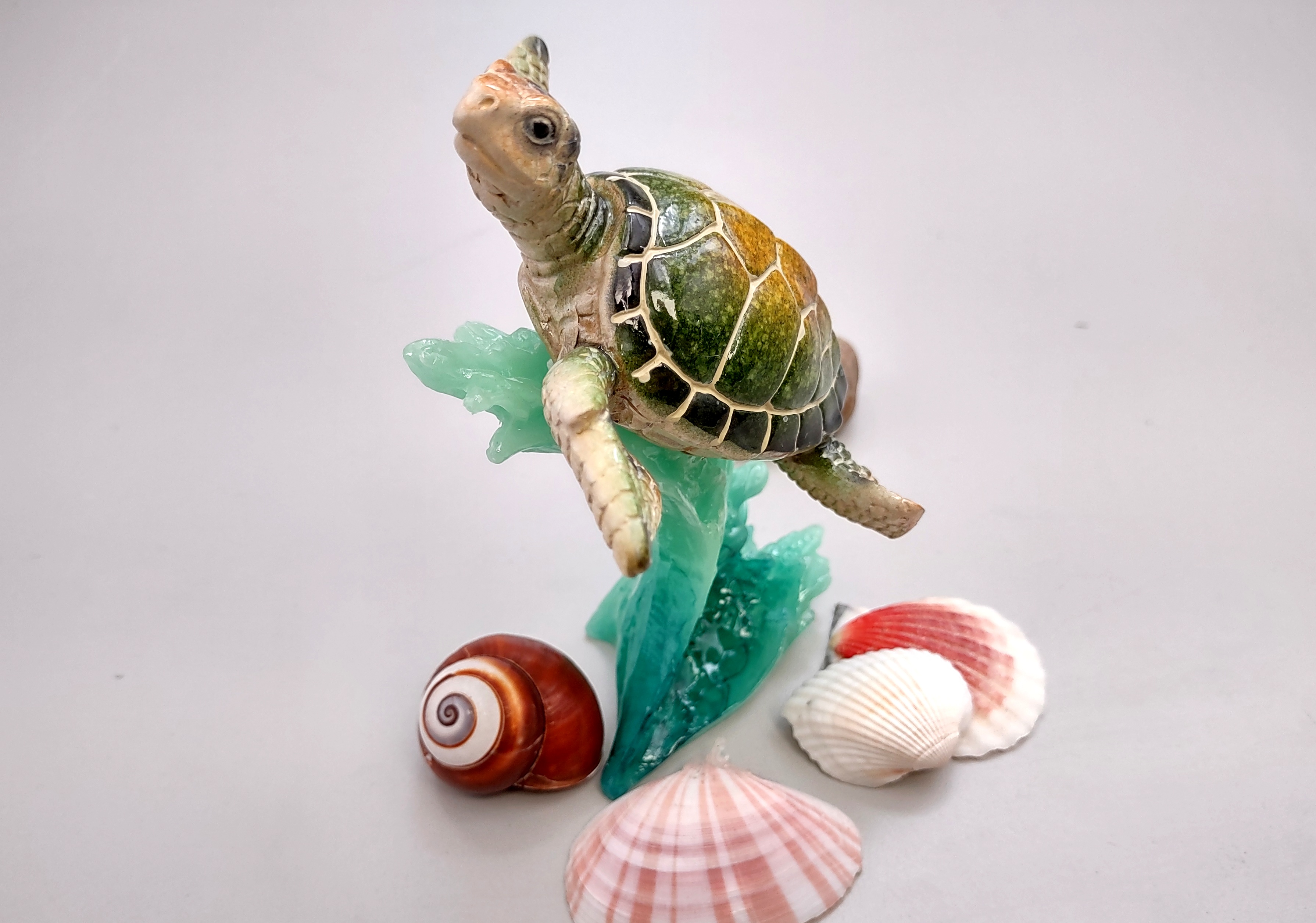 Whether displayed on a shelf, desk, or as part of a sea-inspired collection, this delightful sea turtle figurine is sure to bring a touch of oceanic calm and charm to any setting.