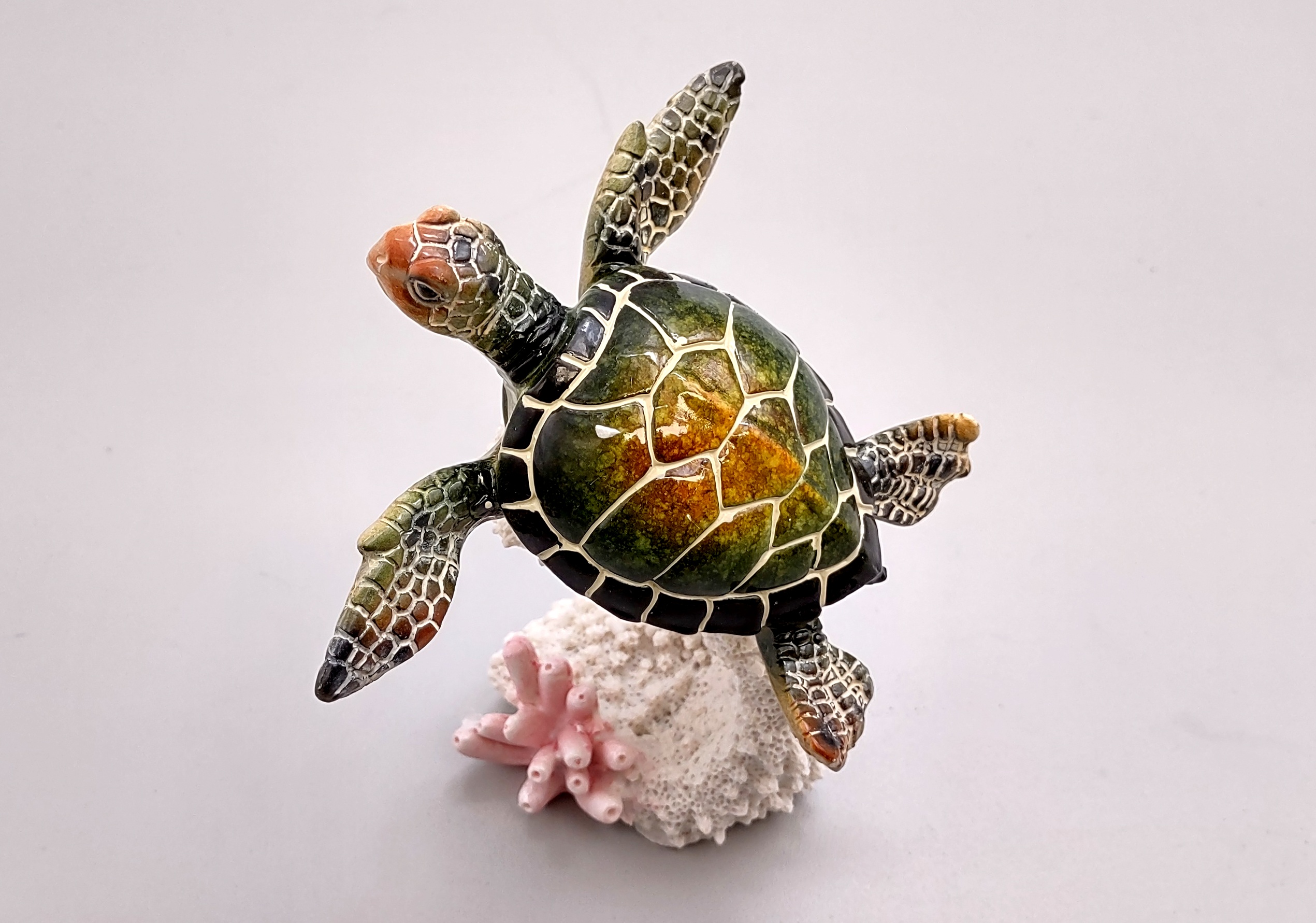 - Green Sea Turtle Figurine With Coral