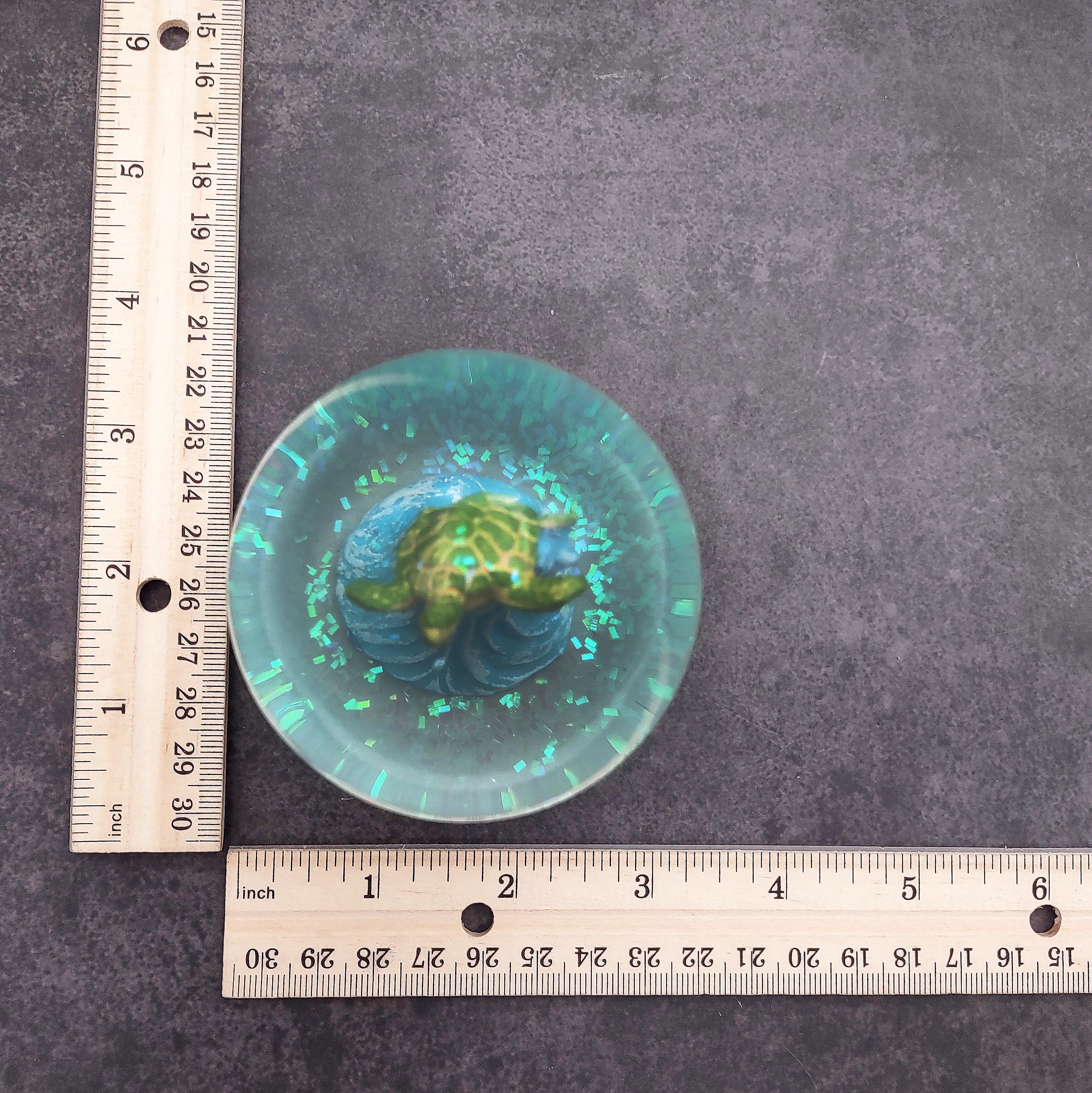 Green Sea Turtle Seasonal Holiday Water Globe (1 globe approx. 4+ inches tall) Charming Brown Sea Turtle Wave Globe for coastal display!