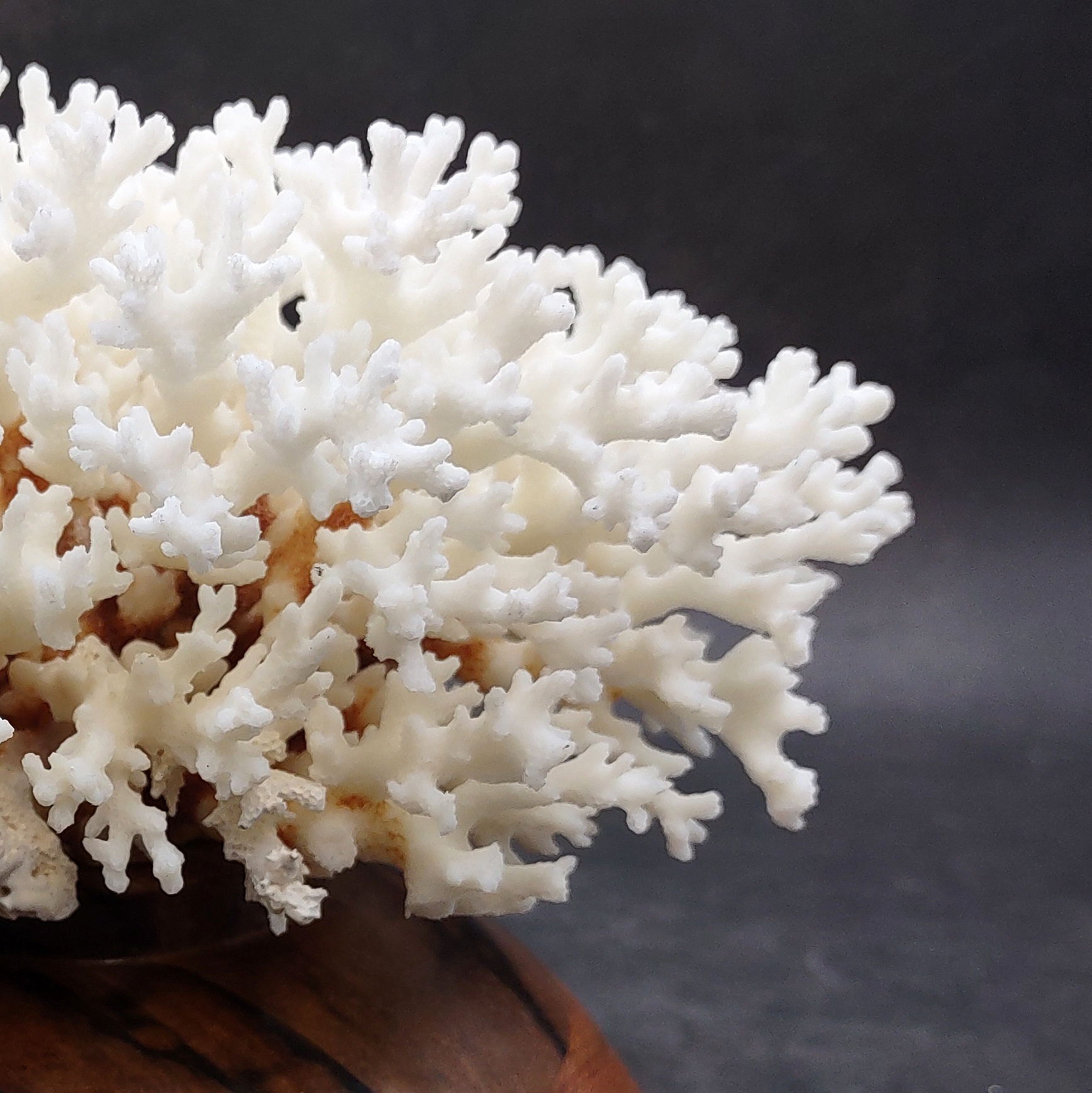 White Lace Coral, or Pocillopora Damicornis, is sometimes referred to as the Cauliflower Coral due to appearance. It is native to tropical and subtropical parts of the Indian and Pacific Oceans. These are beautiful show pieces and are high quality specimens. It has a flat base, so it can be displayed from any angle. Every coral is unique and will vary in form, shape and size, covered with delicate branches and micro verrucae. Each piece has distinctive characteristics, meaning no uniform shapes.
