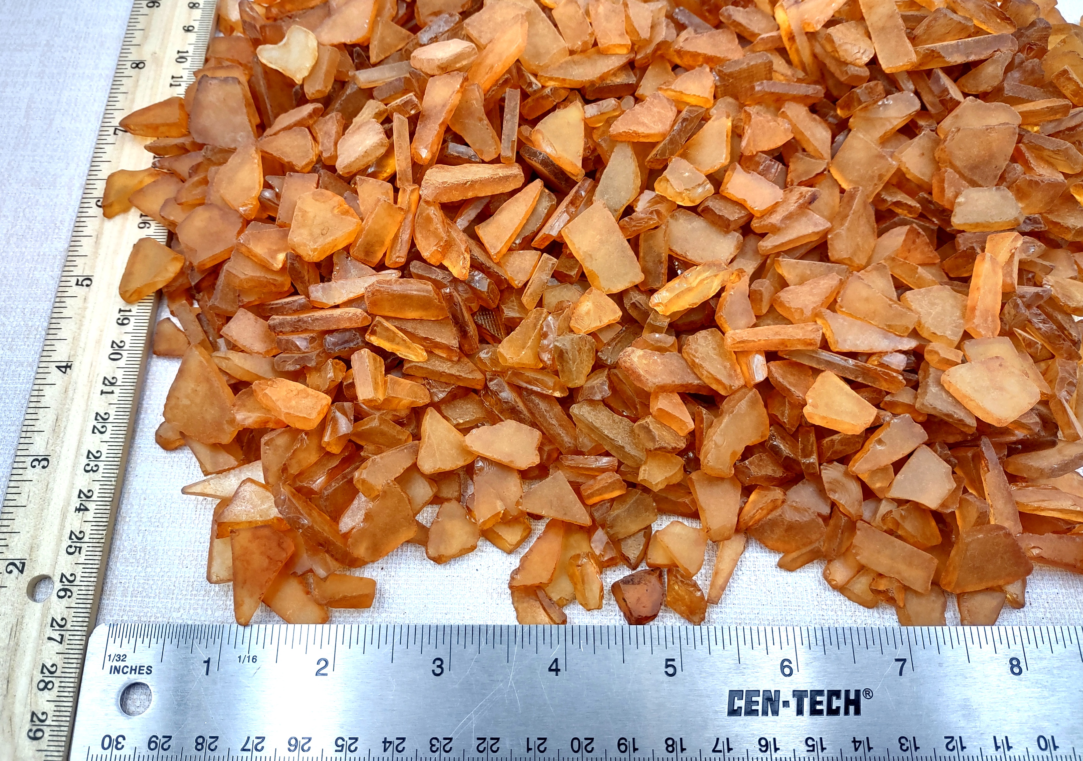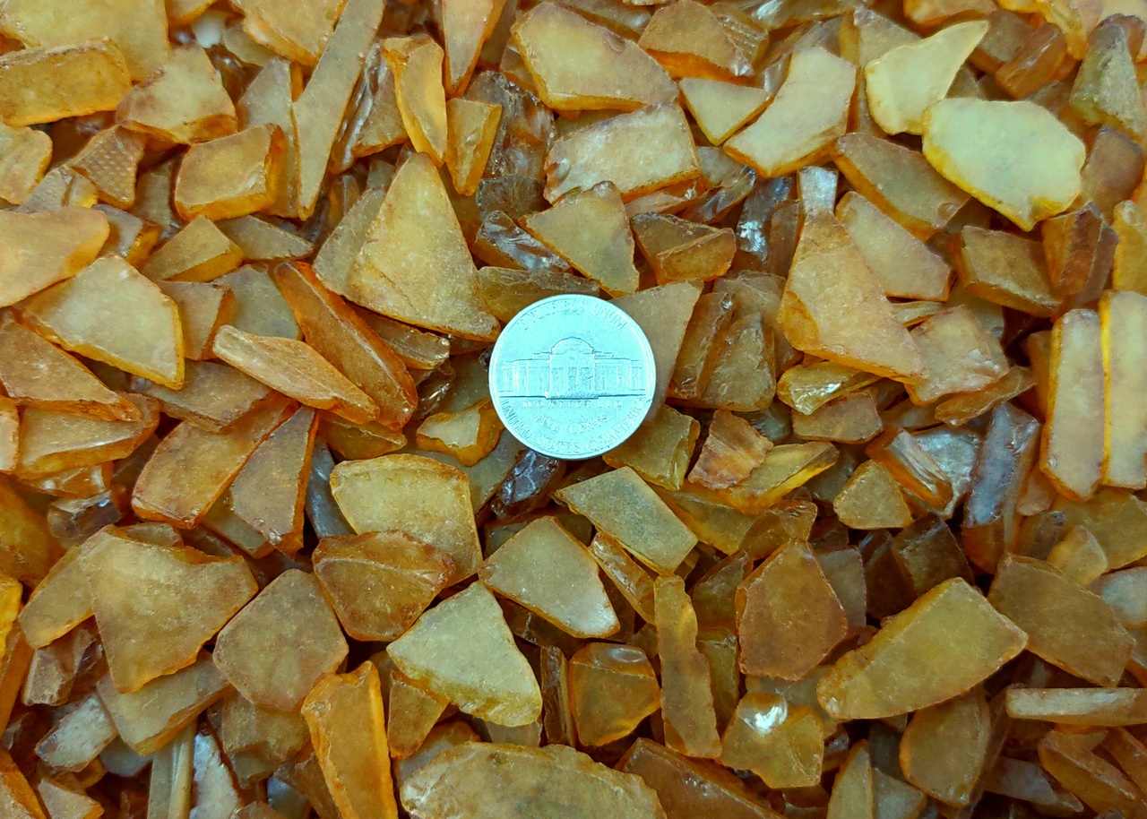 These rough light brown glass beach glass pieces are machine tumbled recycled/re-manufactured glass pieces with faux soda bottle pieces. Lightly frosted when dry from the tumbling, and really "pops" with translucent color when wet. Use our tumbled beach glass to bring a distinctive touch to any craft project or special event arrangements. Can be used as an accent in vases, aquariums, mosaic tile installations, etc.