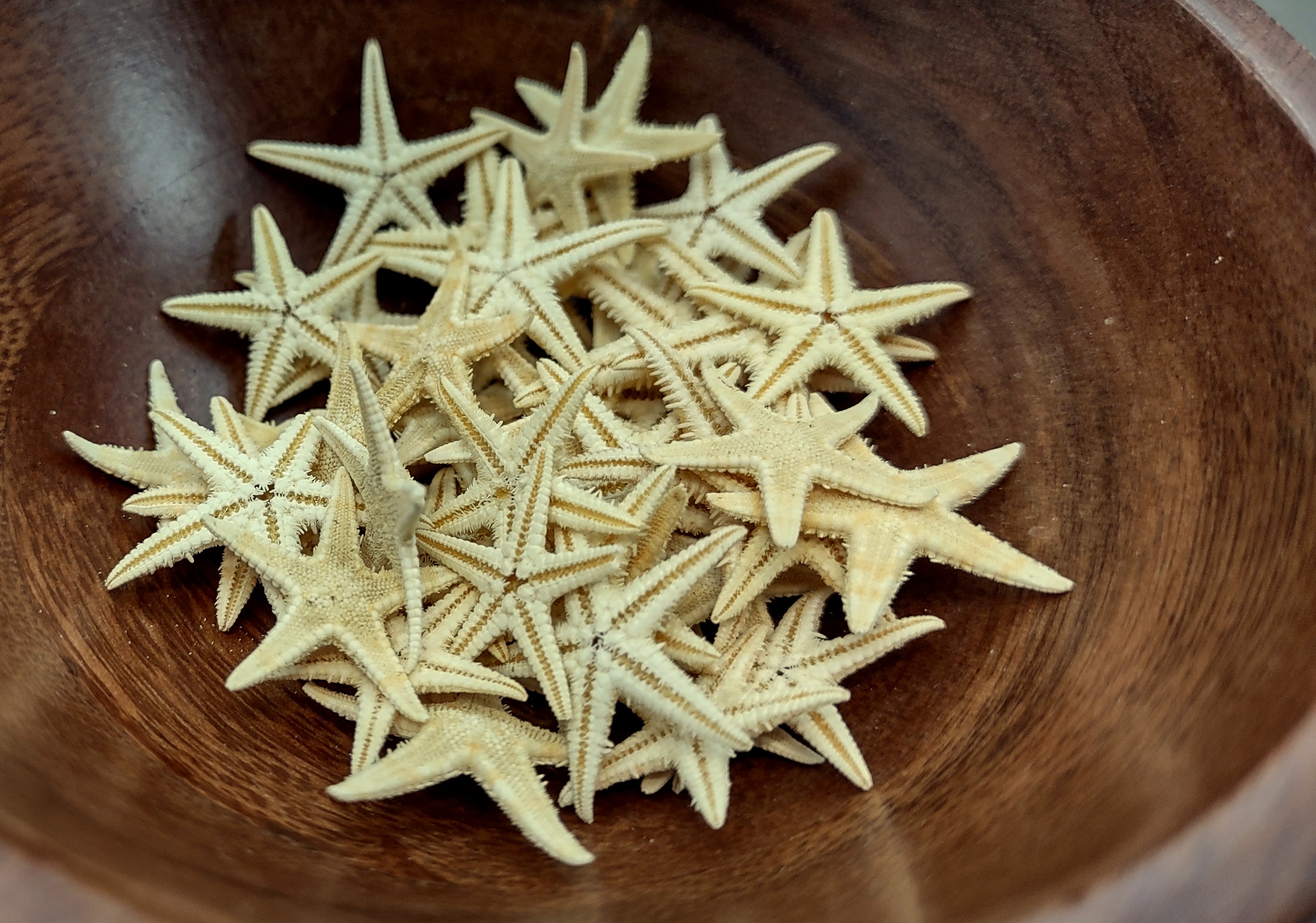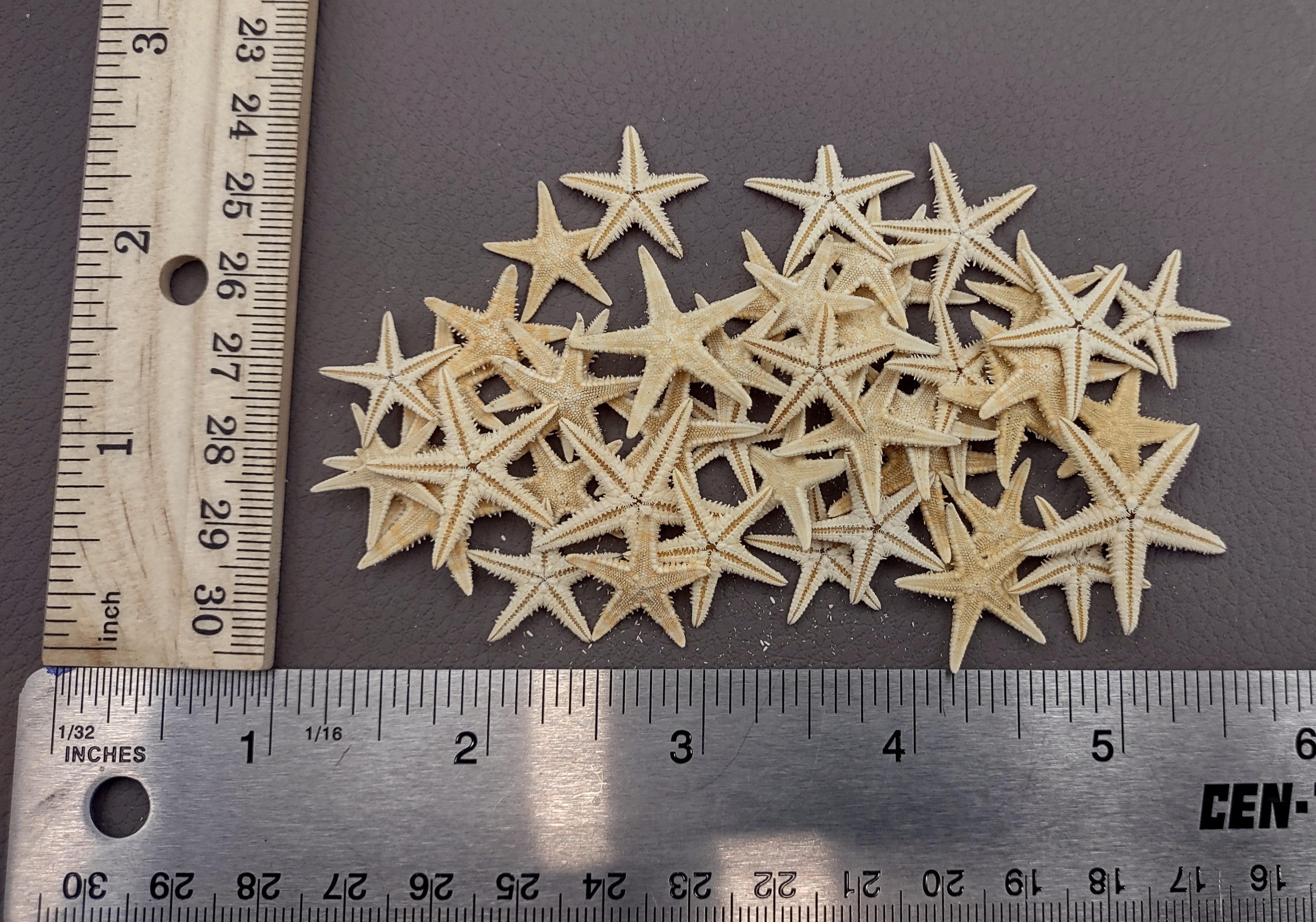 These mini tan Starfish are swell for all kinds of crafts. Most are solid tan but some have little striped or dotted designs on them.