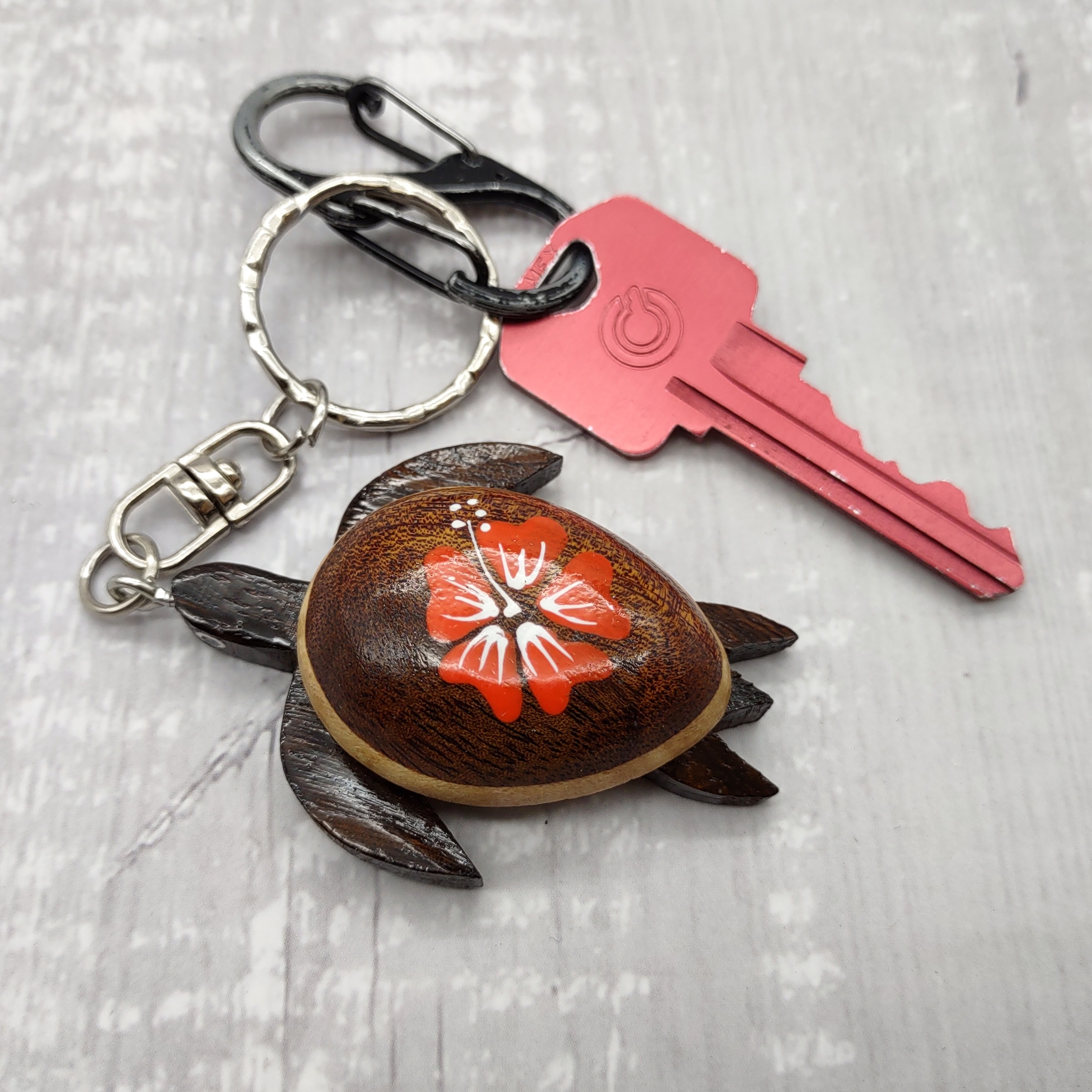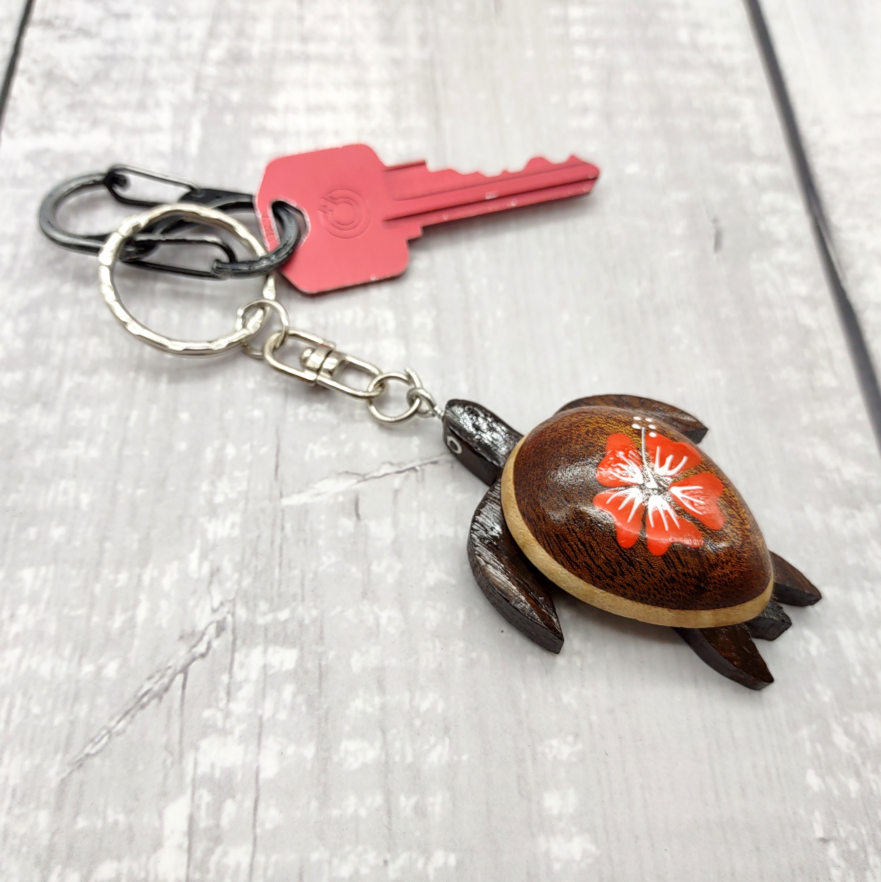 Online shoppers often search for: sea turtle keychain, wood turtle decor, turtle keychain, carved wood key fob, hibiscus charm, wood keychain, tropical keychain, wooden keychain, sea turtle gifts, sea turtle decor, turtle tchotchke, orange sea turtle, sea turtle keyring