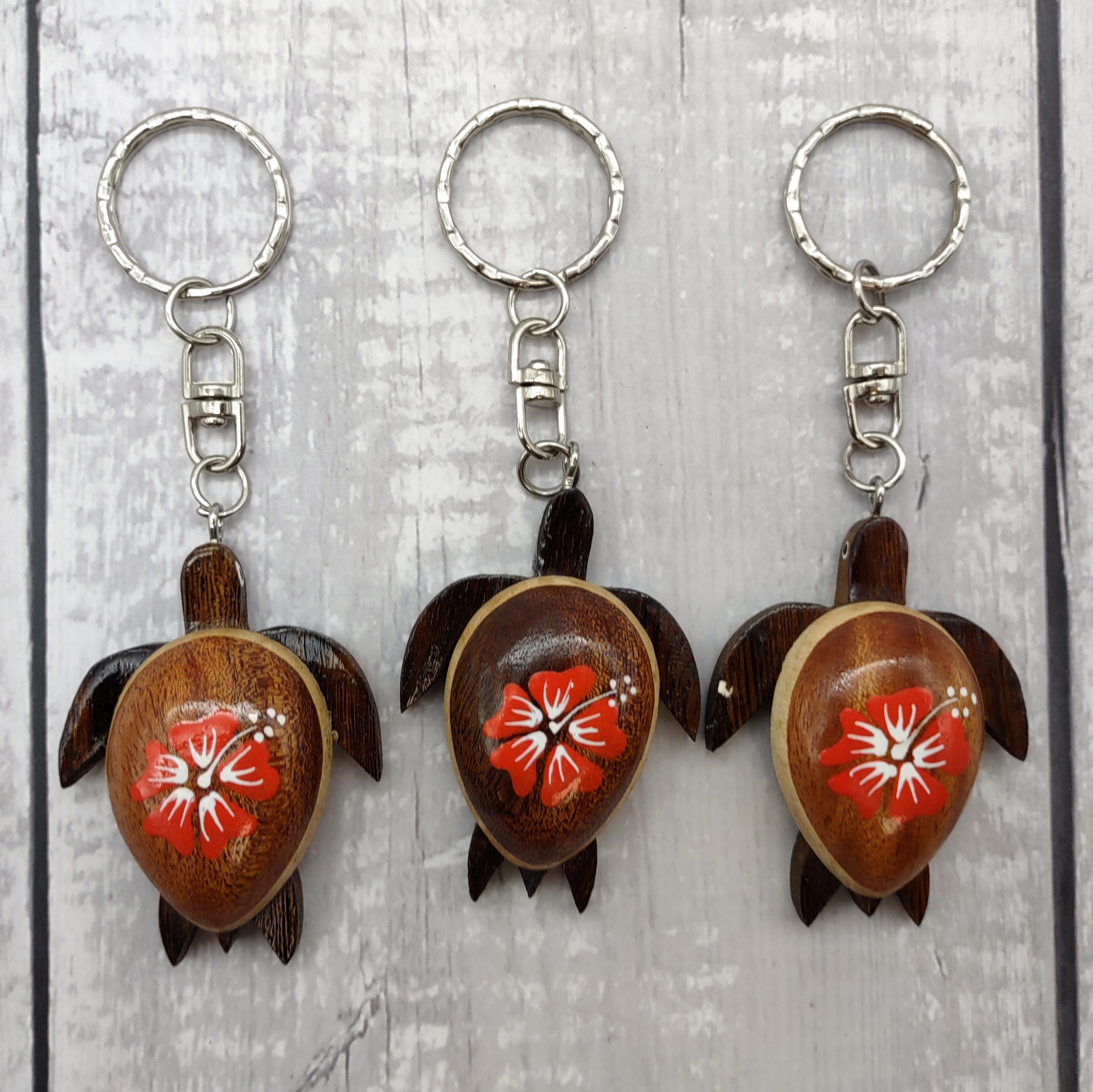 Add a touch of tropical charm with our Hibiscus Sea Turtle Keychain. This colorful souvenir keychain features an adorable sea turtle painted with vibrant hibiscus floweron its shell, capturing the essence of island beauty. Crafted with attention to detail, it combines painted artistry with durable materials, making it perfect for everyday use or as a special keepsake.