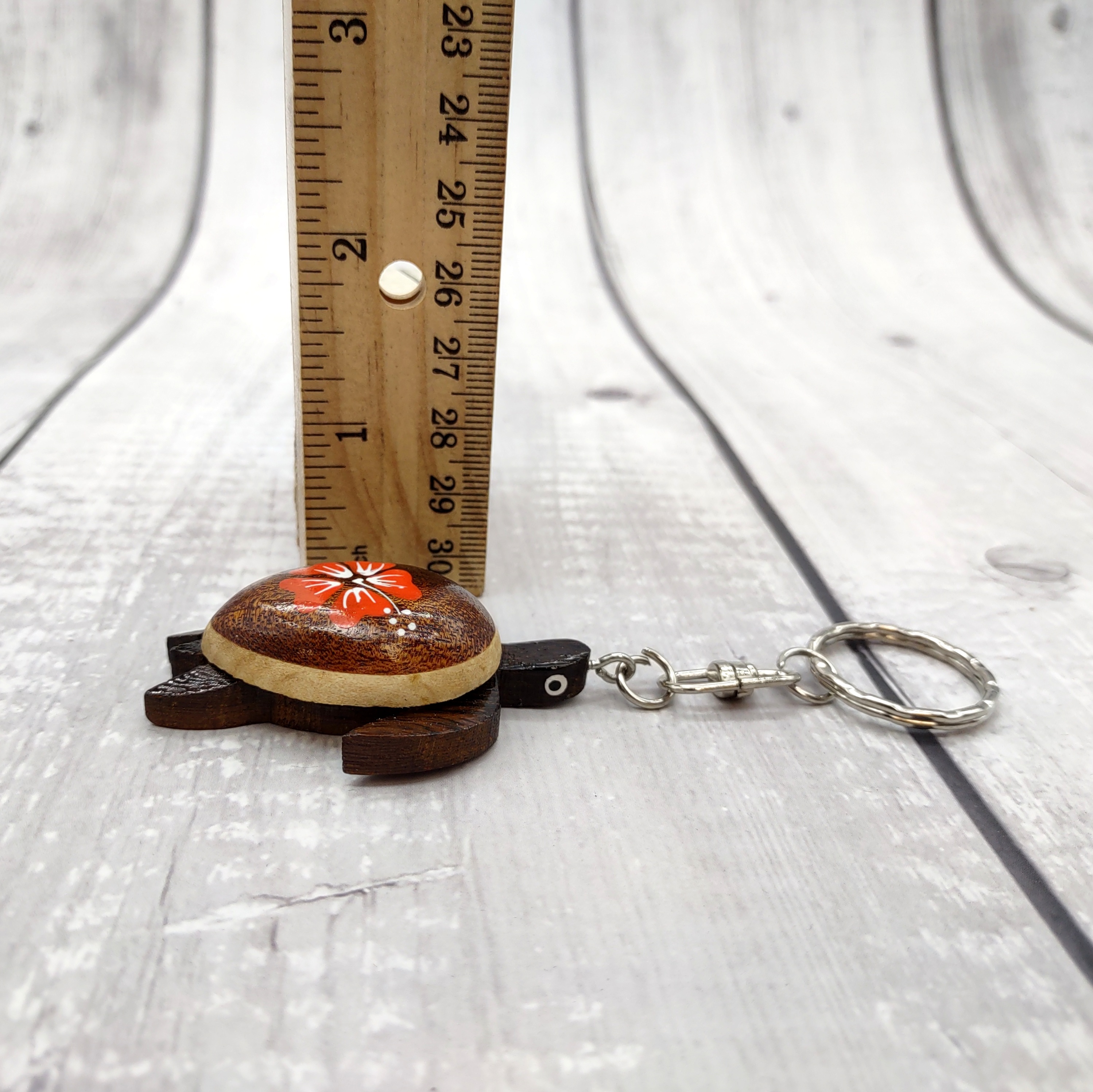 Orange Hibiscus Painted Wooden Sea Turtle Keychain (1 keychain approx. 4.25+ inches) Wooden Sea Turtle Key Fob for gifting or party favors!