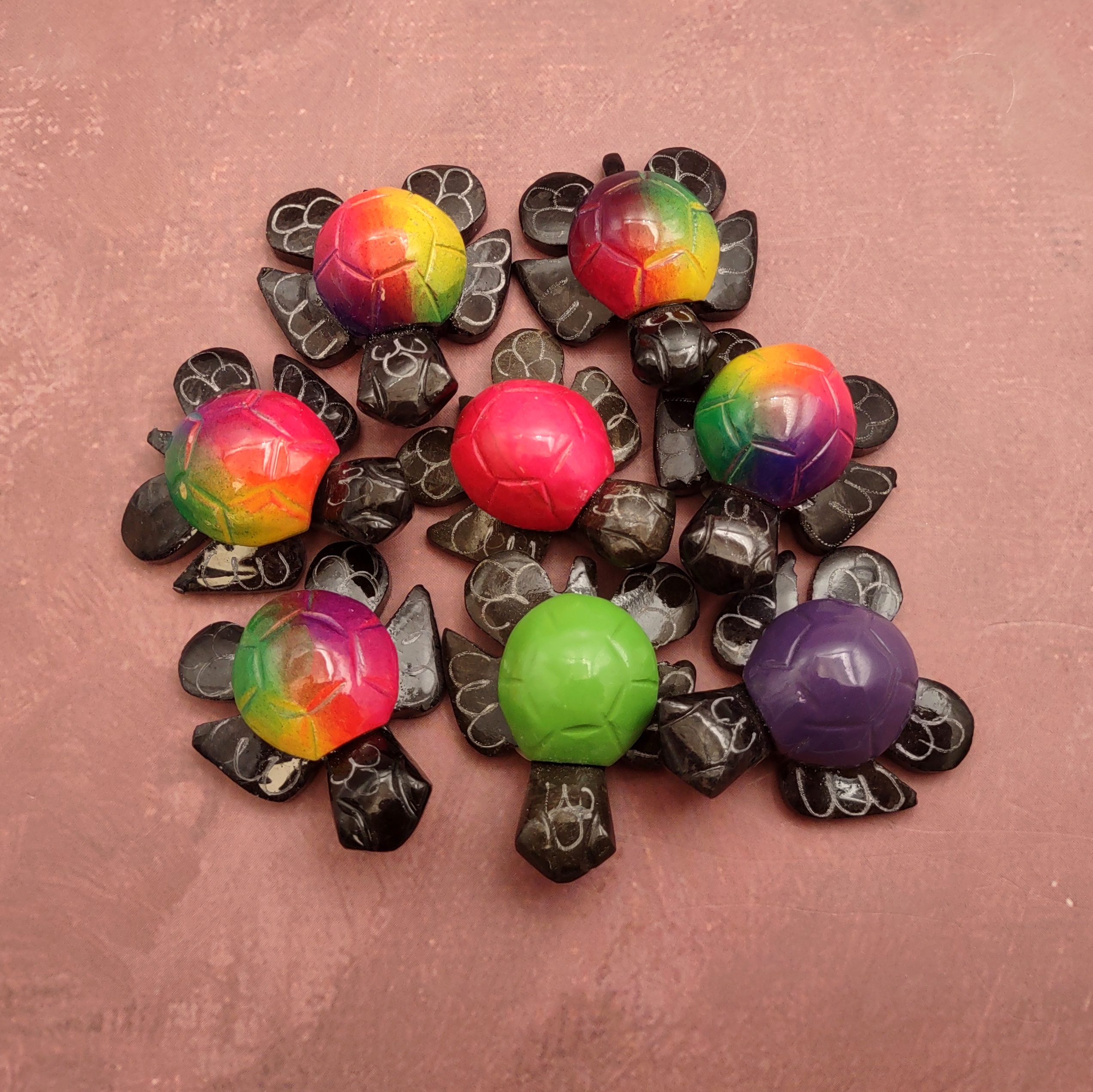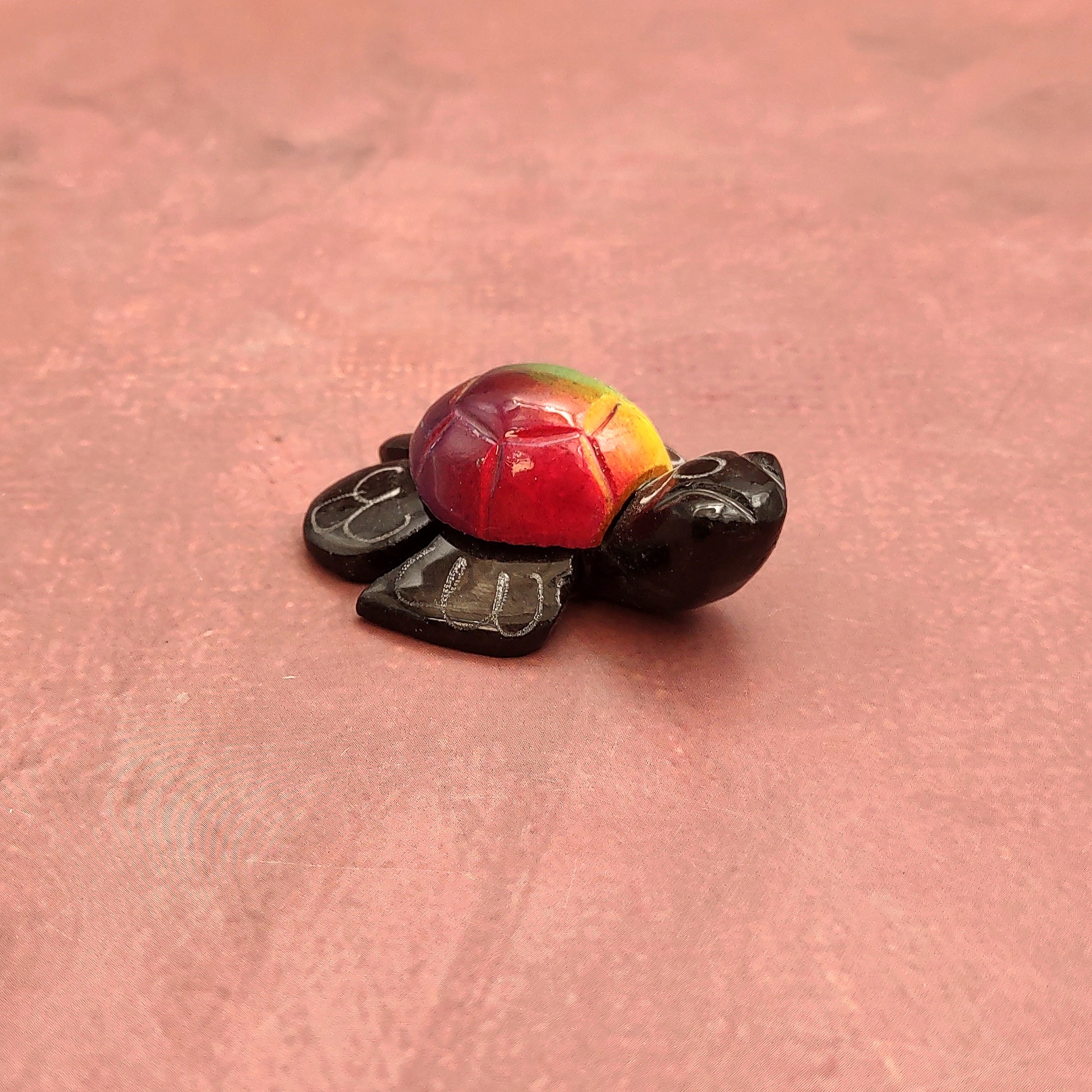 Painted Marble Stone Black Sea Turtle (1 stone figure approx. 2+ inches) Carved Colorful Turtle Figurine for collecting & decor!