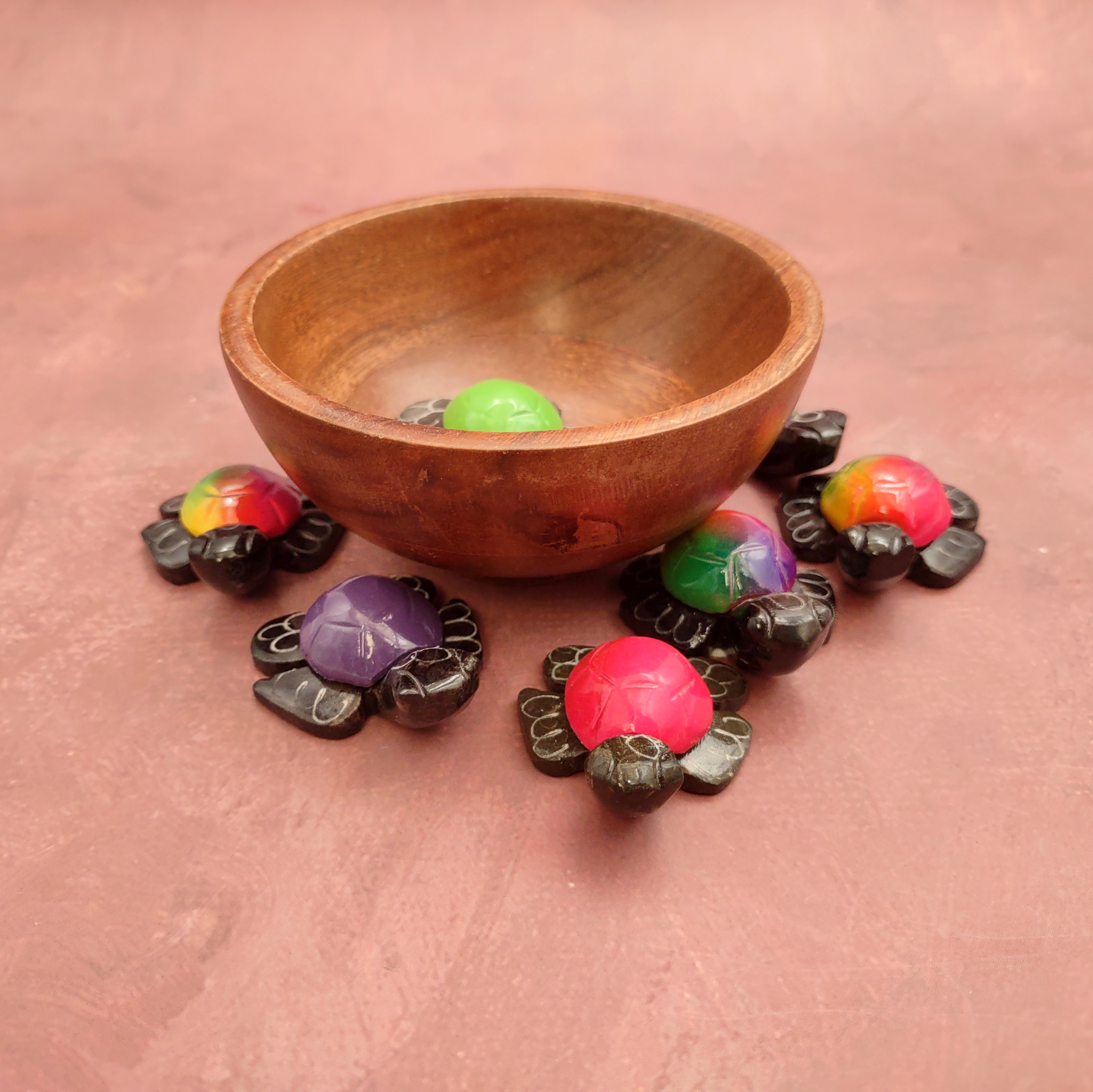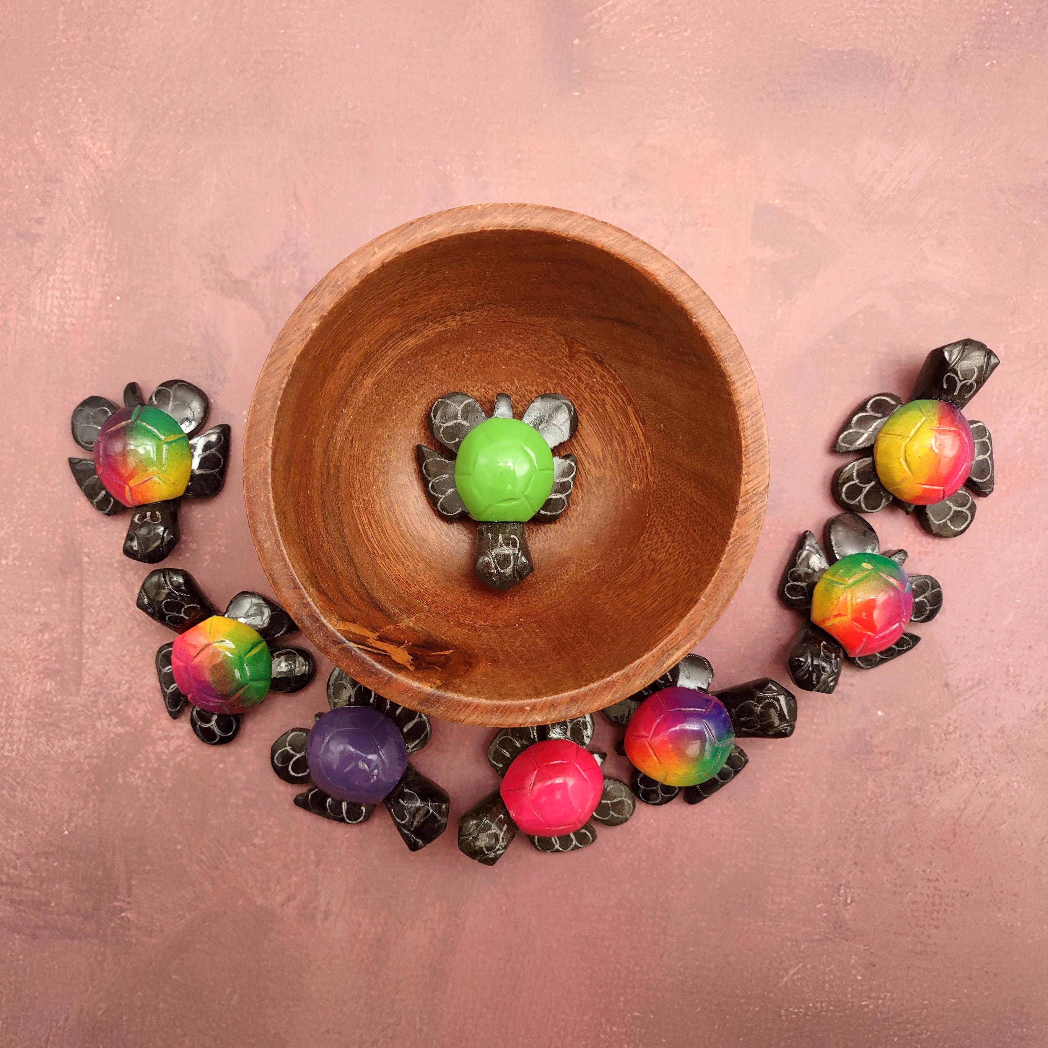 Brighten your space with this Colorful Painted Marble Stone Sea Turtle Figurine, handcrafted from natural marble stone and finished with vibrant painted details. Each turtle measures approximately 2 inches, making it a cheerful accent for shelves, desks, tables, garden displays, or indoor centerpieces. Because each piece is made from natural stone and hand painted, color patterns and markings will vary, giving every turtle its own unique personality.
