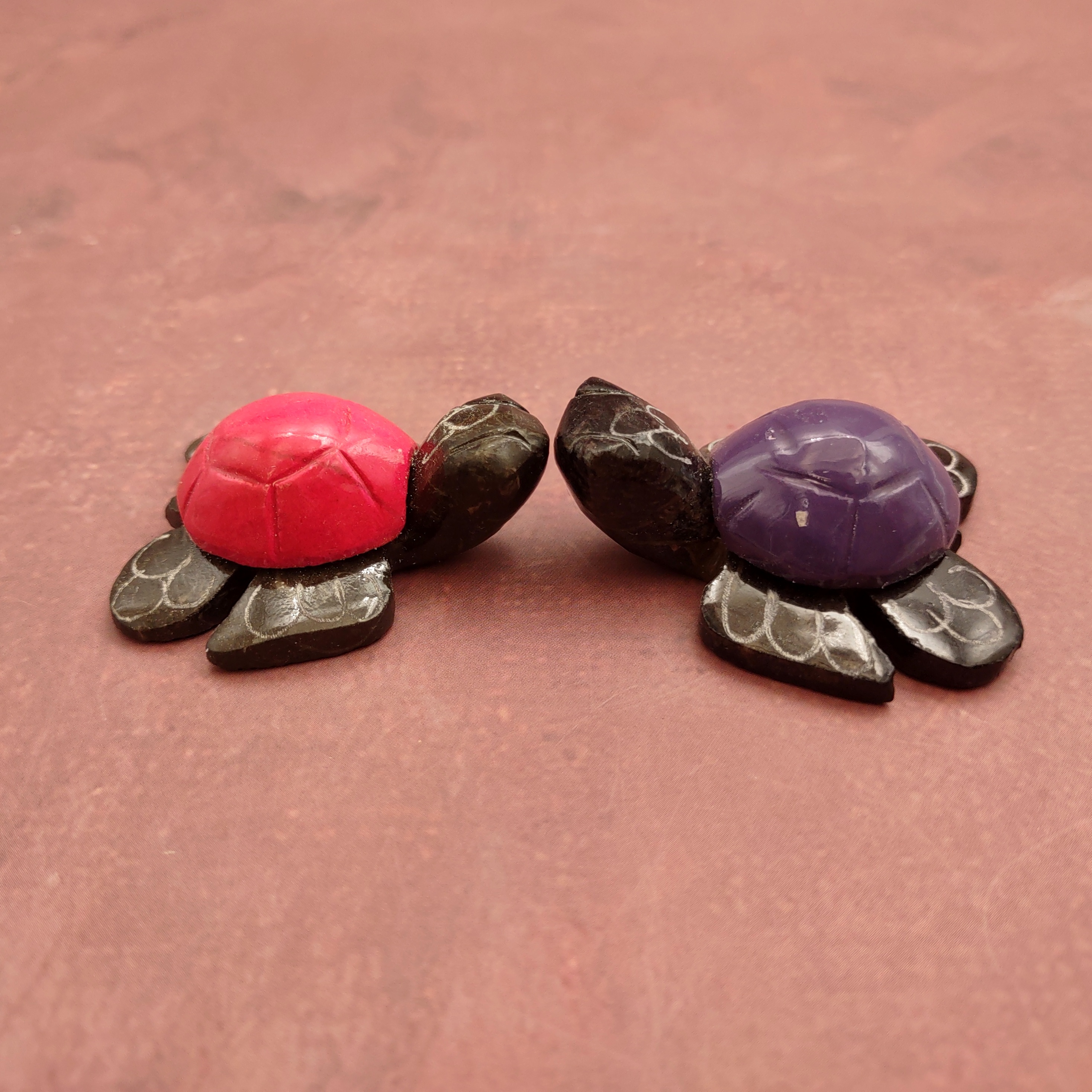 Brighten your space with our beautiful colorful painted marble stone turtles sold in sets of two. Crafted from assorted vibrant colors of marble stone, each turtle measures approximately 2 inches in size, making them ideal for display on shelves, tables, or as part of your garden or indoor centerpiece. Their unique variations in color add a lively touch of ocean charm and individuality to each set, making every piece truly one of a kind.