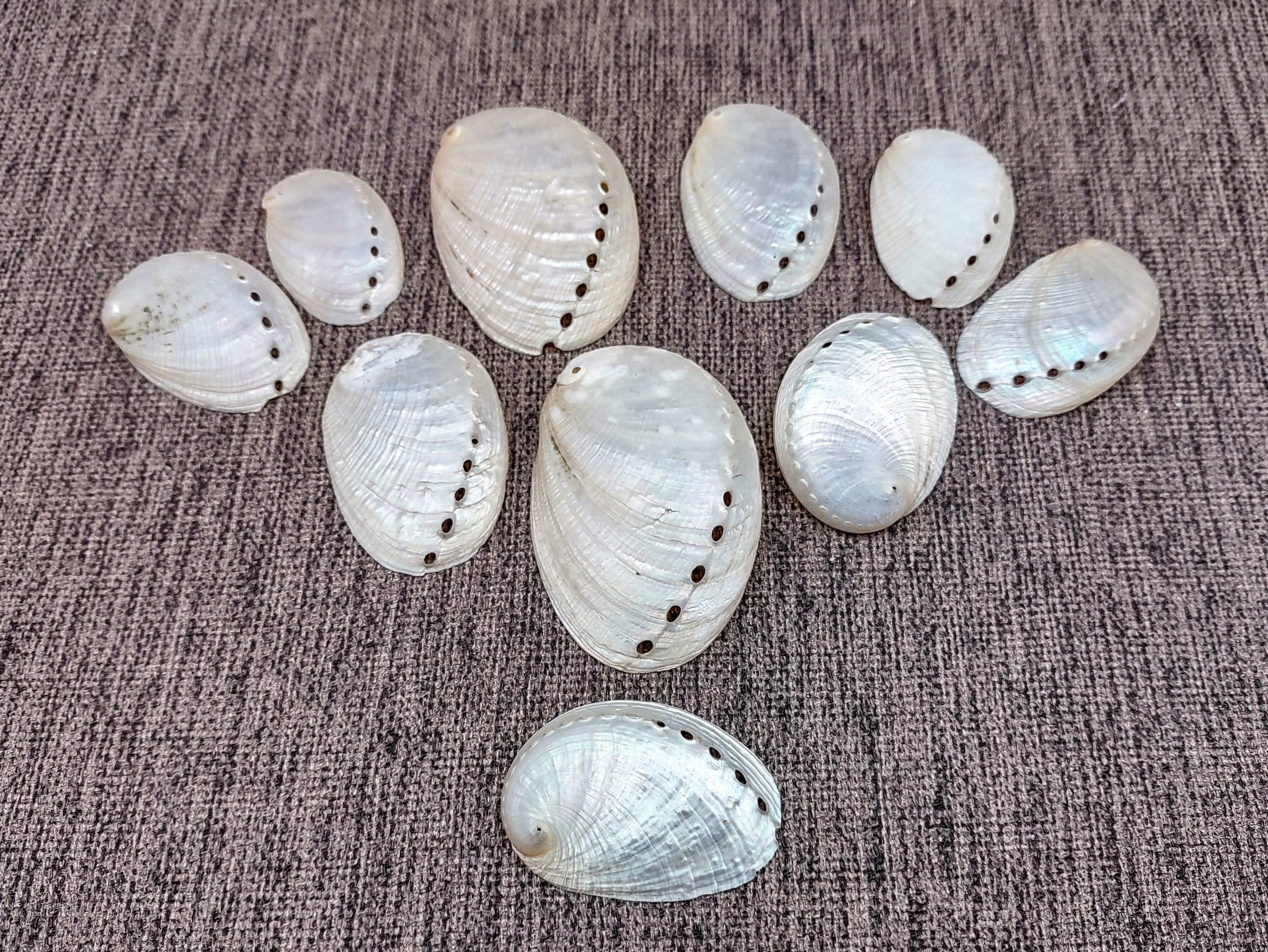Similar to the red abalone, however these shells have been completely pearlized. They have a beautiful pearl white satin finish and are very light.