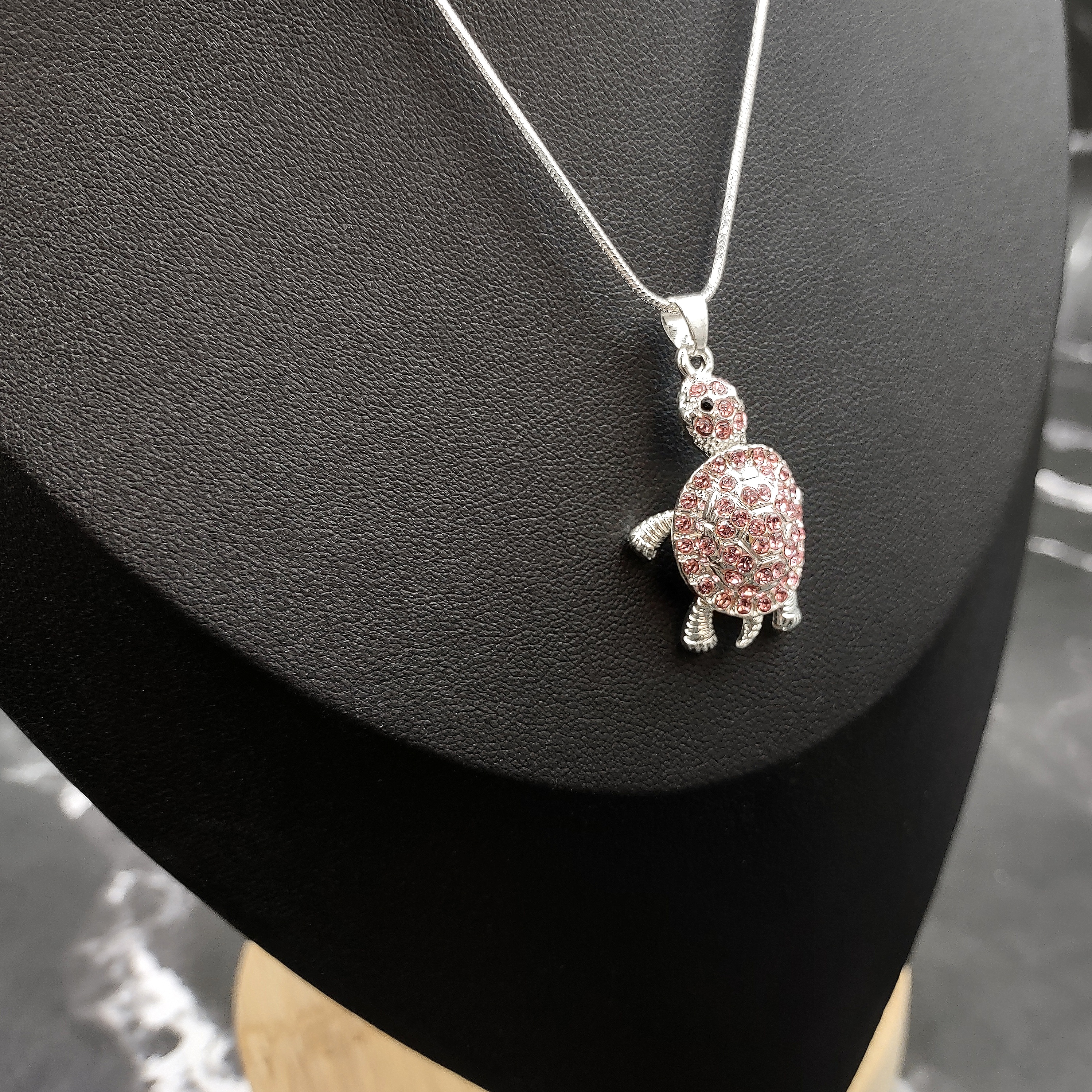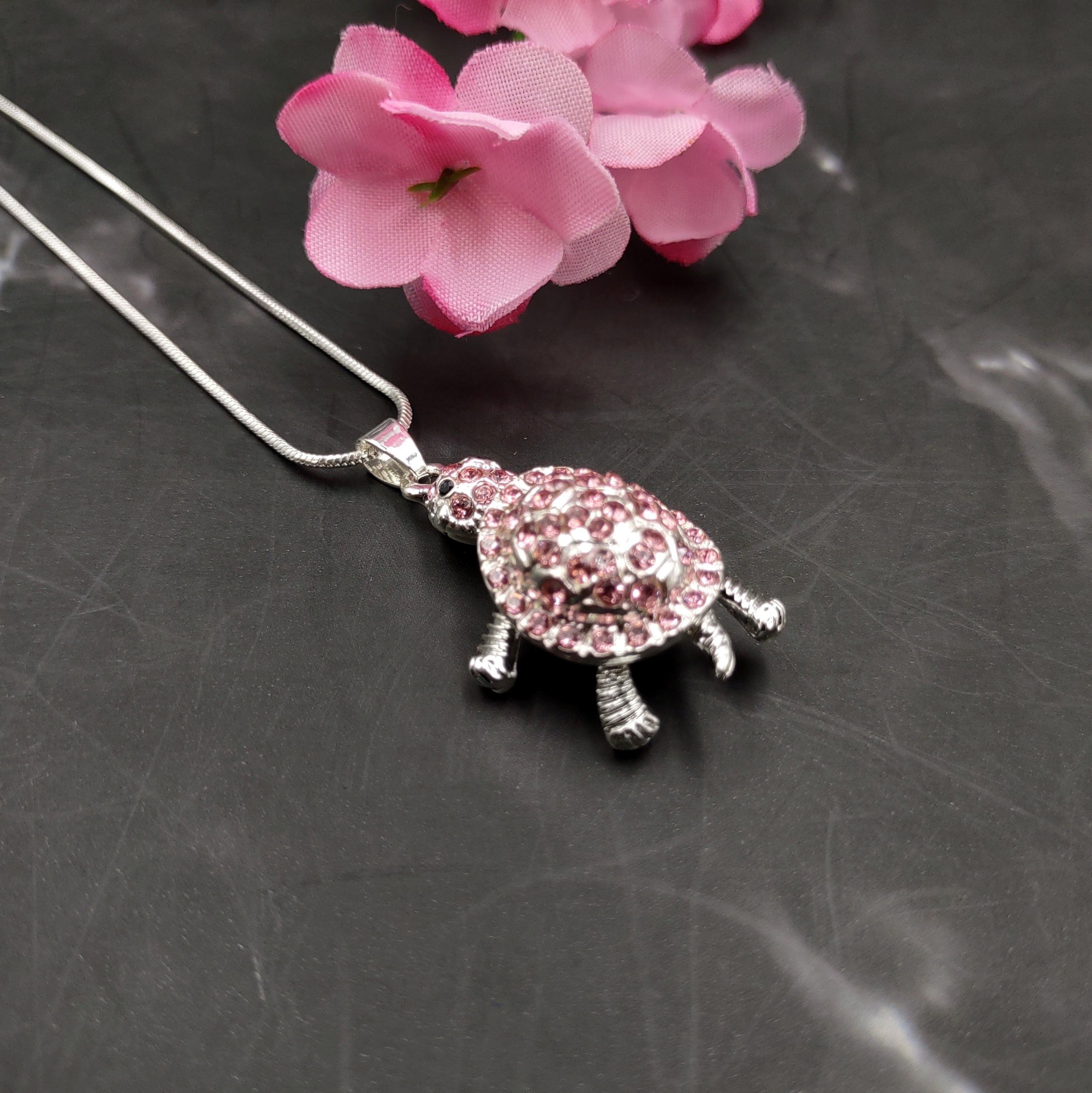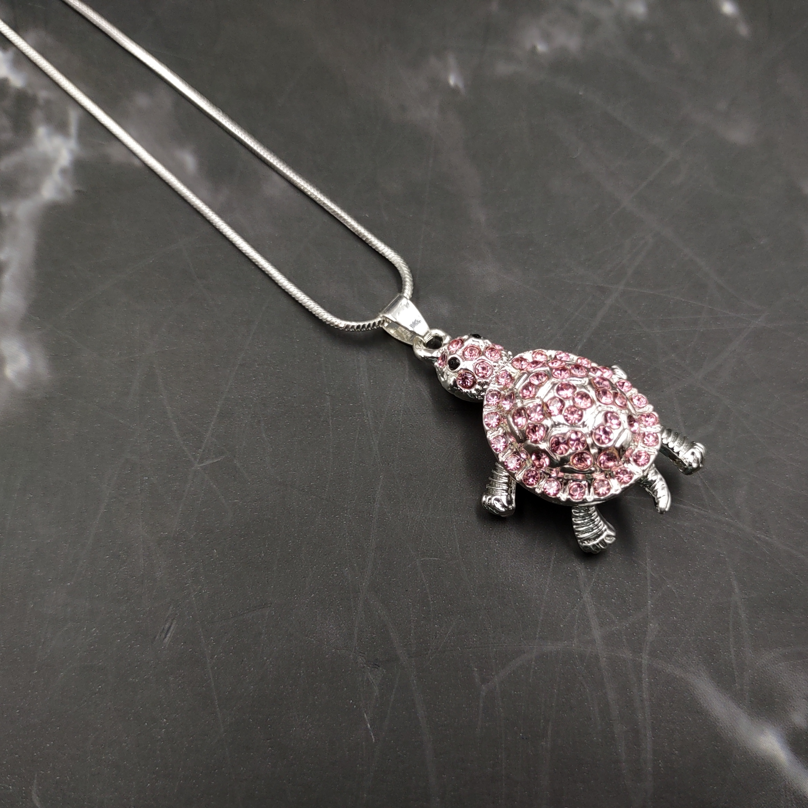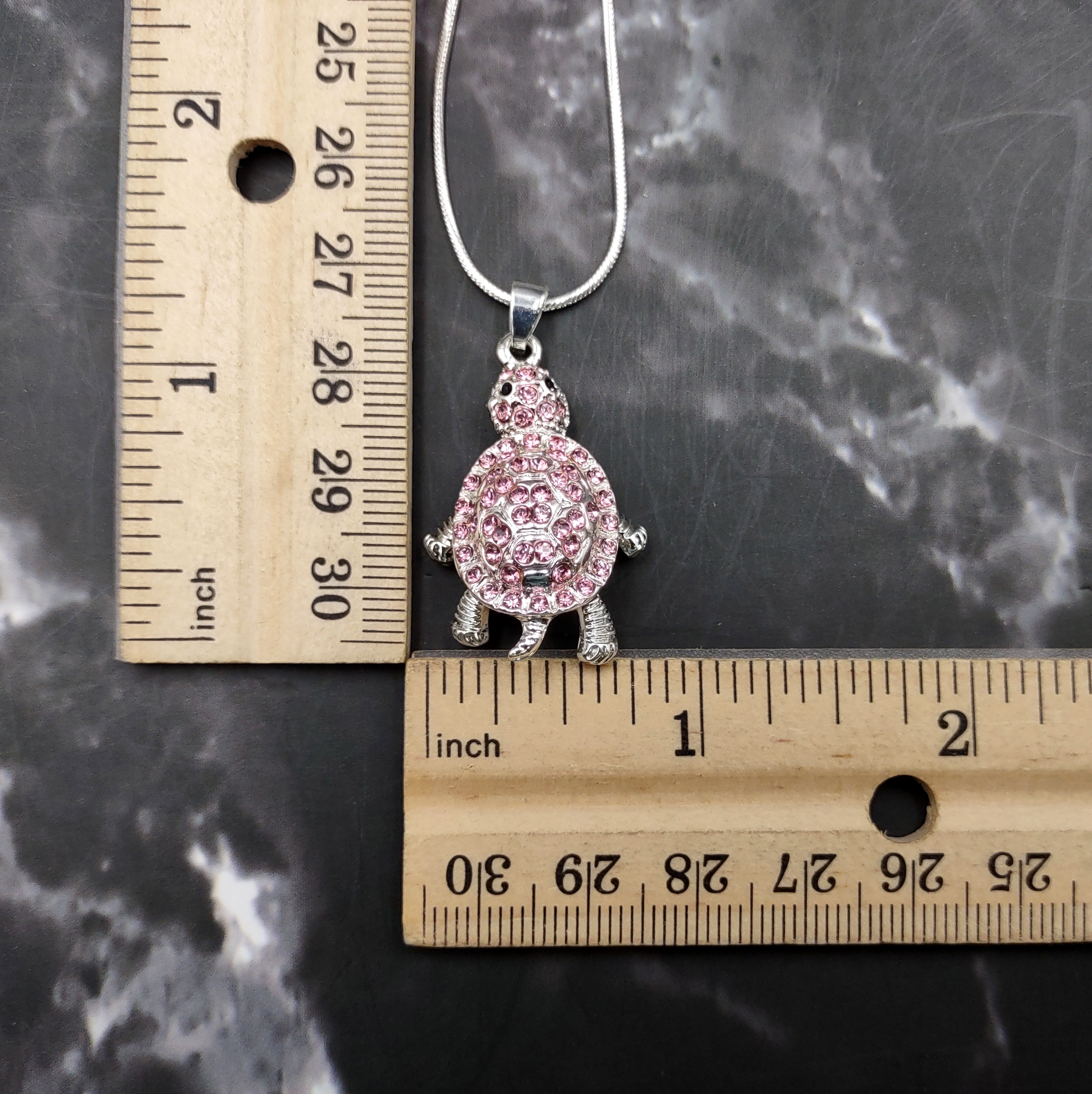 Customers often search for: rhinestone turtle, pink rhinestone, silver tone chain, sea turtle jewelry, sea turtle necklace, beach jewelry, sea turtle gift, sea turtle charm, rose turtle pendant, silver tone jewelry, coastal jewelry, sea animal pendant, handmade jewelry