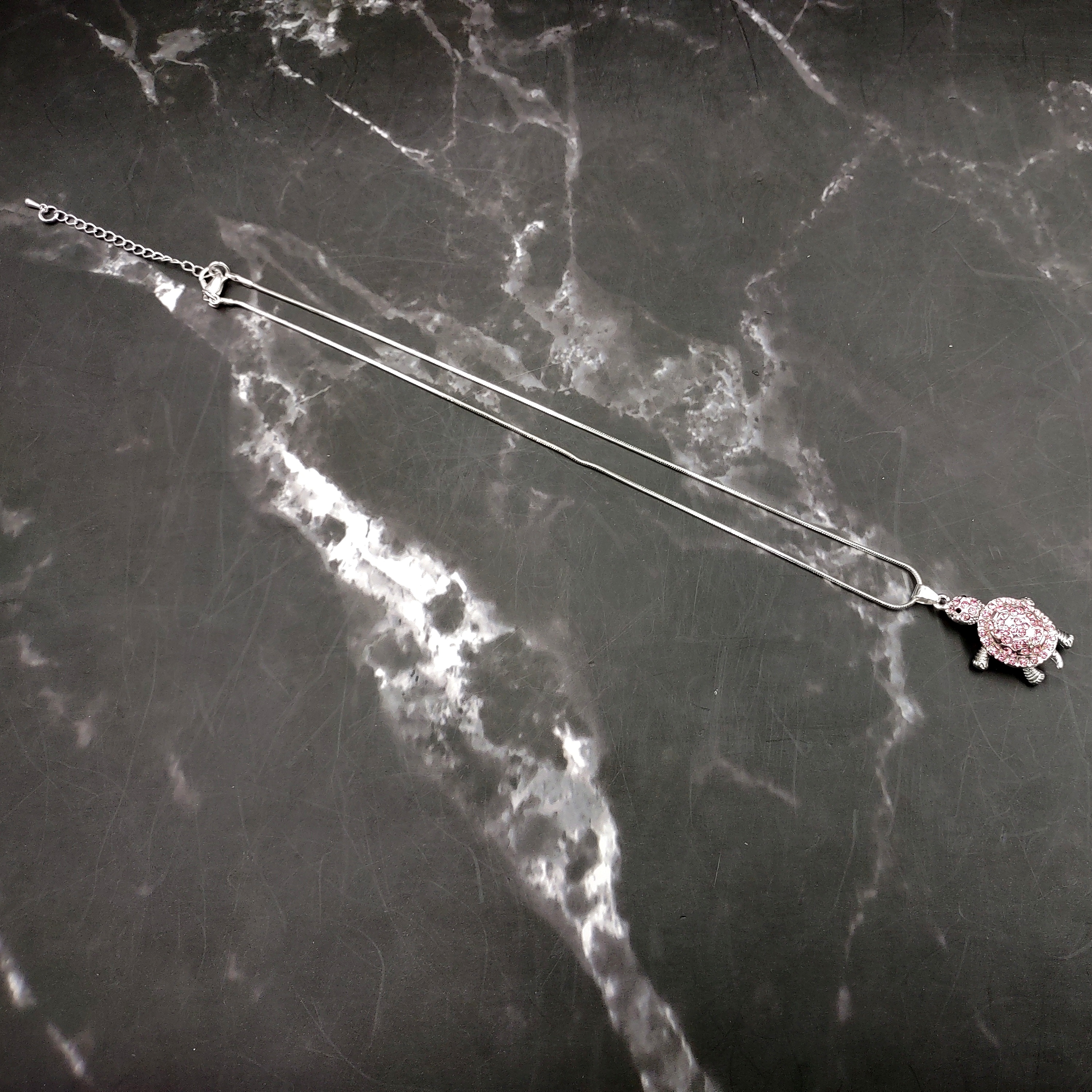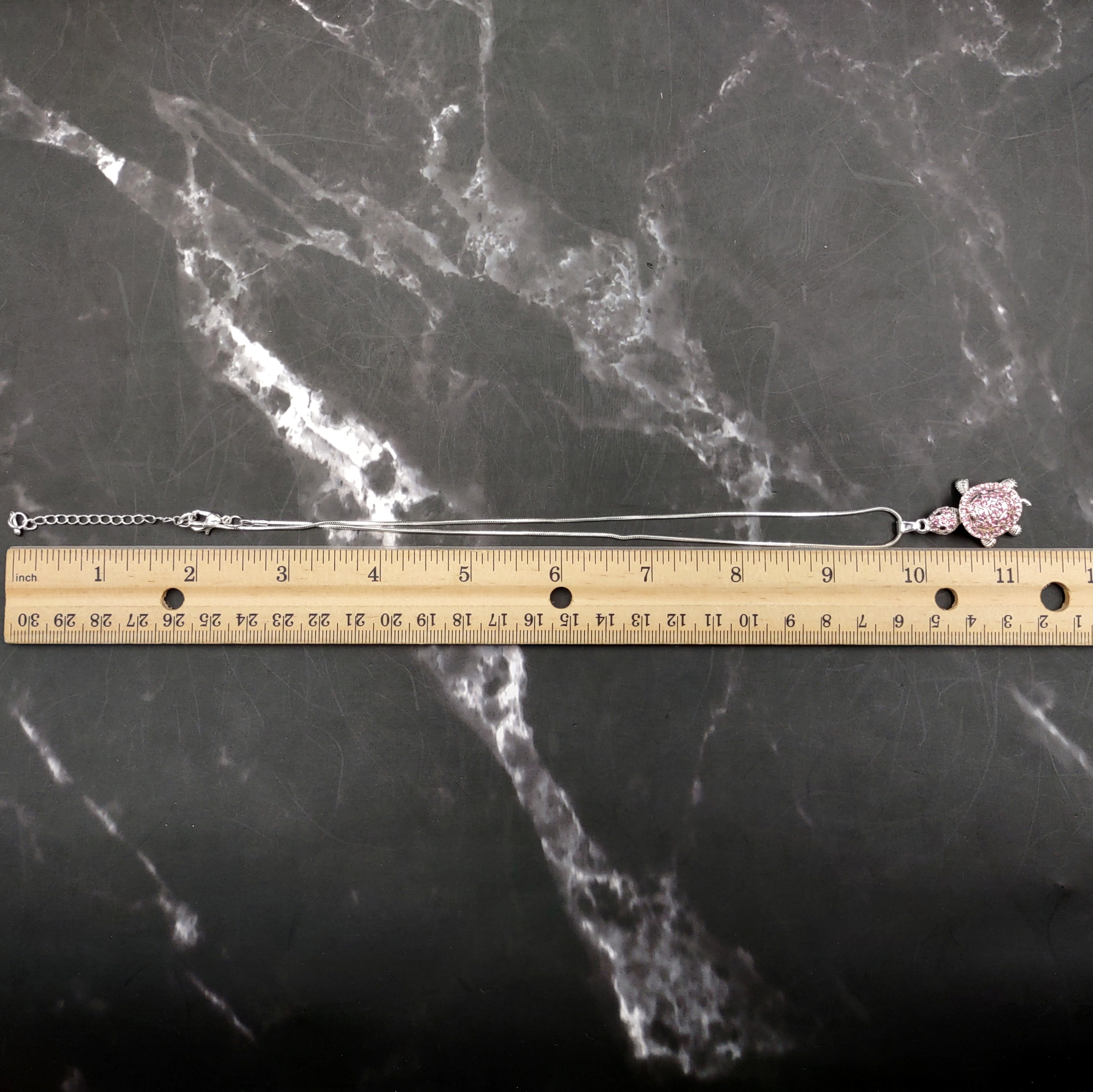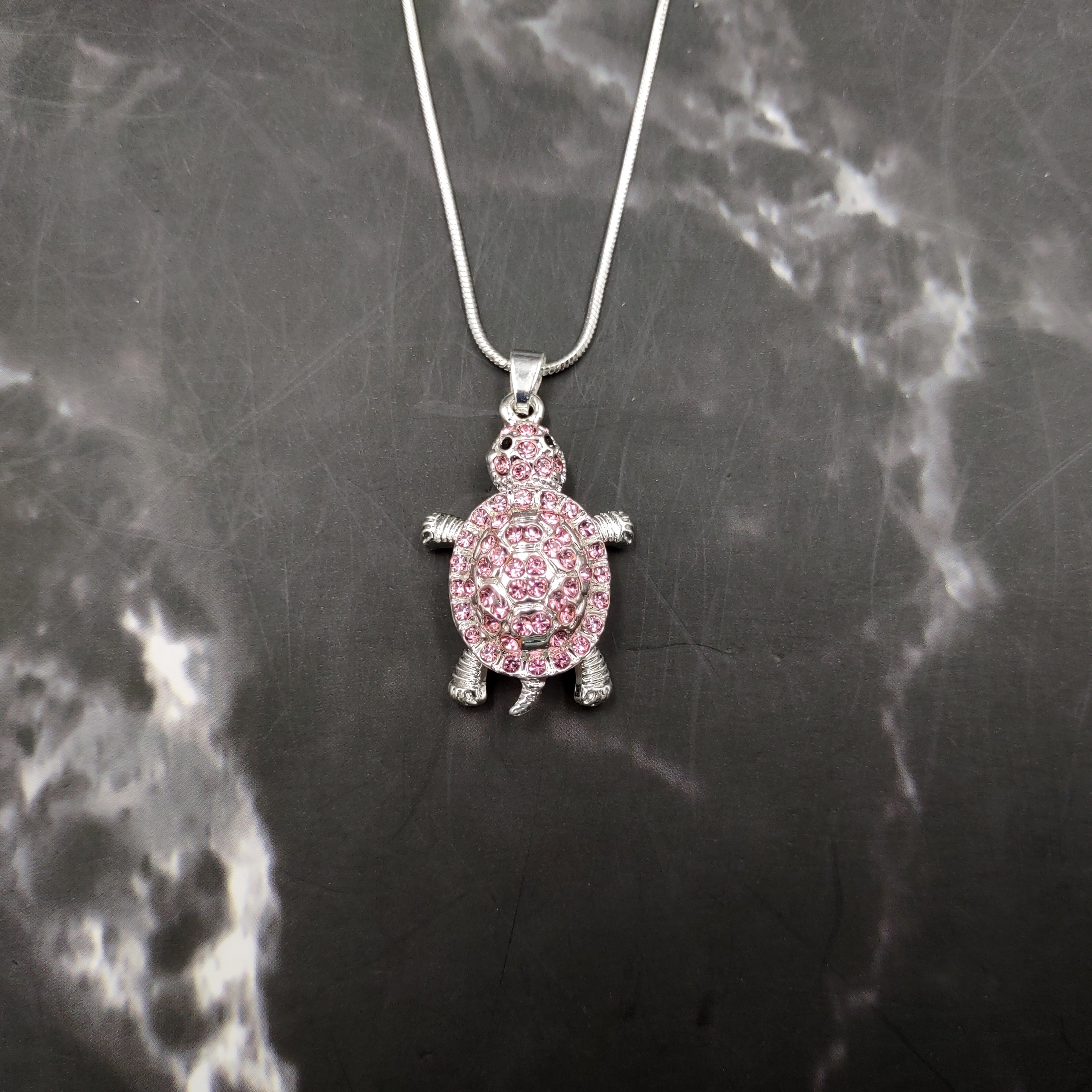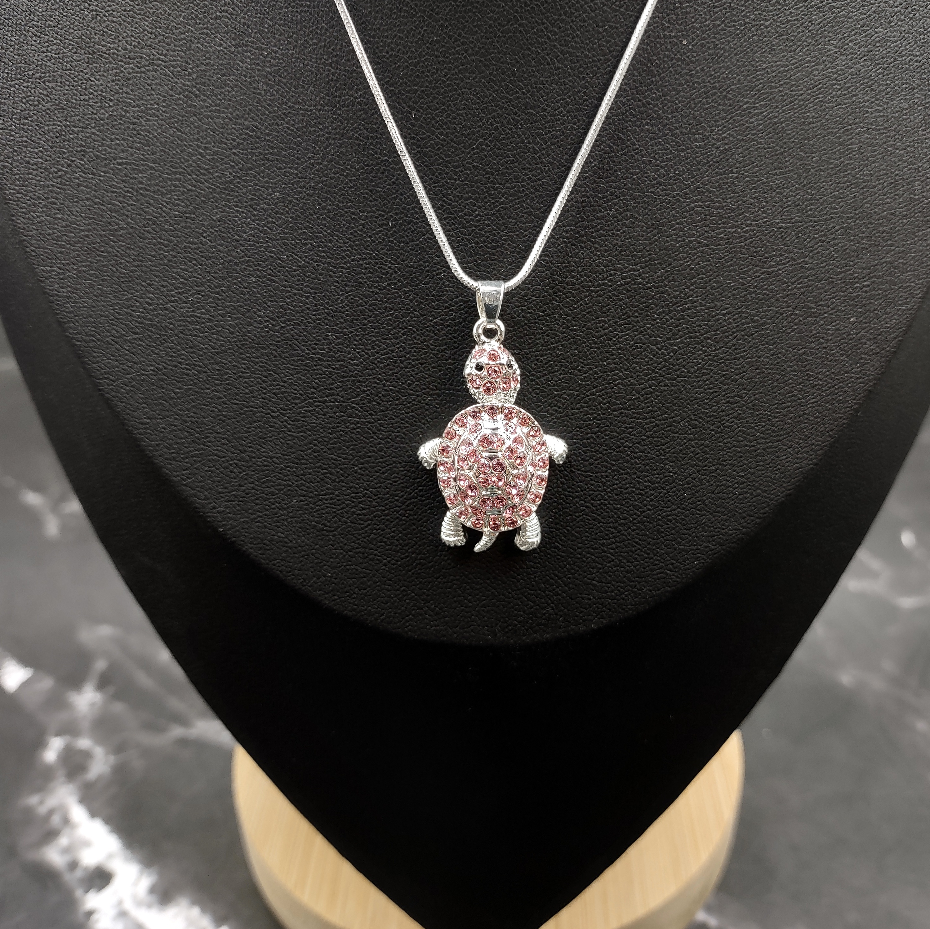 Pink Sea Turtle Necklace Silver Rhinestone Pendant (approx. 16+ inches AROUND) Colorful Sea Turtle Jewelry a gift for ocean life enthusiast!