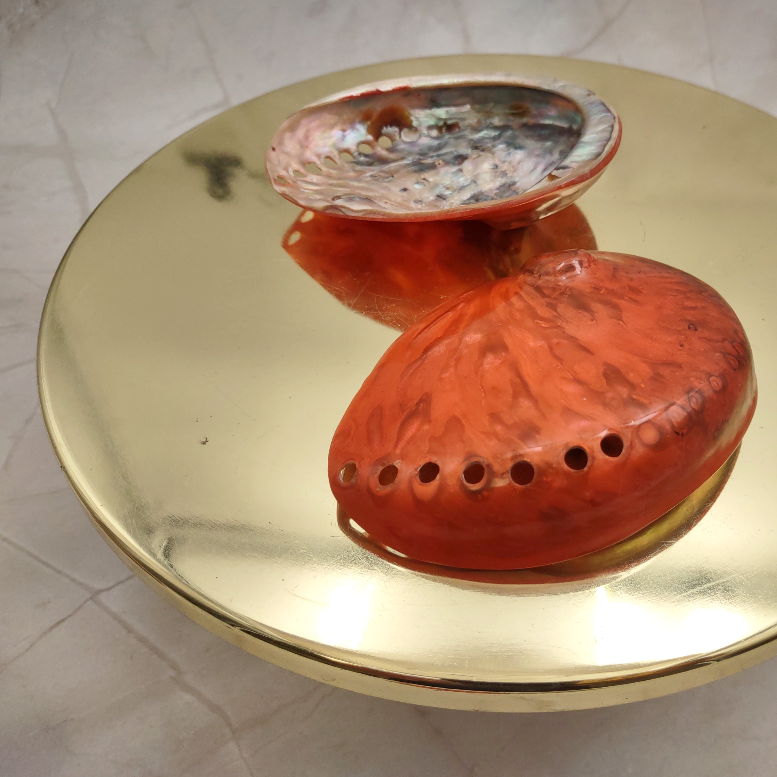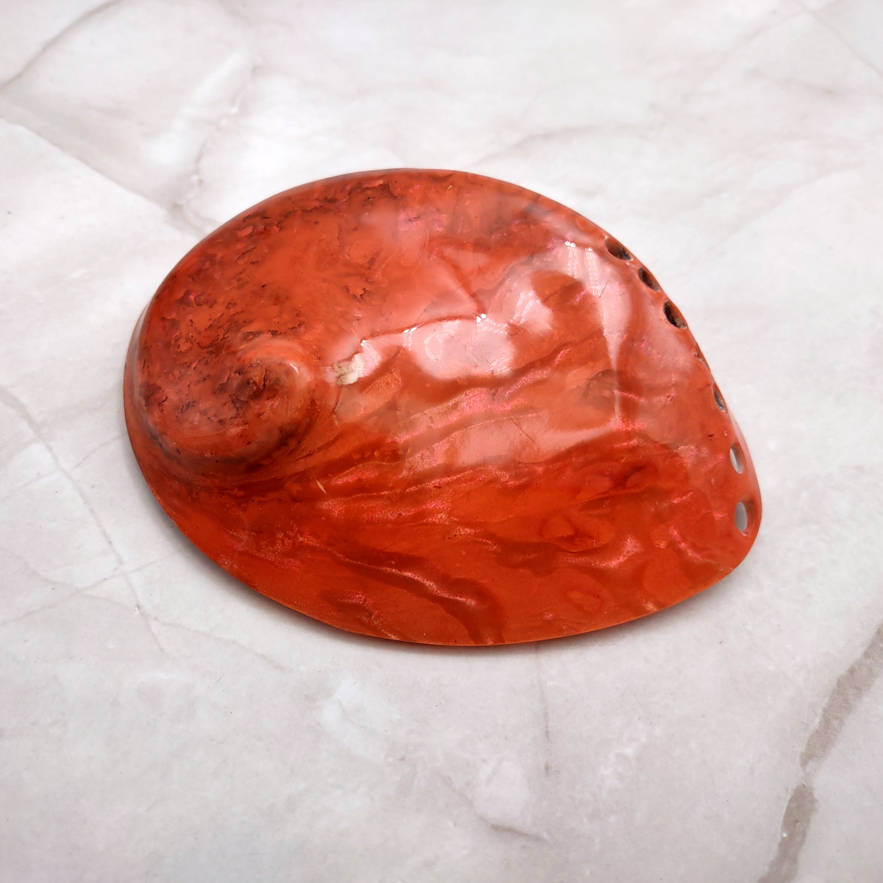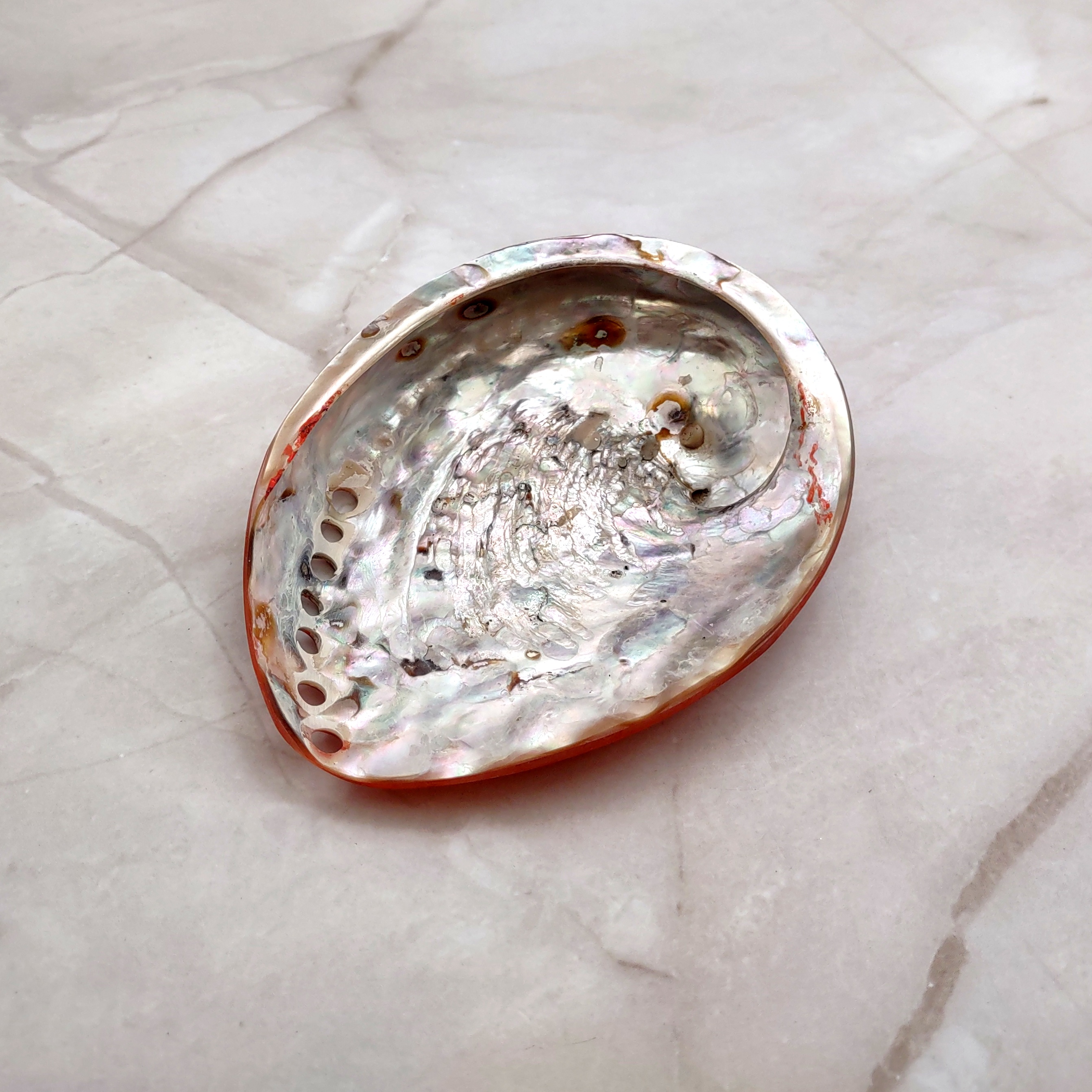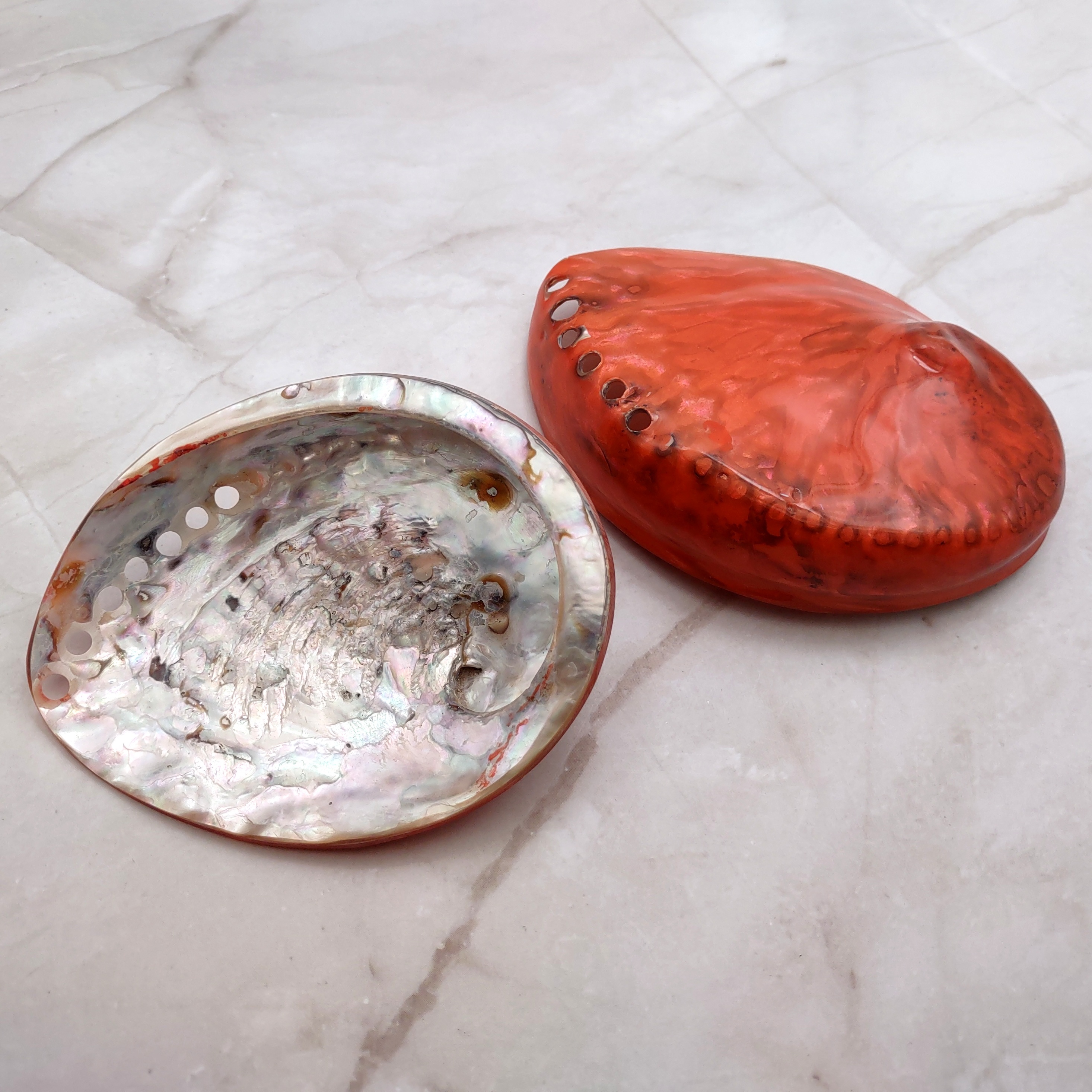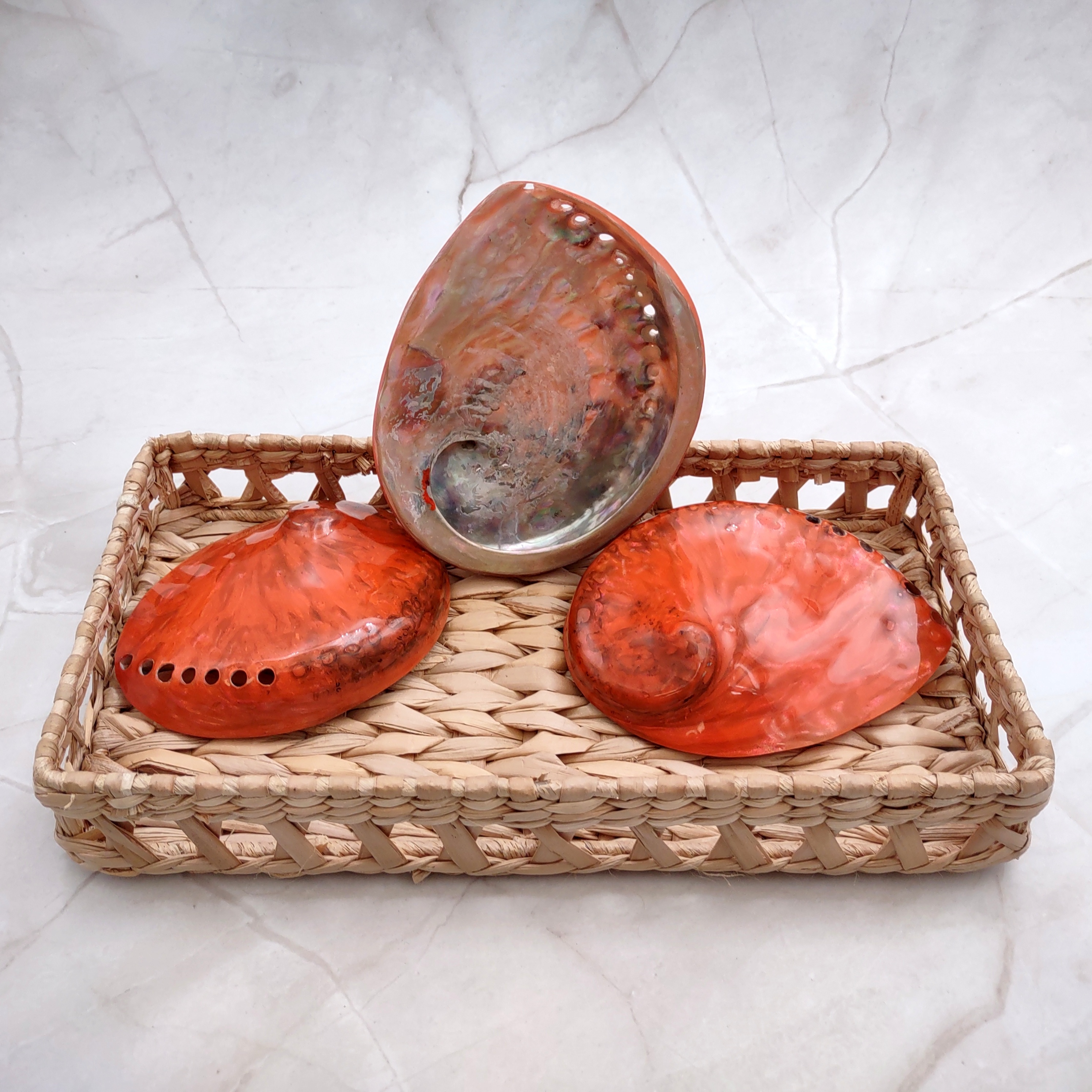 Polished Orange Abalone Seashells add a vibrant touch to artistic endeavors and interior décor with their vivid hues. Their bright colors bring energy and warmth to any setting, making them perfect for uplifting spaces. With a role in Native American smudging ceremonies, they also function beautifully as trinket dishes or key bowls in coastal home entryways, offering both aesthetic appeal and cultural significance.