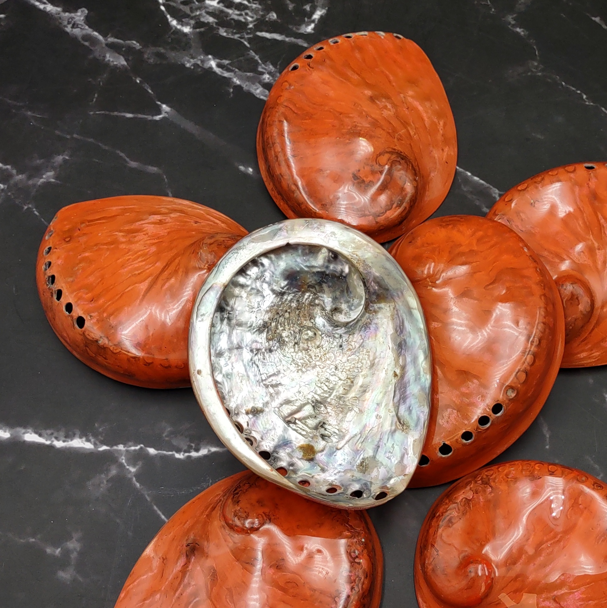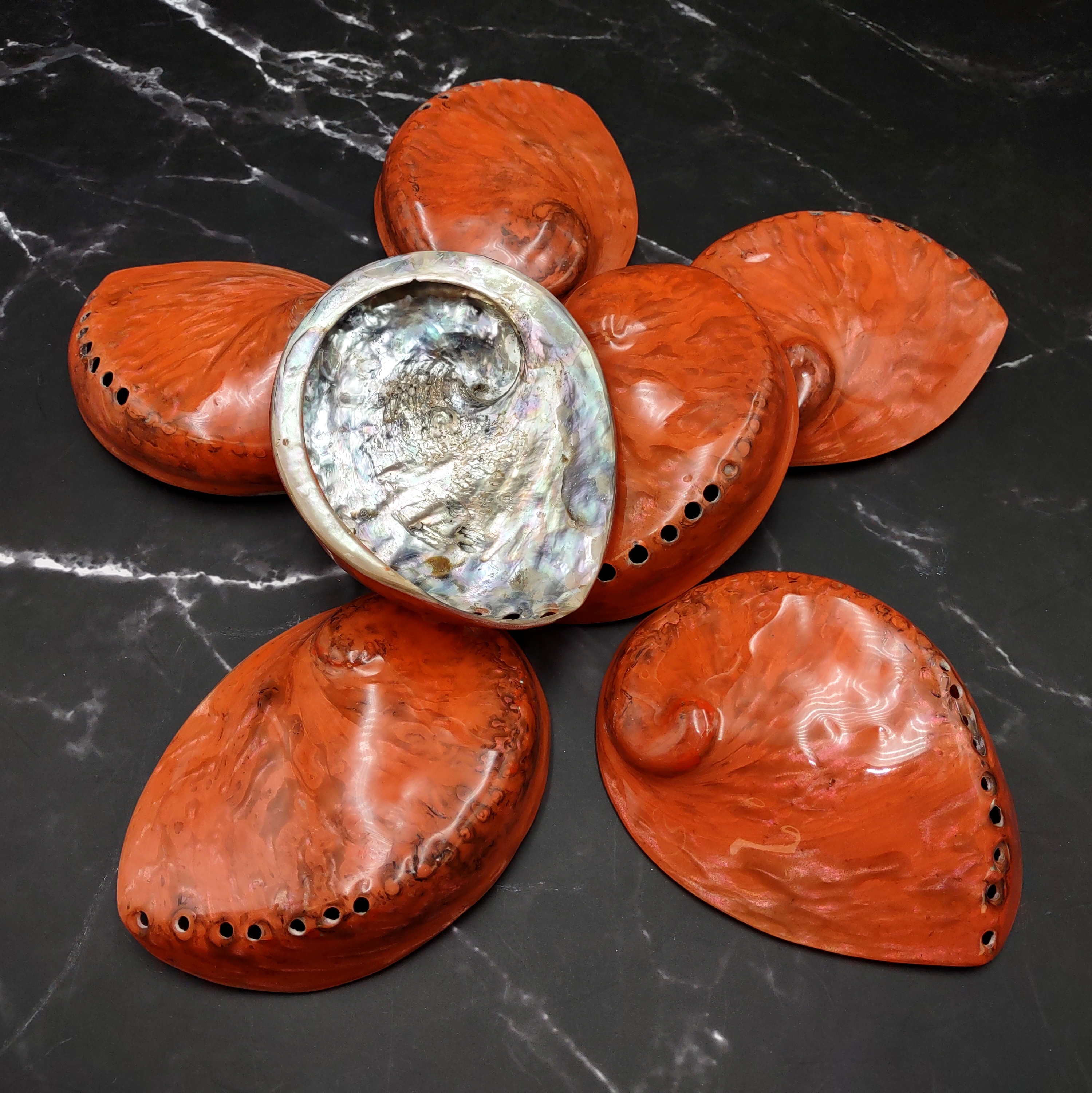 Sold as a set of 7, these shells are perfect for artistic projects, home décor, or spiritual practices. Their vivid hues bring warmth and energy to any space, making them ideal for uplifting and coastal-inspired interiors. Beyond their decorative use, Orange Abalone Shells have cultural significance in Native American smudging ceremonies and can also serve as functional accents—such as trinket dishes, jewelry holders, or key bowls in entryways.