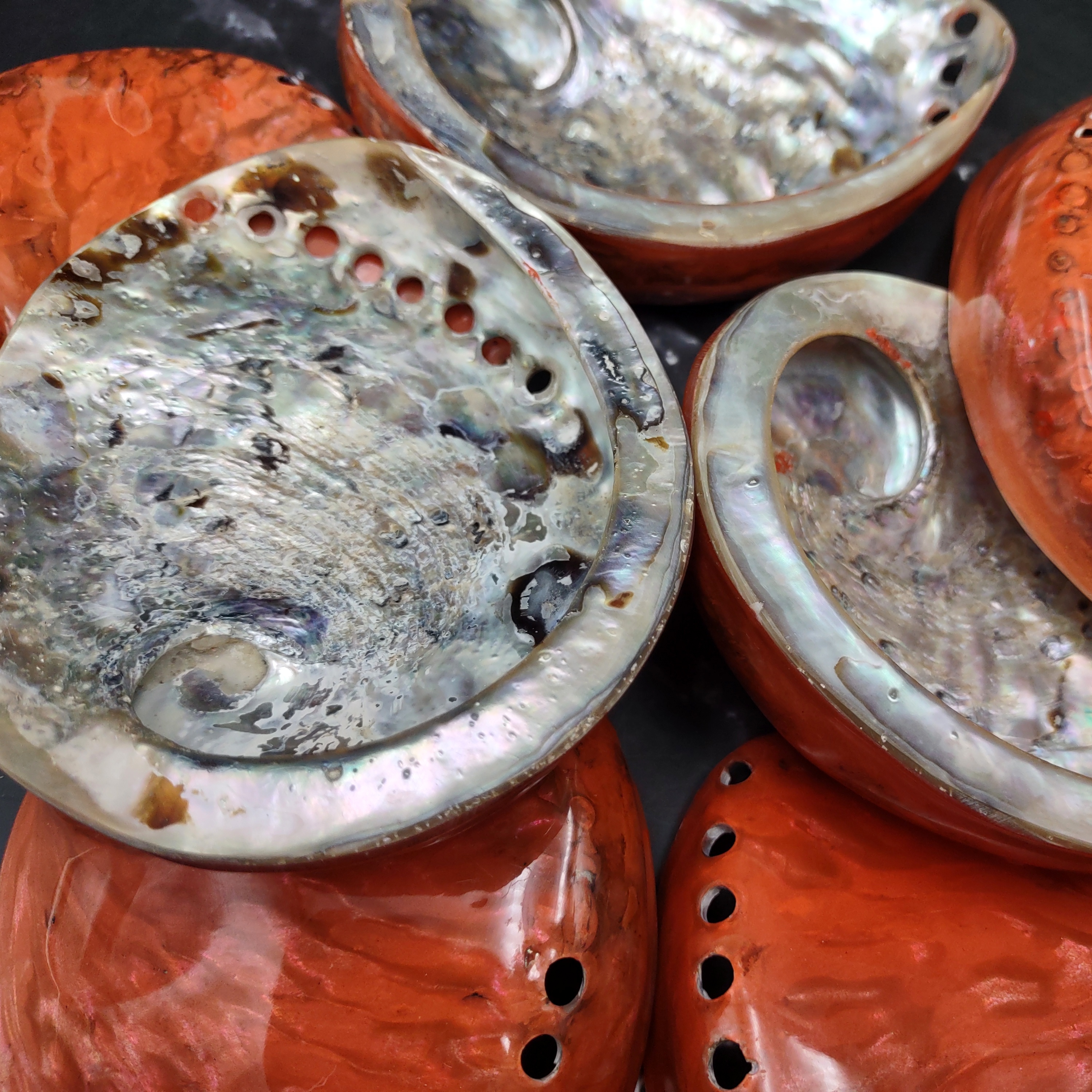 Polished Orange Midas Abalone Seashell Set Haliotis Midae (7 shells approx 4+ inches) B GRADE Abalone Shells for display & collecting!