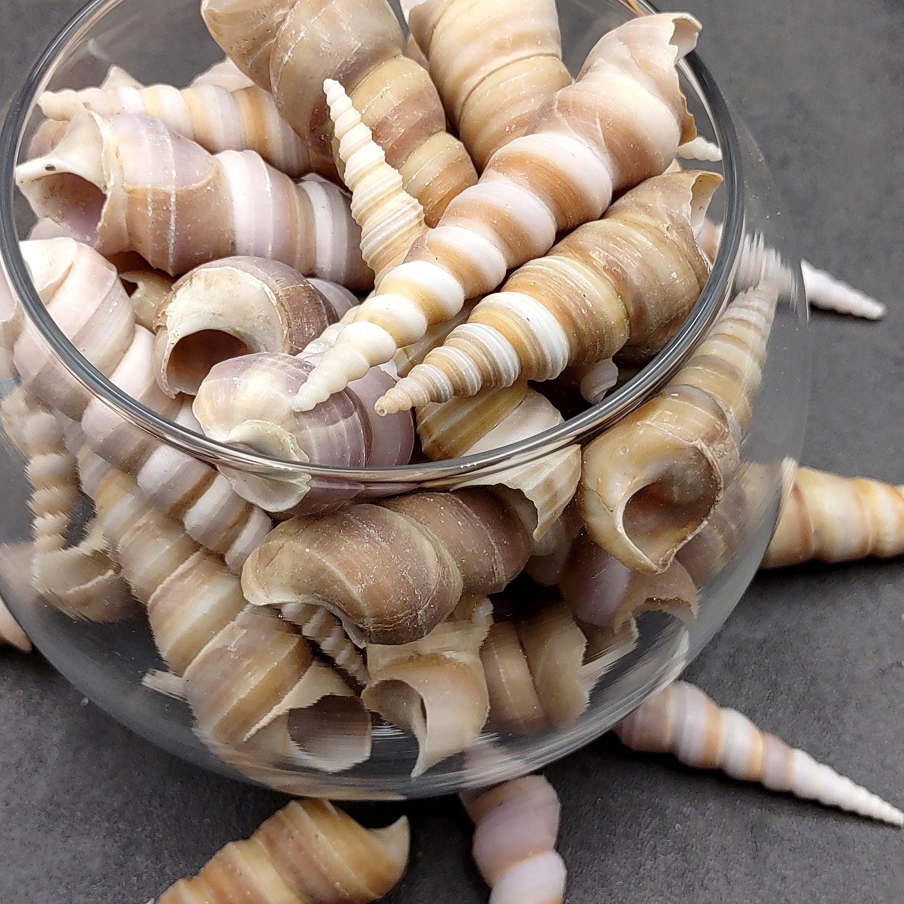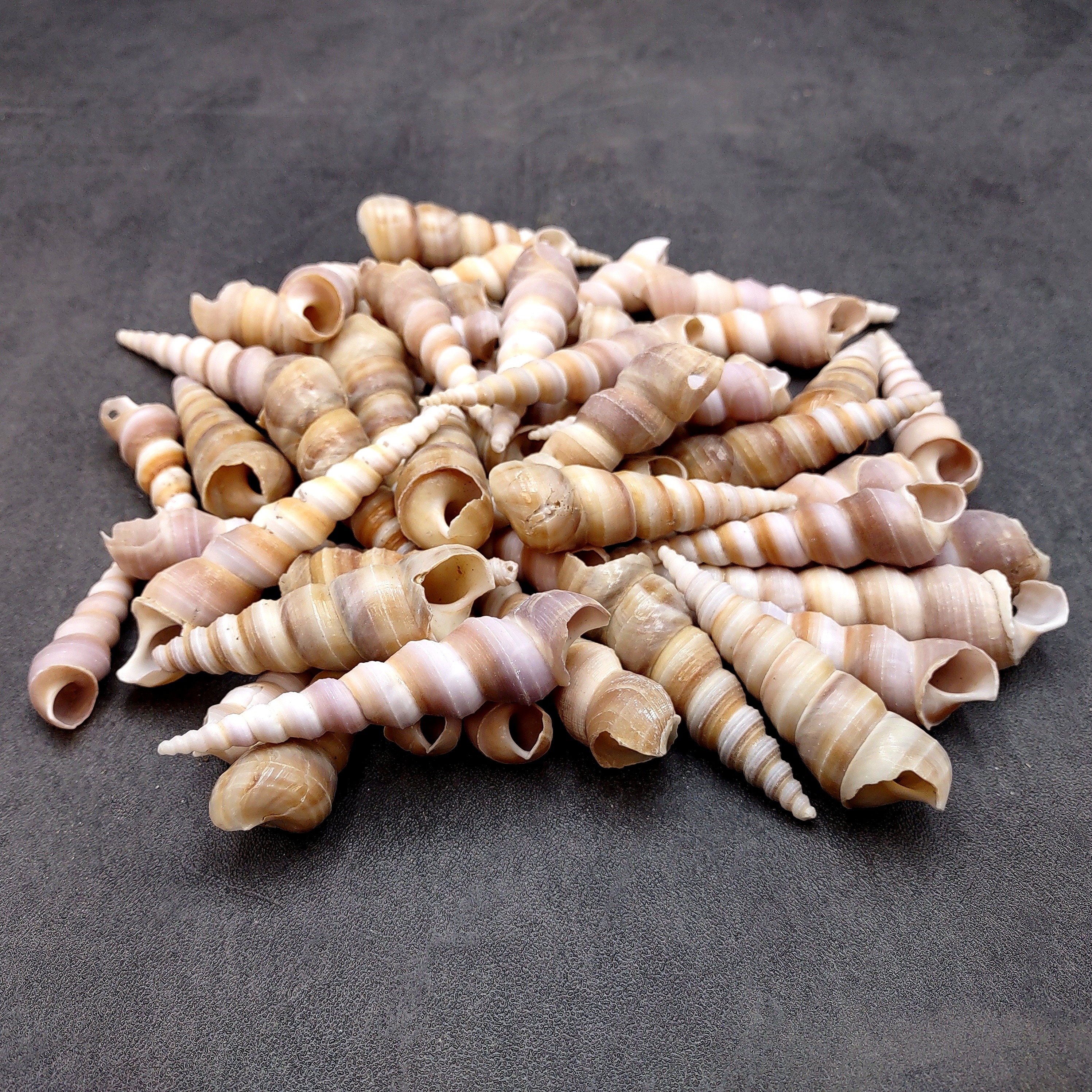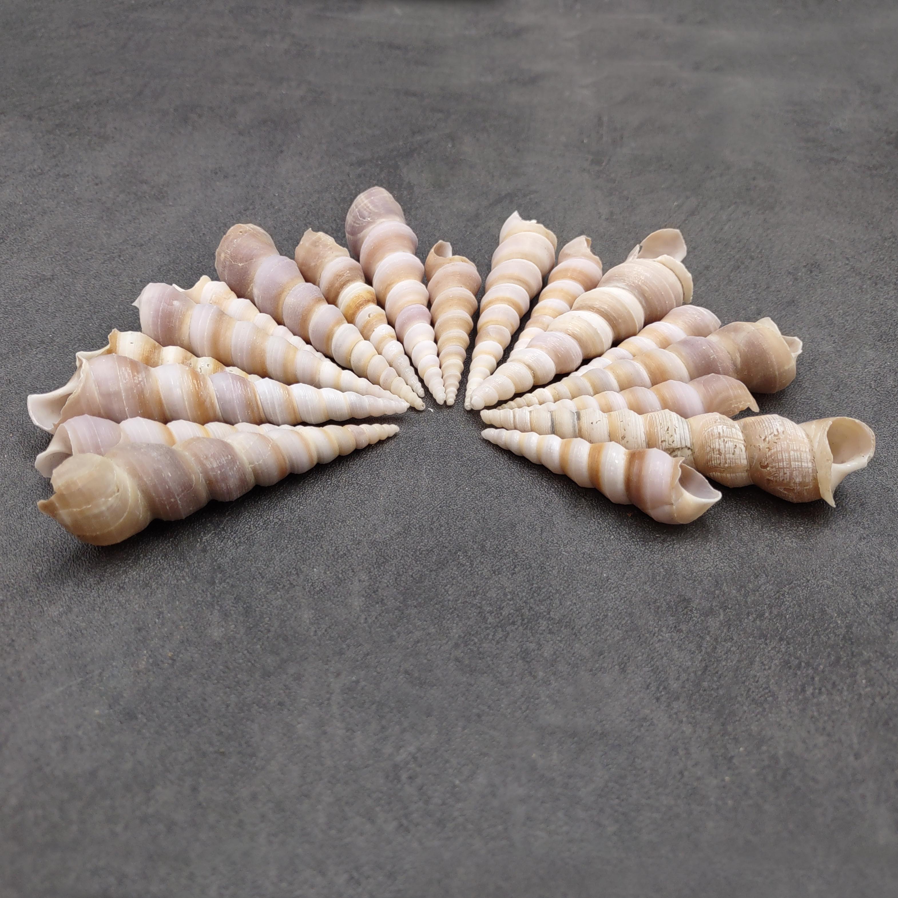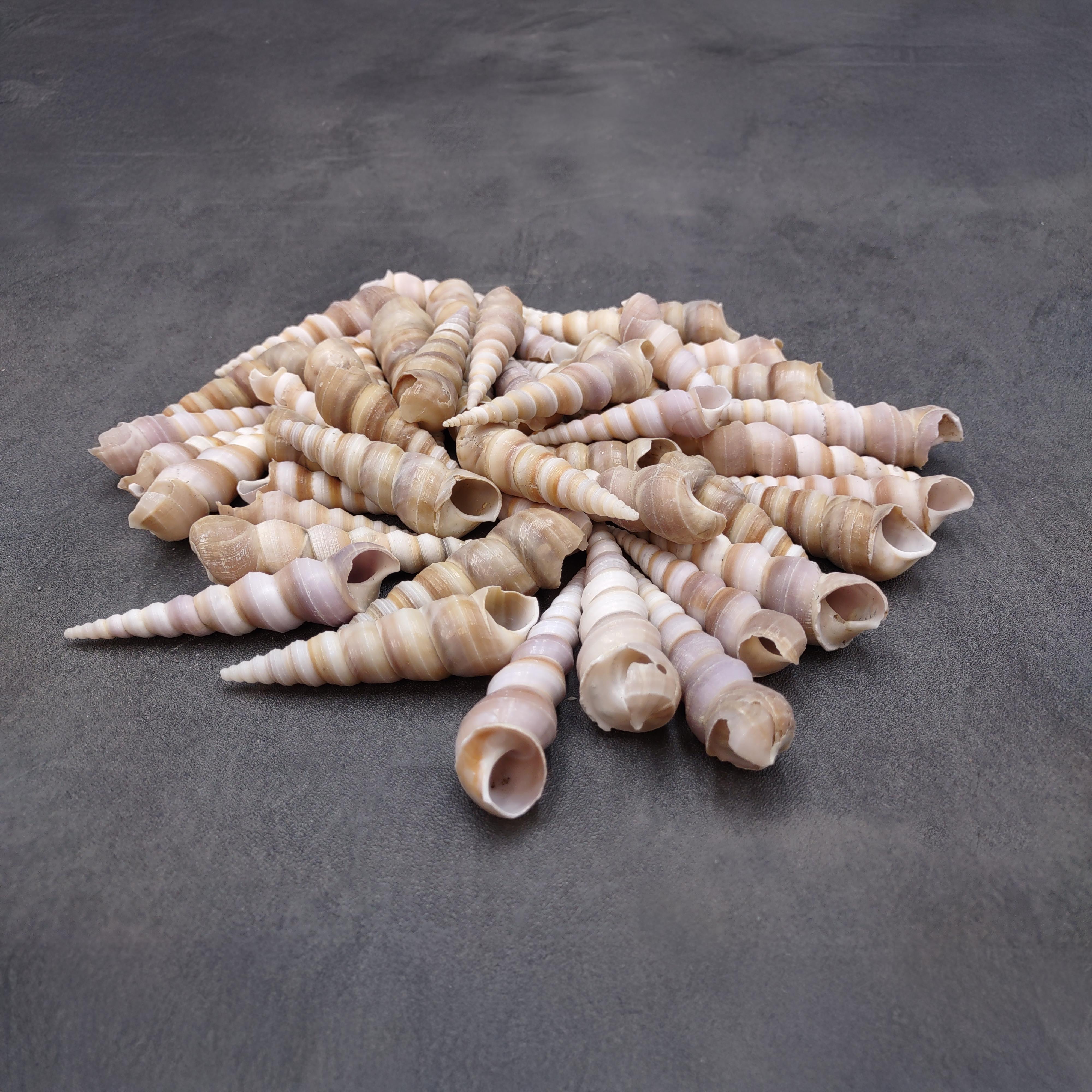 These Turritella shells are ideal for crafting and décor, including picture frames, shadow boxes, wind chimes, jewelry making, vase fillers, wedding accents, lamp decorating, and coastal-themed home or office displays. Their versatile shape and ocean-worn beauty make them a favorite choice for crafters, designers, and shell collectors alike.