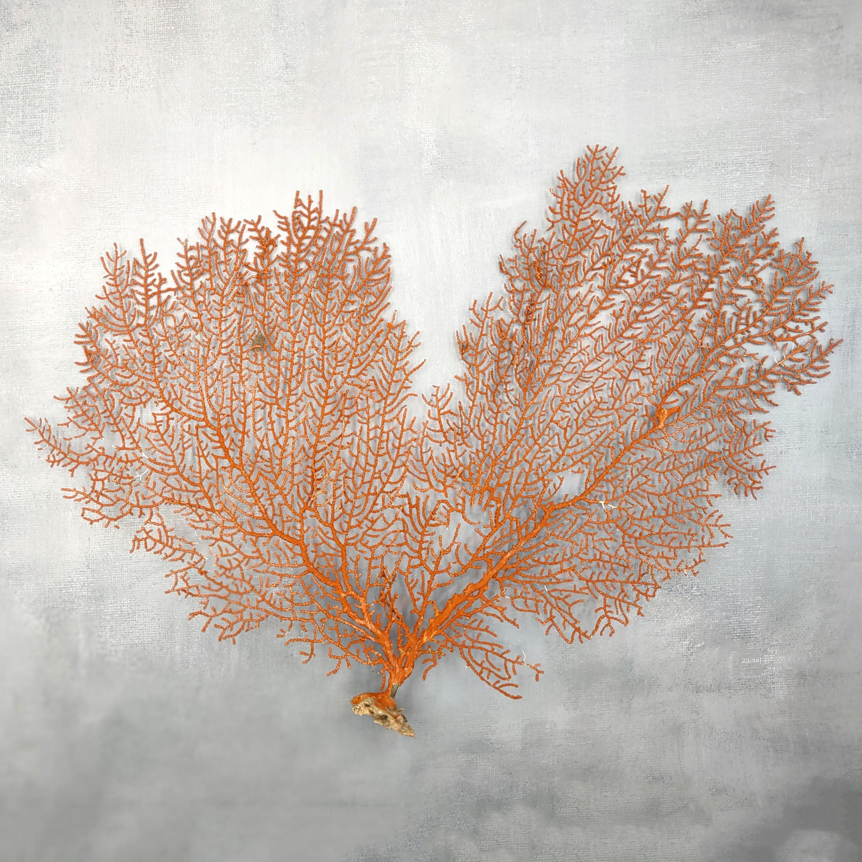 This natural red orange sea fan coral features delicate branching patterns and warm sunset tones that bring a beautiful ocean-inspired touch to any space. Sea fans are soft corals found in shallow tropical reefs and grow attached to the seabed. Each piece is naturally unique, so variations in shape, size, and branching are expected, making every specimen one of a kind.