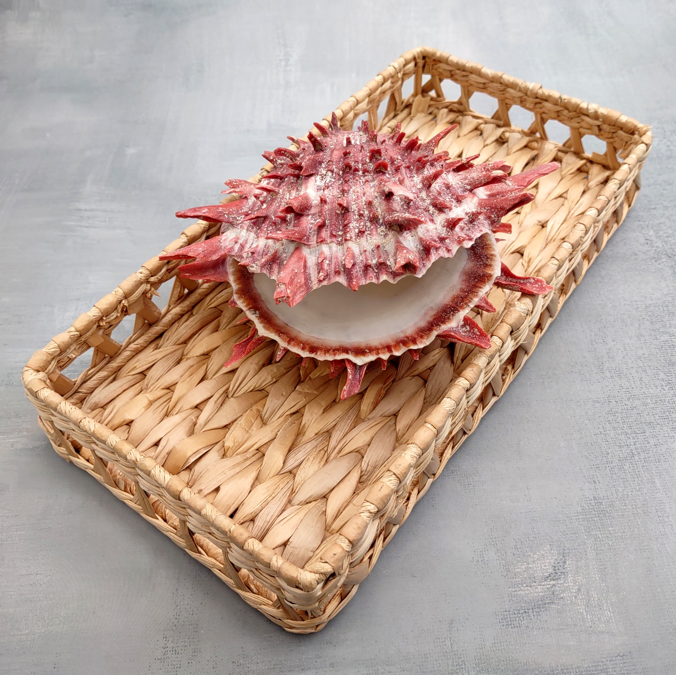 These reddish purple spiny oyster seashells are striking natural ocean finds prized for their bold color, textured surface, and sculptural shape. Featuring rich tones of deep red, purple, and coral, they make eye-catching accents for coastal home decor, beach-themed rooms, nautical displays, and shell collections. Their natural bowl-like form also makes them great for use as paperweights, ring dishes, small jewelry holders, or candle holders, adding an organic seaside touch to any space.