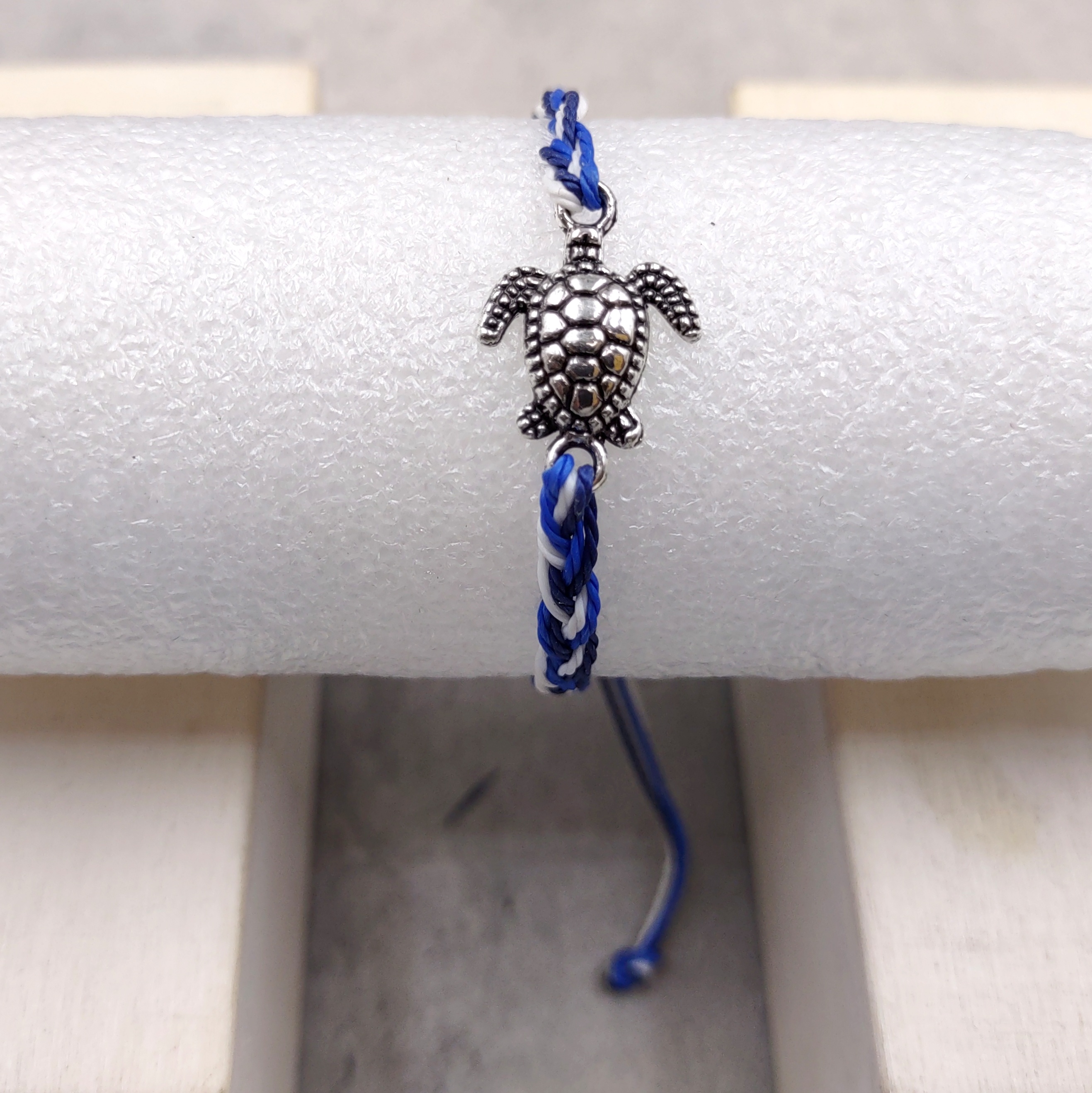 Sea Turtle Bracelet Braided Cord Navy Blue White (approx. 5-7+ inches AROUND) Navy Royal Blue White Knit String Sea Turtle Bracelet to gift!