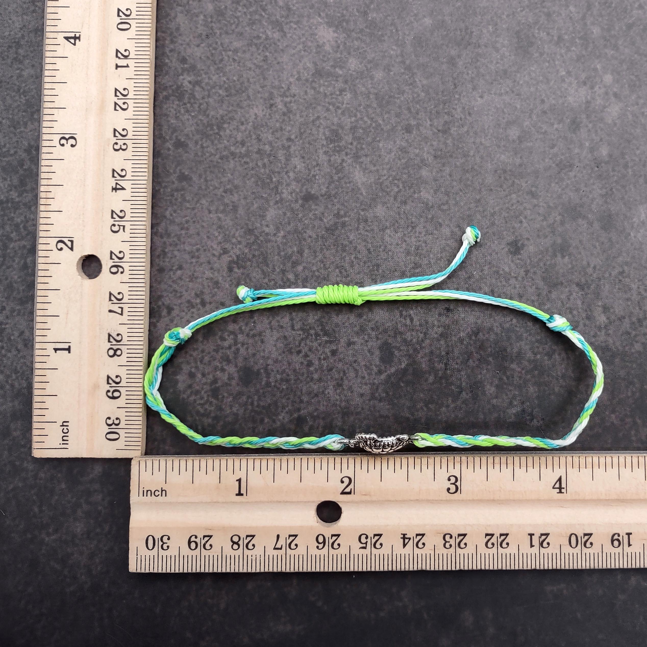 Sea Turtle Bracelet Braided Cord Teal Lime Green White (approx. 5-7+ inches AROUND) Aqua Green White String Sea Turtle Bracelet to gift!