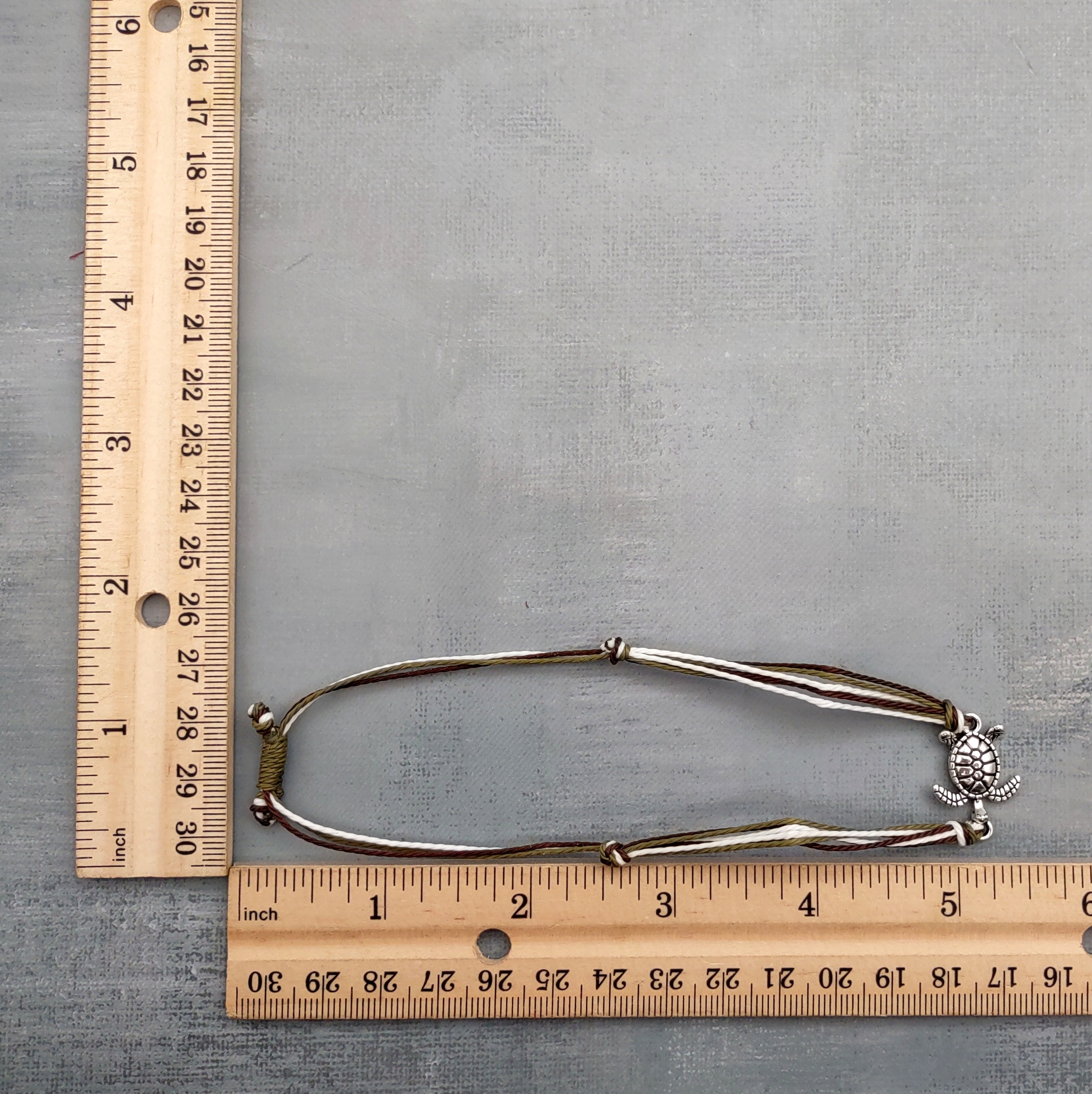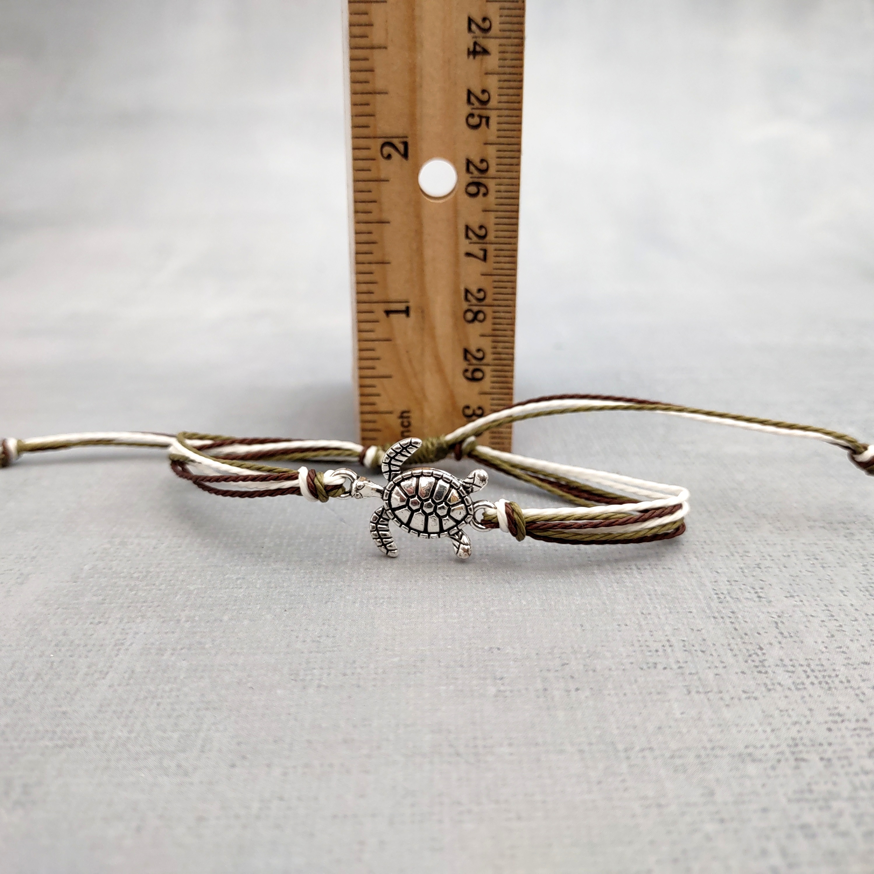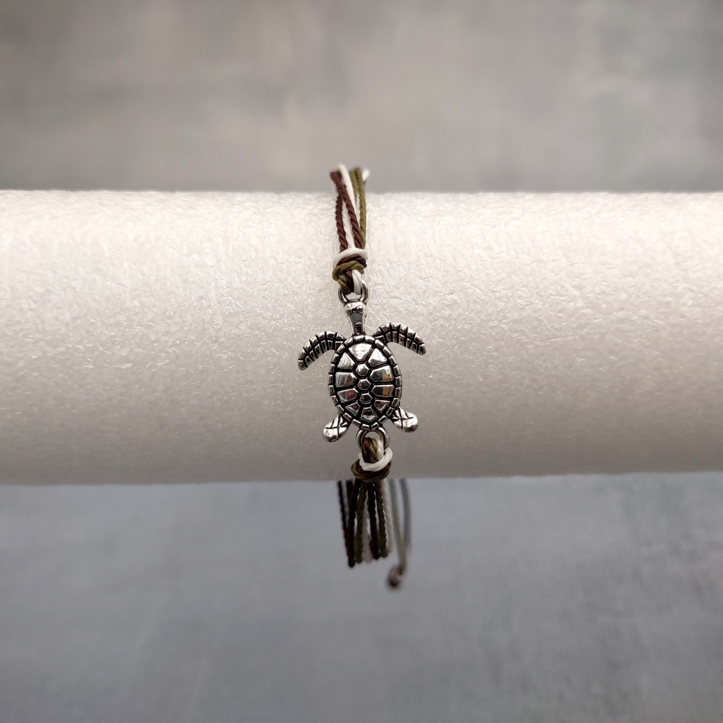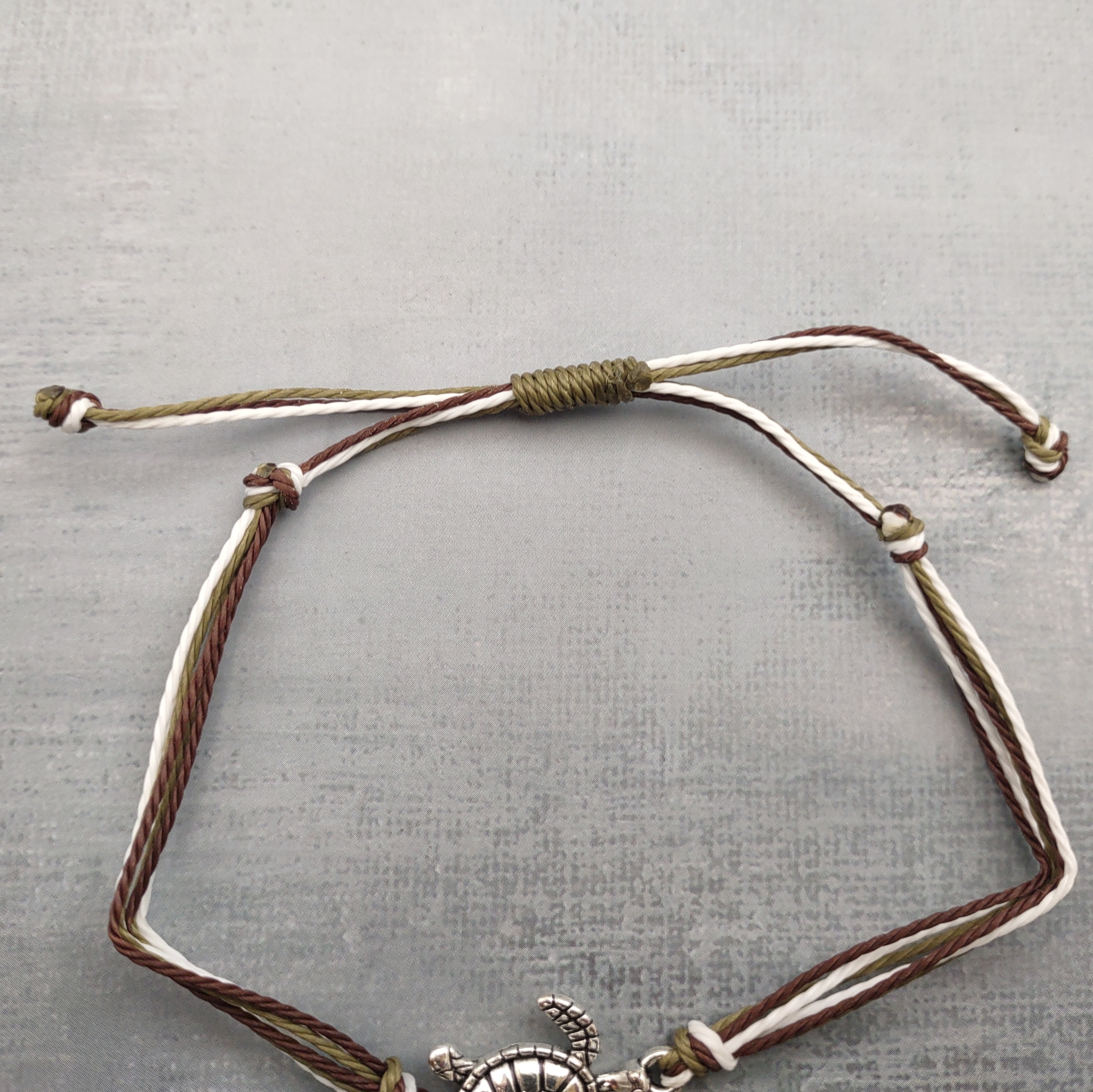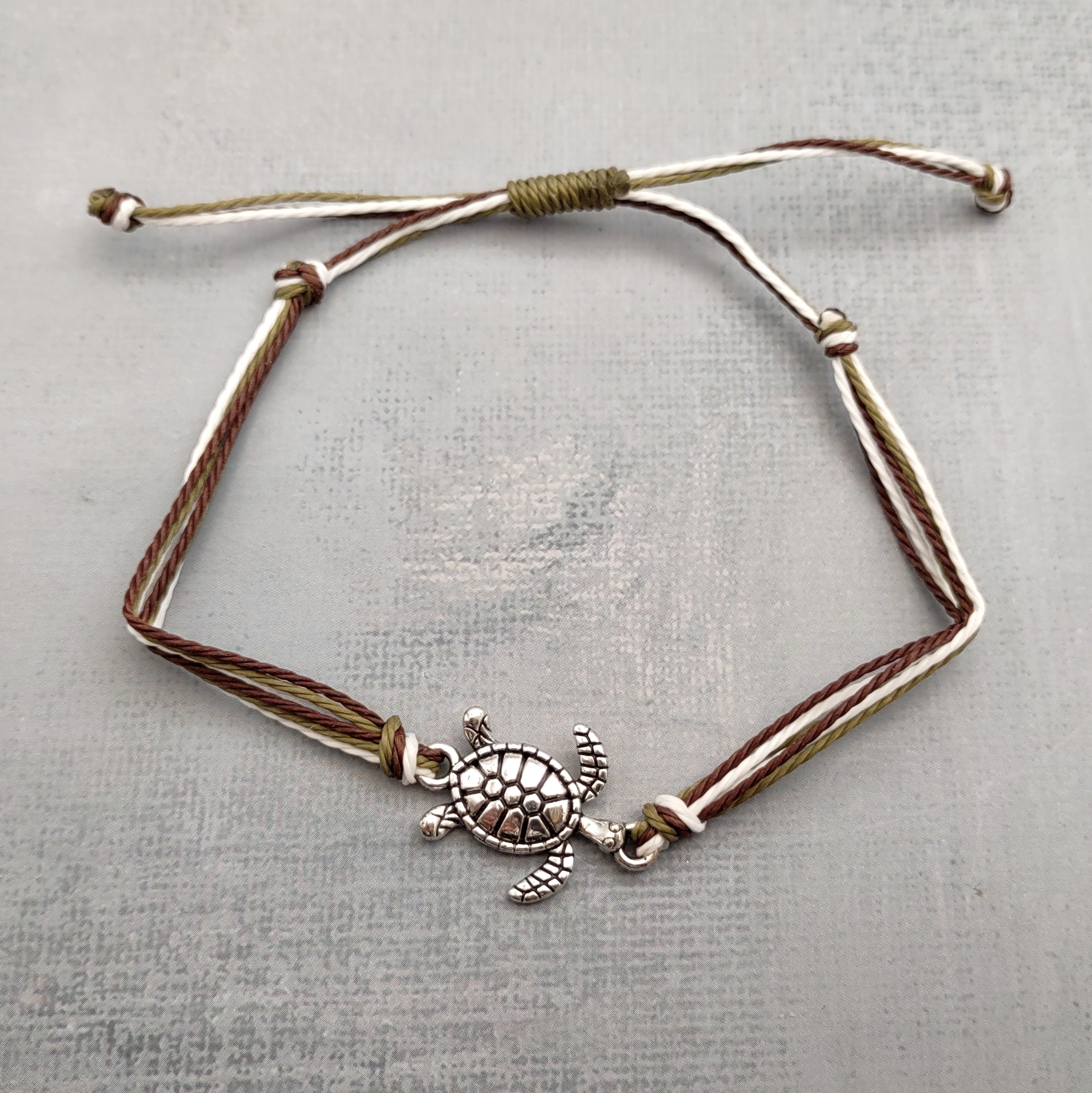 Sea Turtle Charm Bracelet Brown Green White Cord (approx. 5-7+ inches AROUND) Olive Green Brown Sea Turtle String Bracelet Jewelry to gift!
