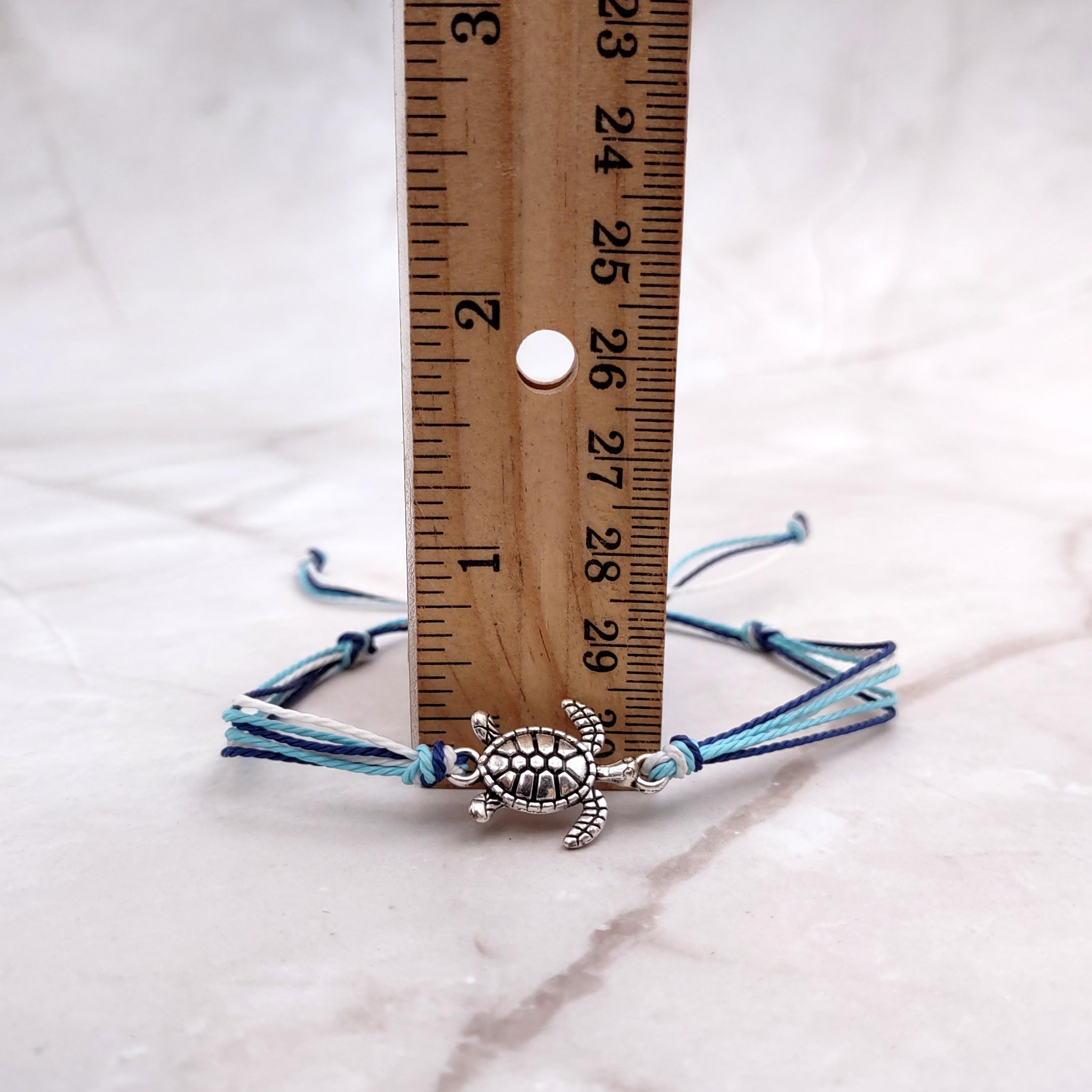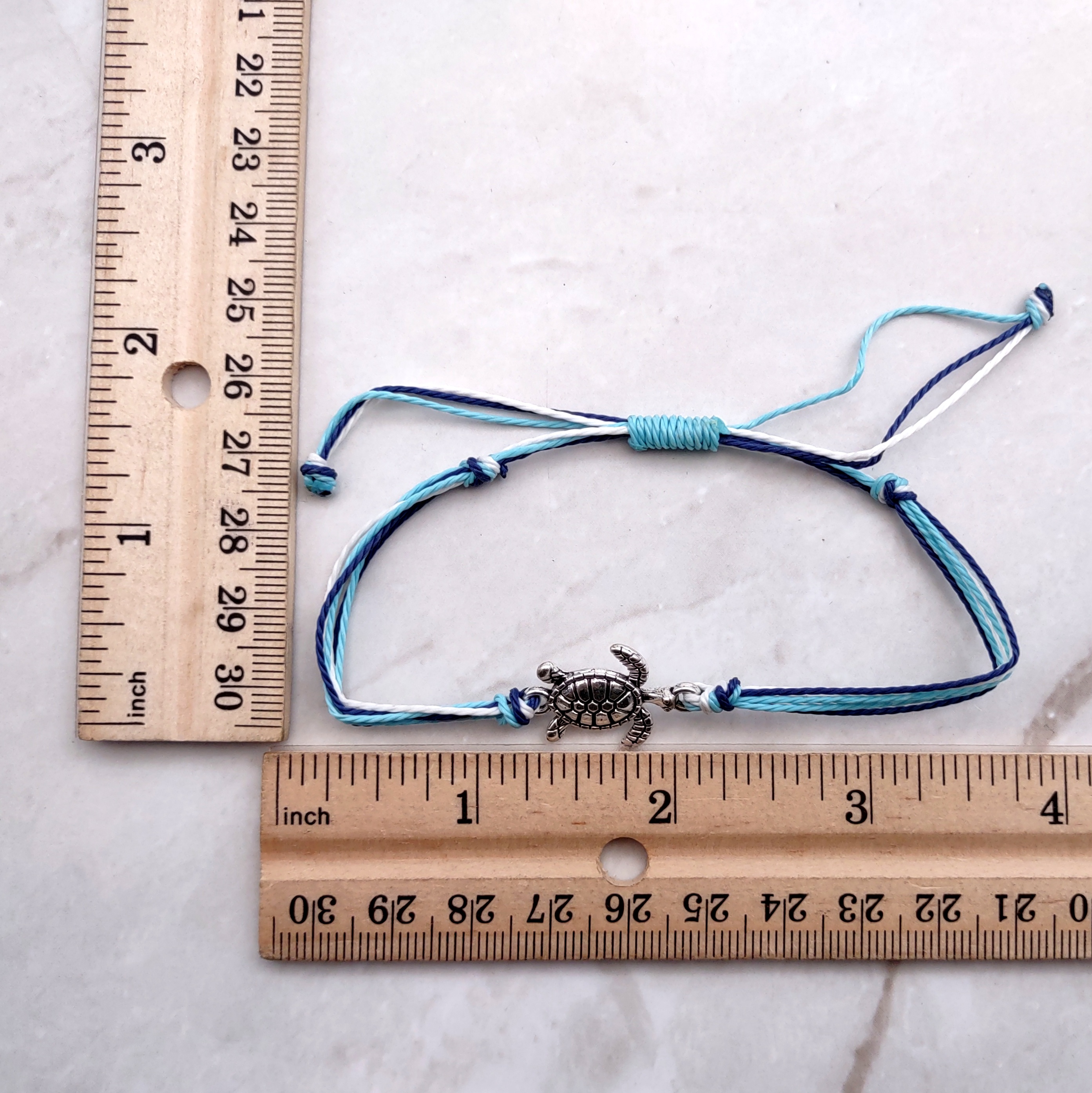 Sea Turtle Charm Bracelet Dark and Light Blue White Cord (approx. 5-7+ inches AROUND) Navy and Baby Blue Sea Turtle String Bracelet to gift!