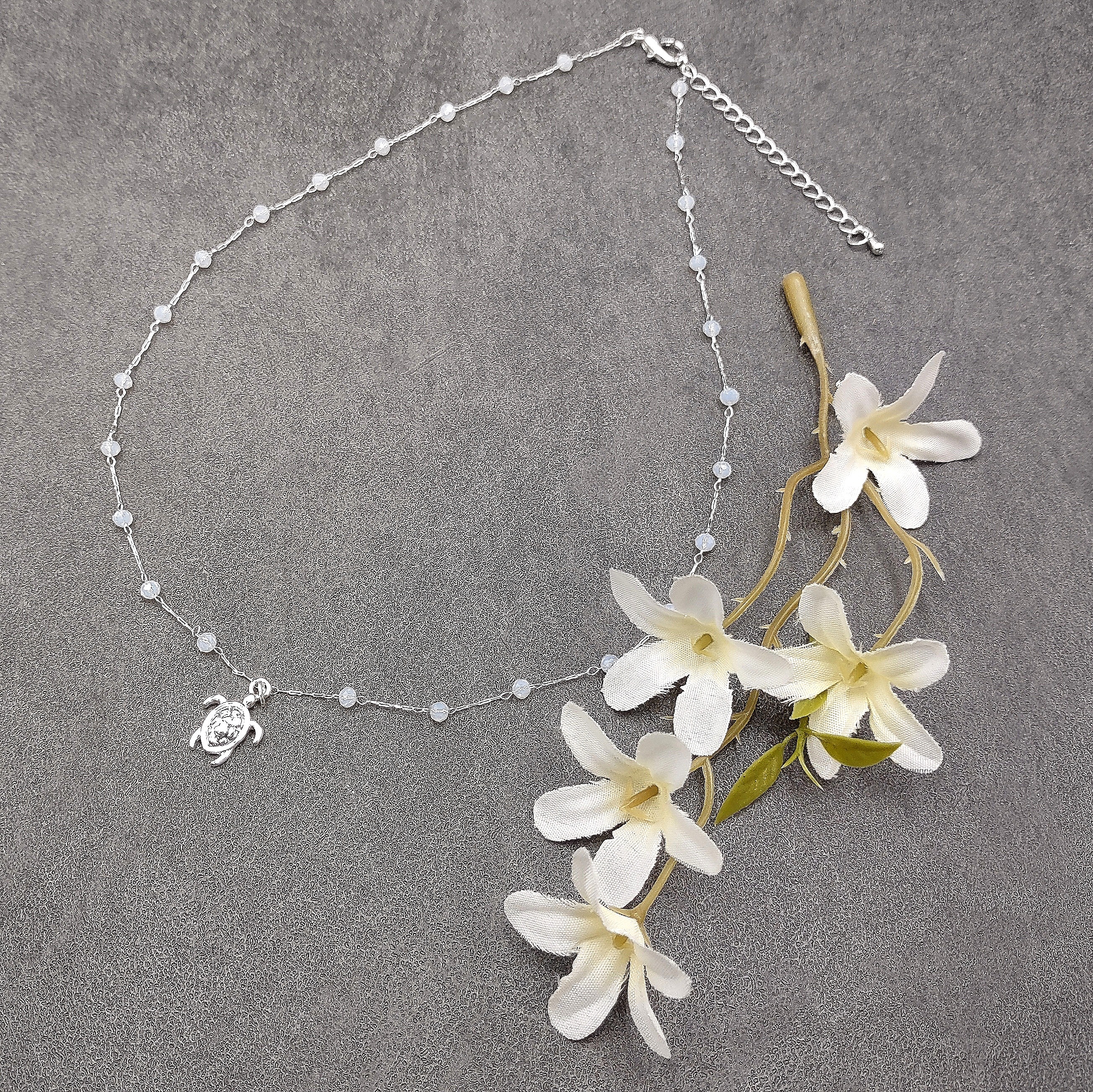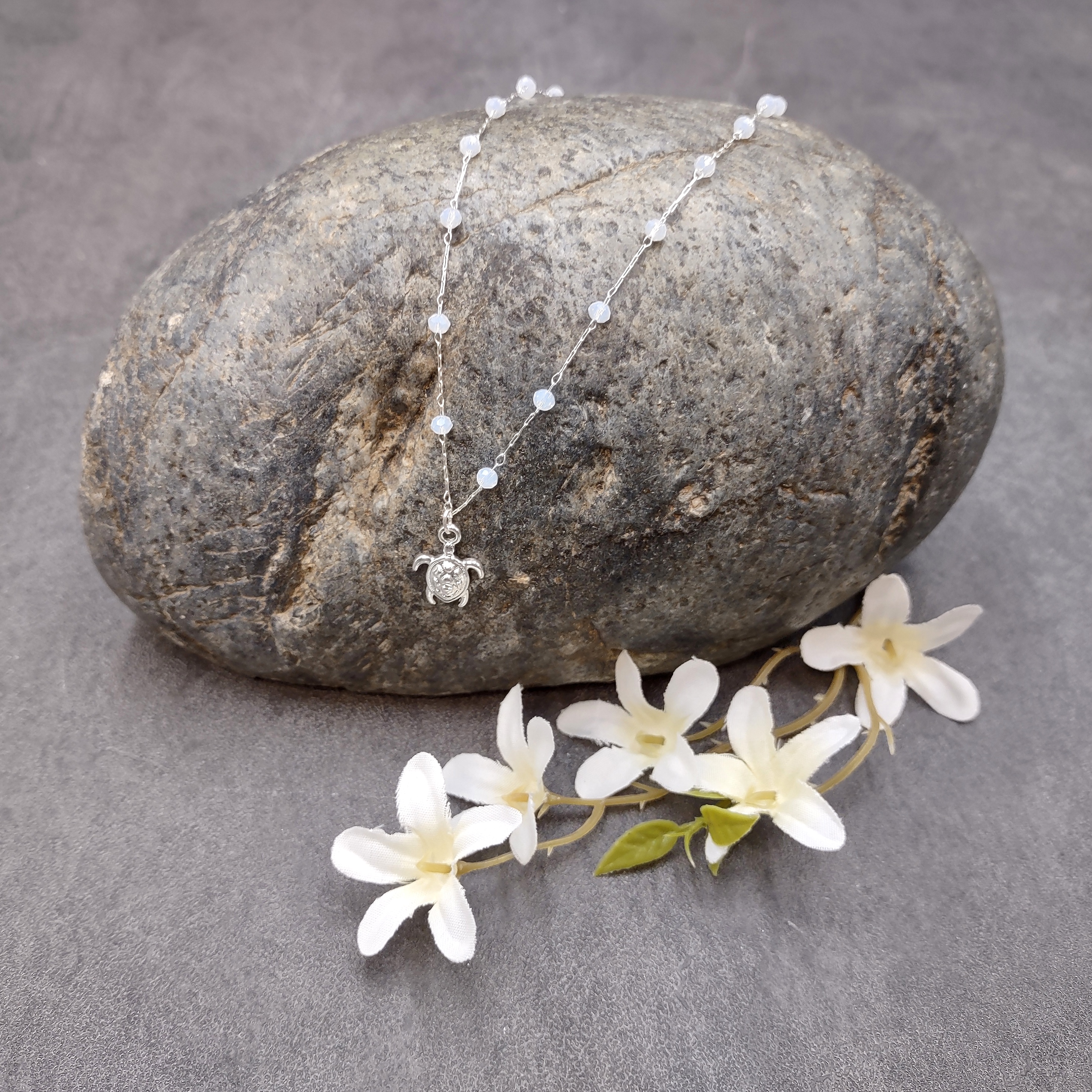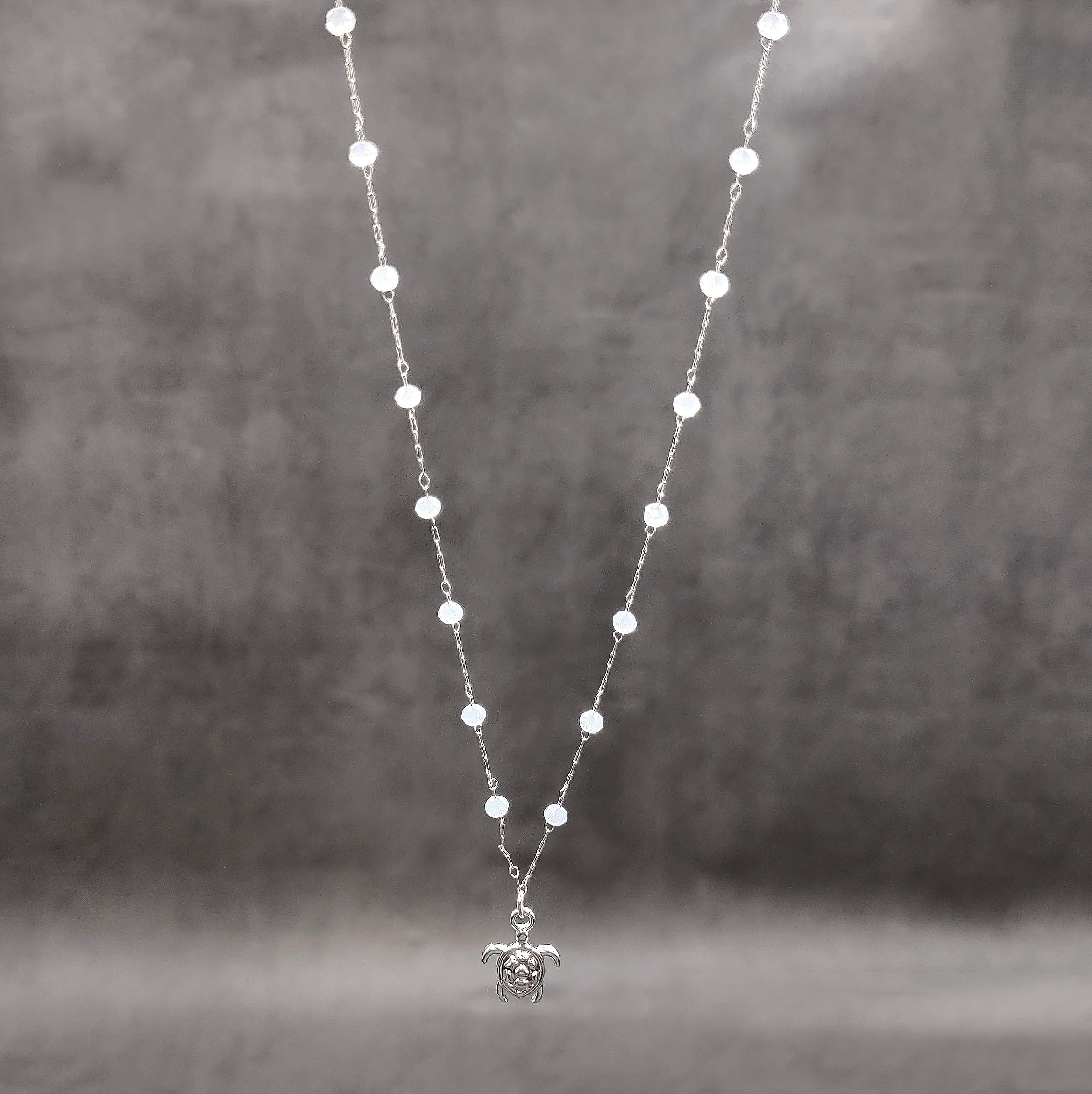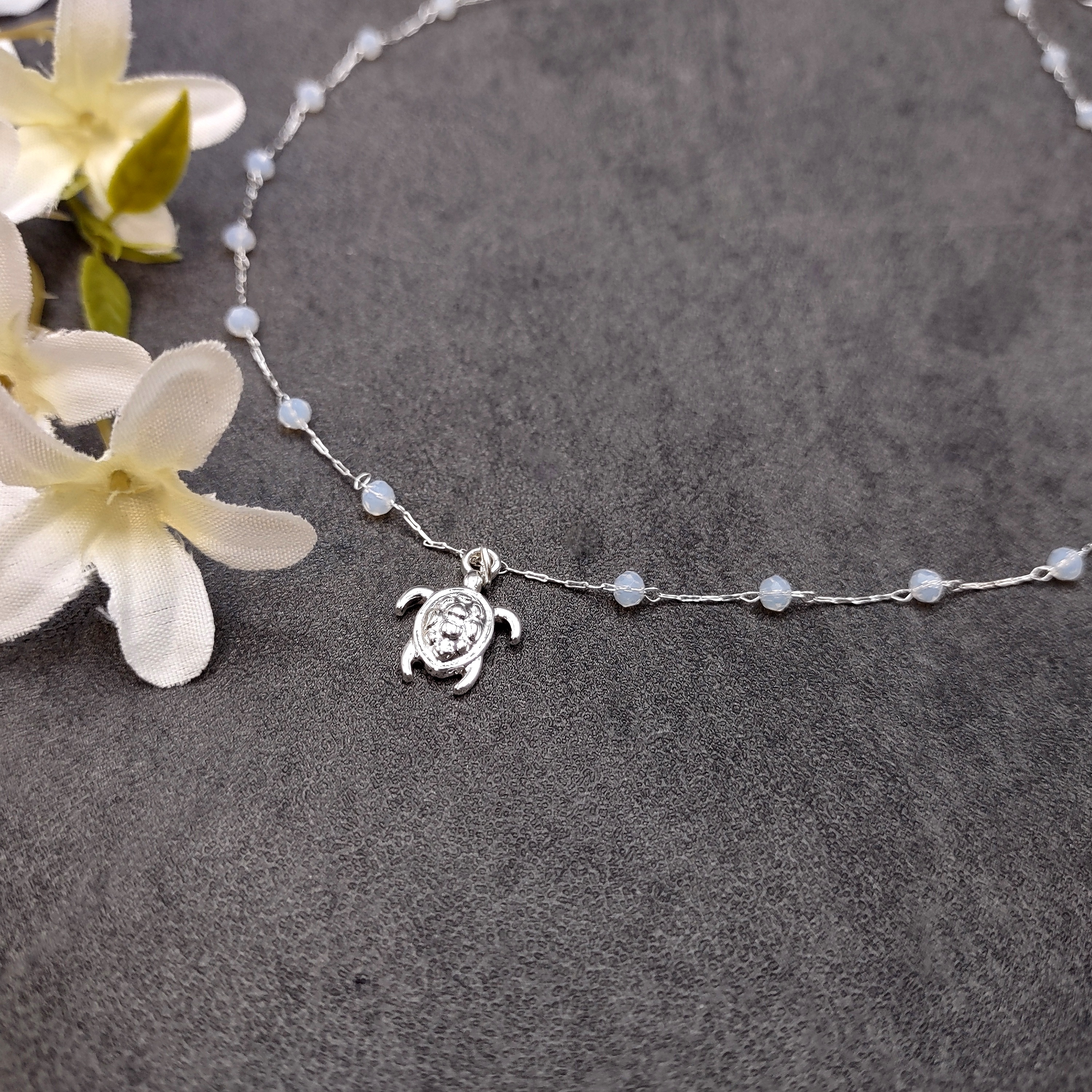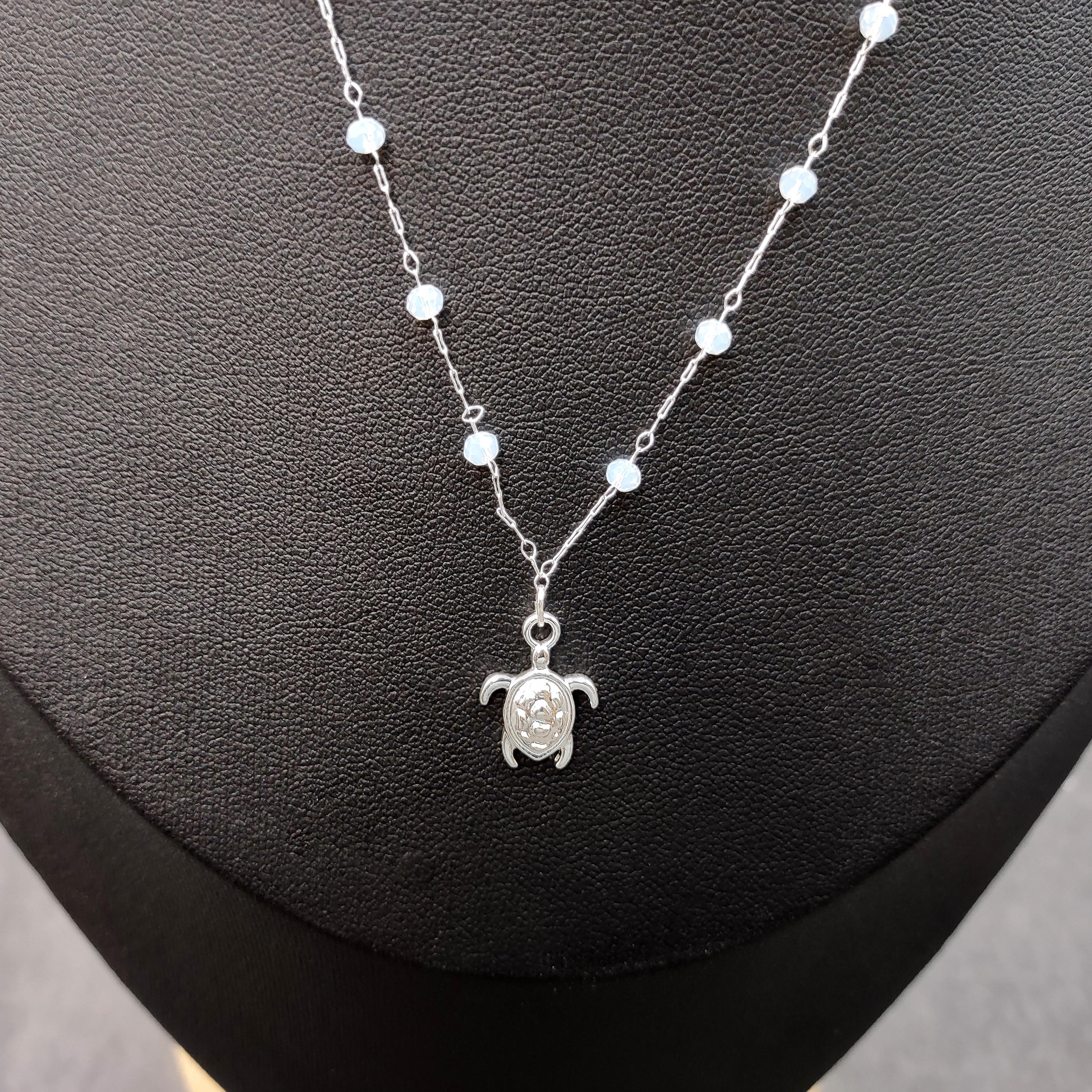 Customers often search for: sea turtle necklace, sea turtle charm, everyday jewelry, coastal necklace, white beads, layering necklace, white beaded, dainty beach style, fashion jewelry, silver tone jewelry, beach lover gift, charm necklace, sea turtle gift