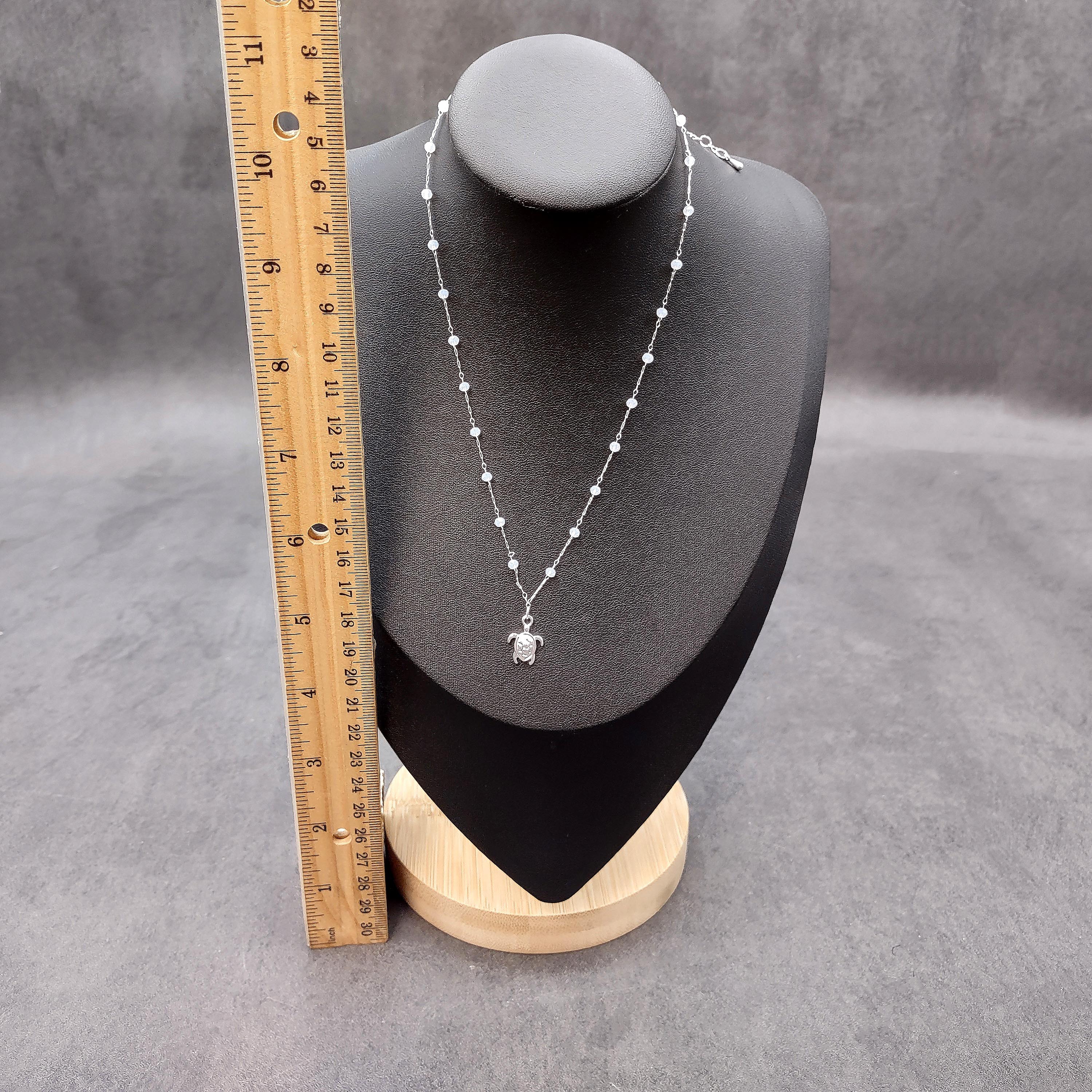 Sea Turtle Charm Necklace Delicate White Beads Silver Color (approx. 14+ inches AROUND) White Beads Silver Sea Turtle Chain for resort wear!