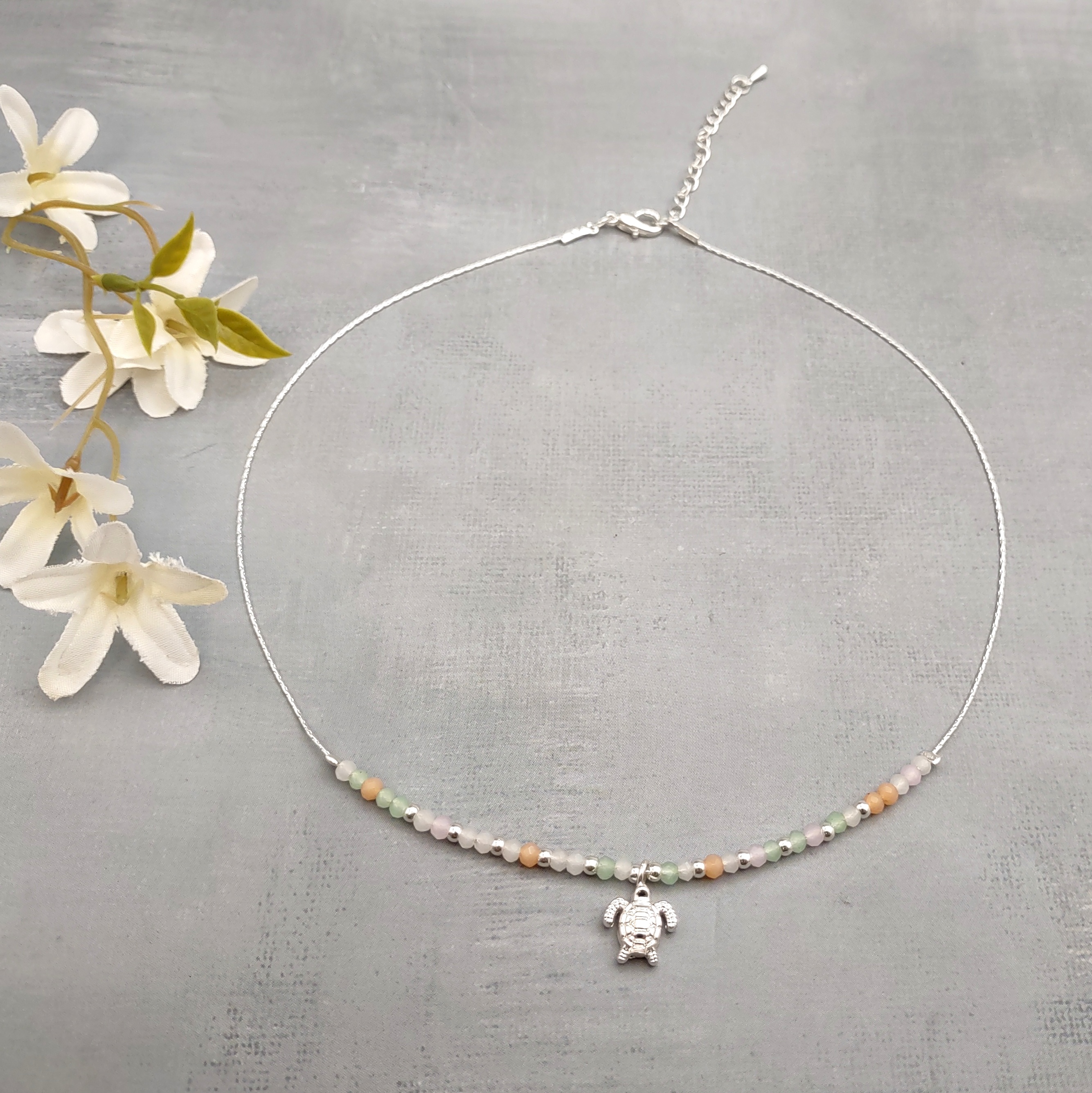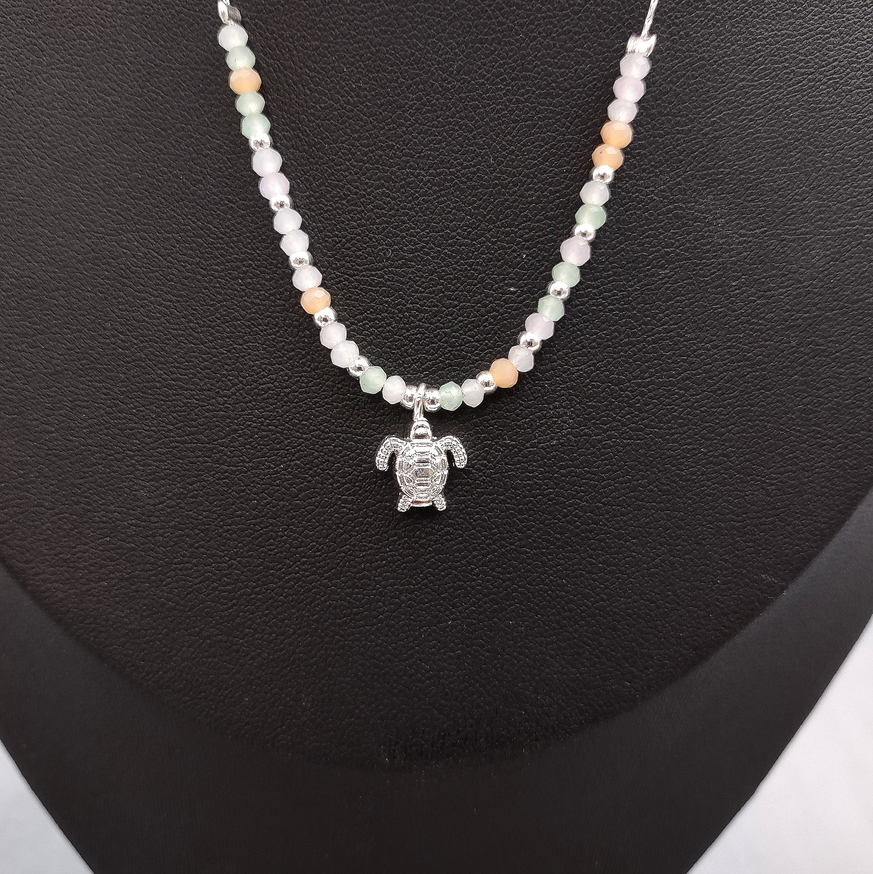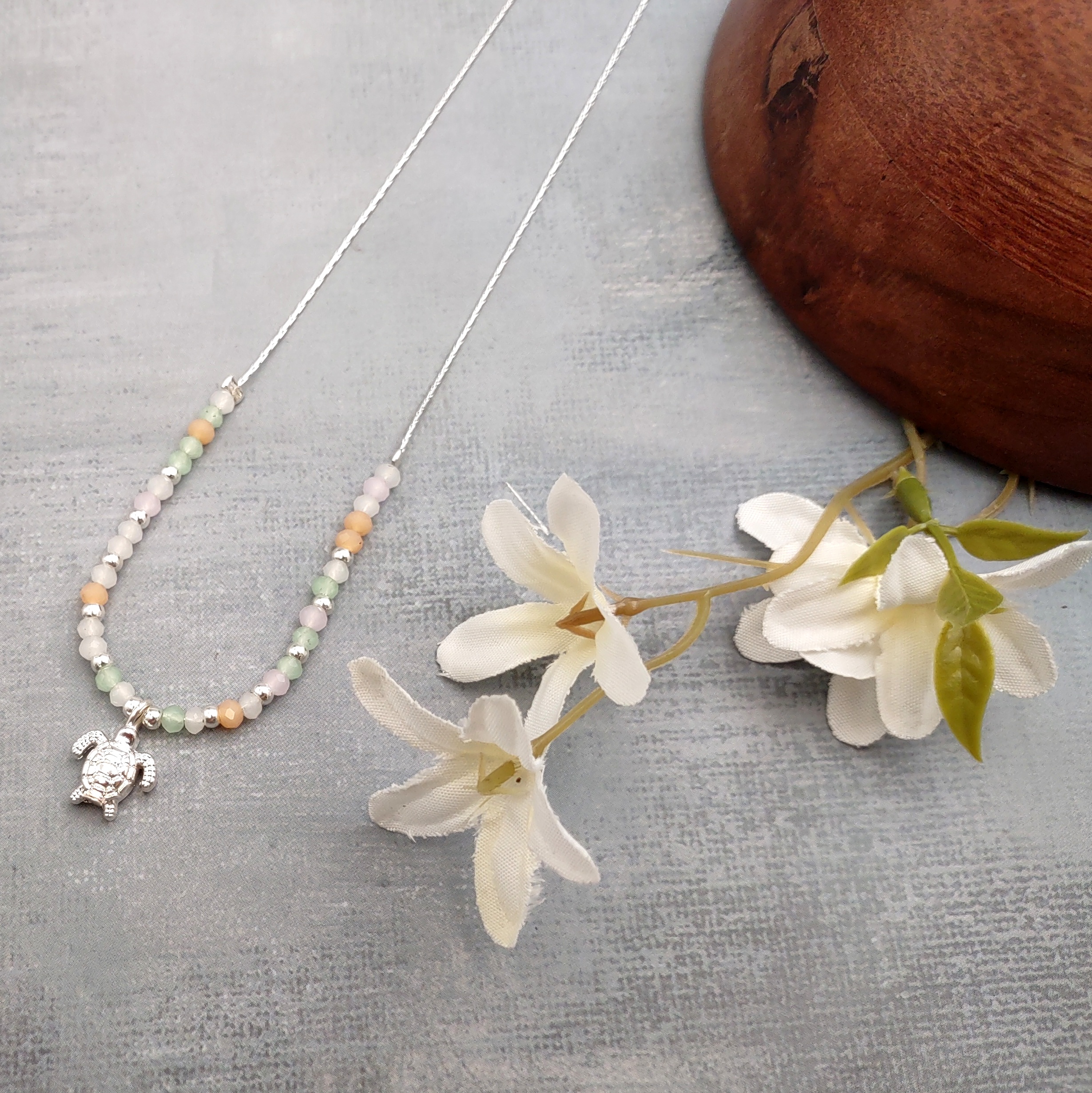 Customers often search for: sea turtle necklace, sea turtle charm, beaded necklace, orange green beads, fashion jewelry, beach necklace, ocean jewelry, sea life jewelry, turtle gift, sea turtle jewelry, boho beach style, thin chain necklace, everyday jewelry