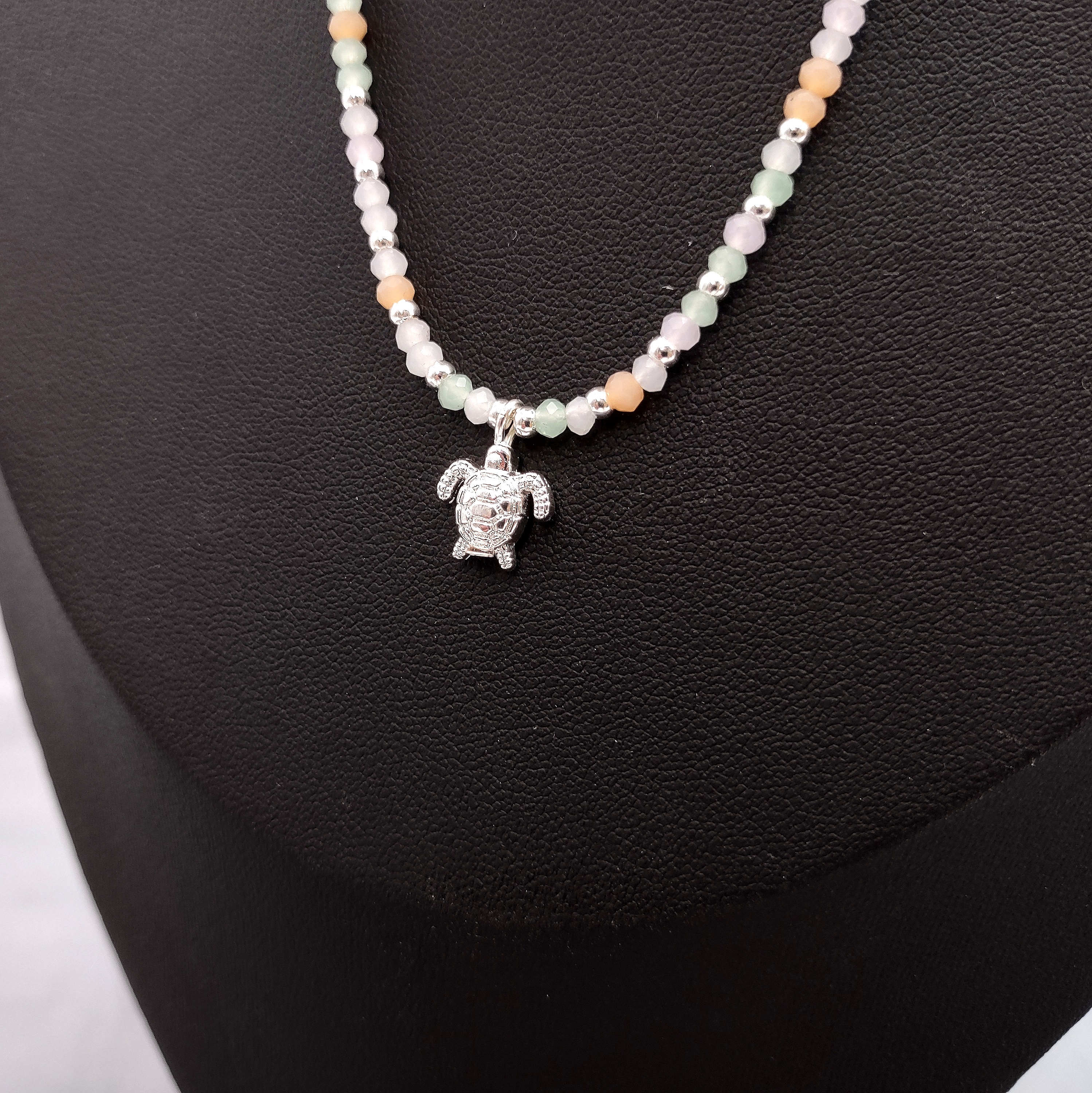 Sea Turtle Charm Necklace Orange Green Blue Beads Silver Color (approx. 14+ inches AROUND) Sea Turtle Necklace Jewelry for seaside wear!