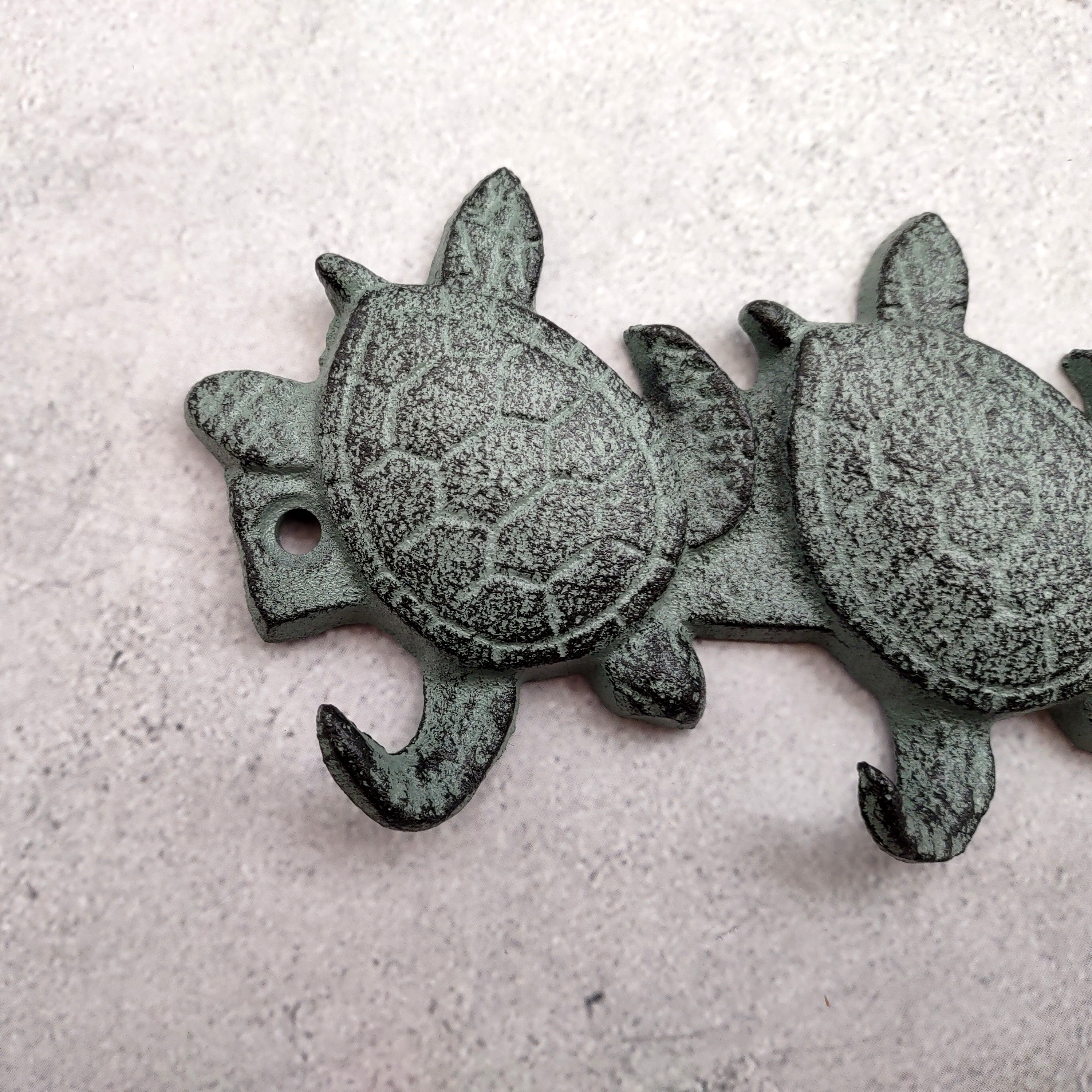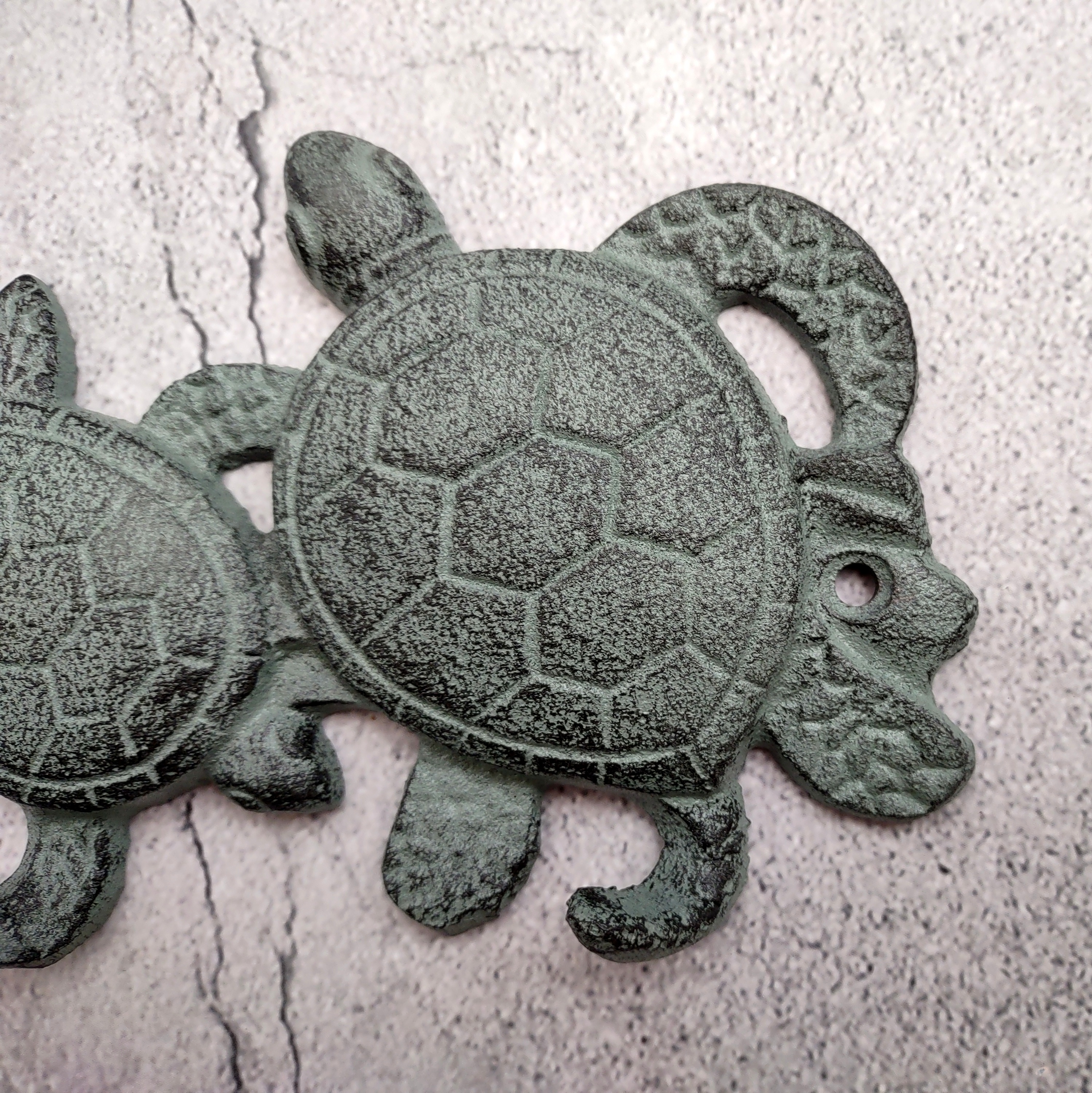 - 1 Cast Iron Antique Green Patina Sea Turtle Family Wall Hook