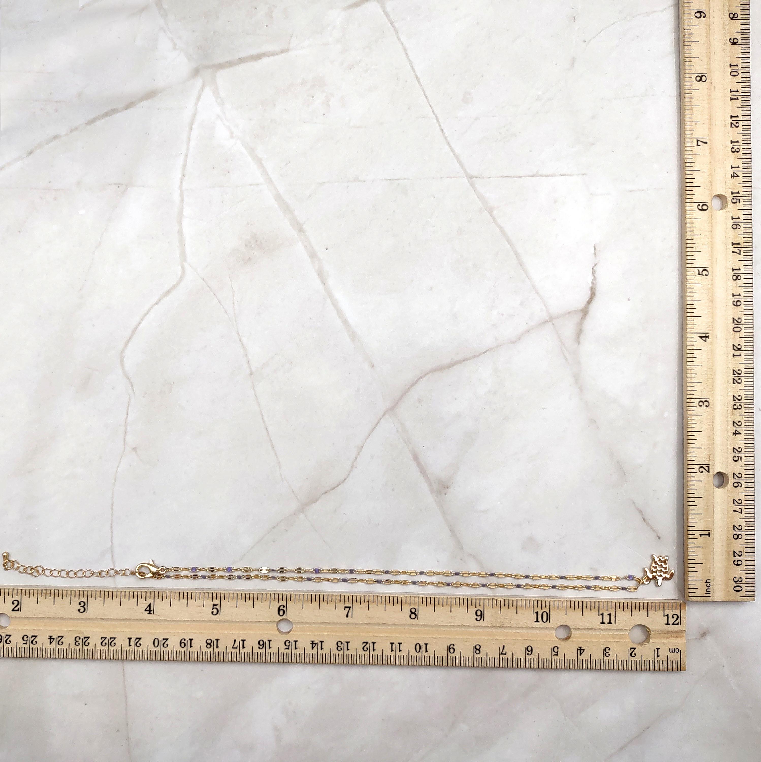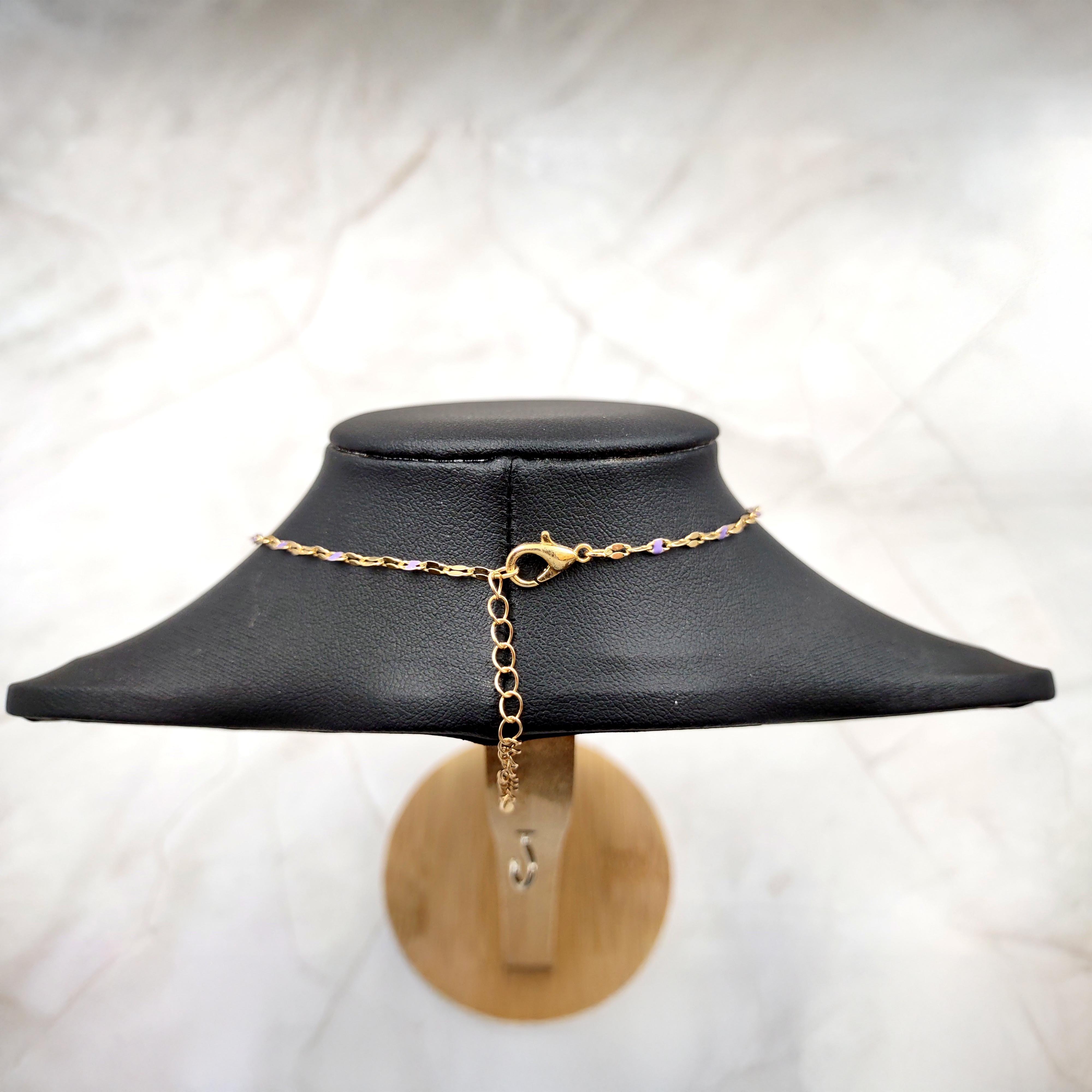 With its slim, lightweight design, this necklace measures approximately 16+ inches around, offering a comfortable and flattering fit for everyday wear. The subtle shimmer of gold paired with the soft purple details creates a timeless coastal look that complements any outfit.