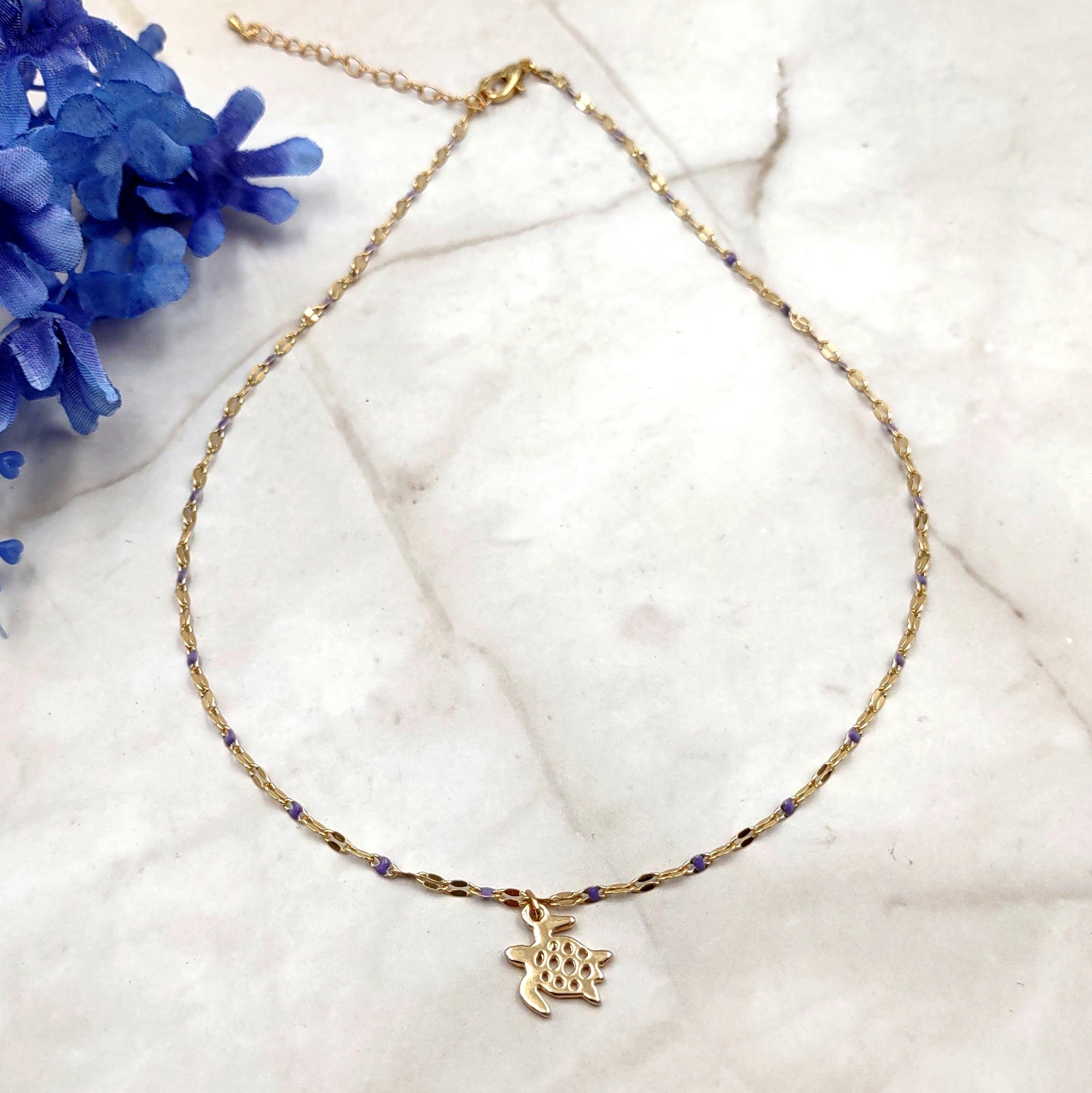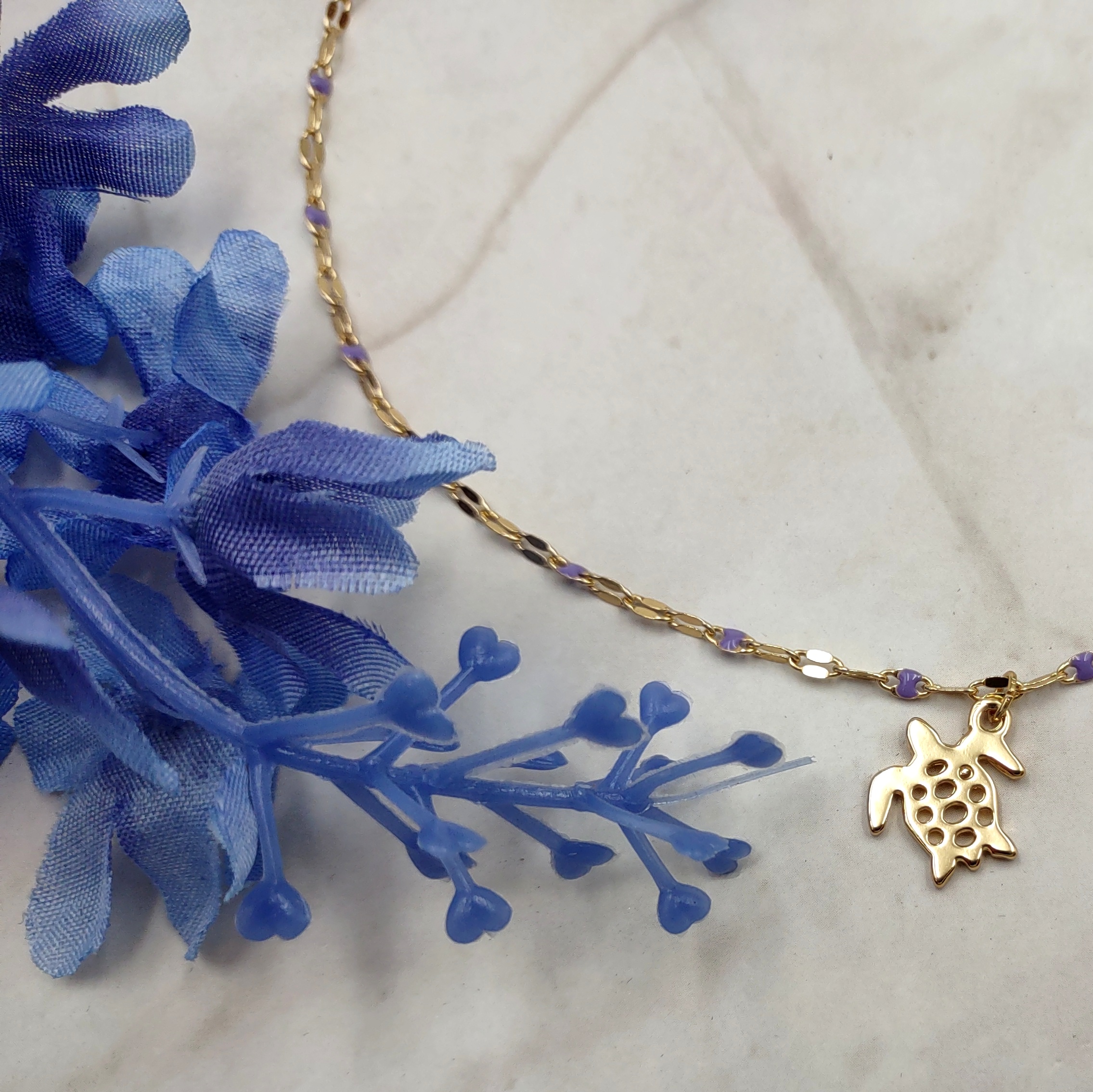Customers often search for: gold turtle charm, sea turtle necklace, ocean jewelry, beach necklace, coastal jewelry, turtle pendant, purple accent chain, nautical jewelry, turtle gift, ocean charm, boho jewelry, sea turtle jewelry, fashion jewelry