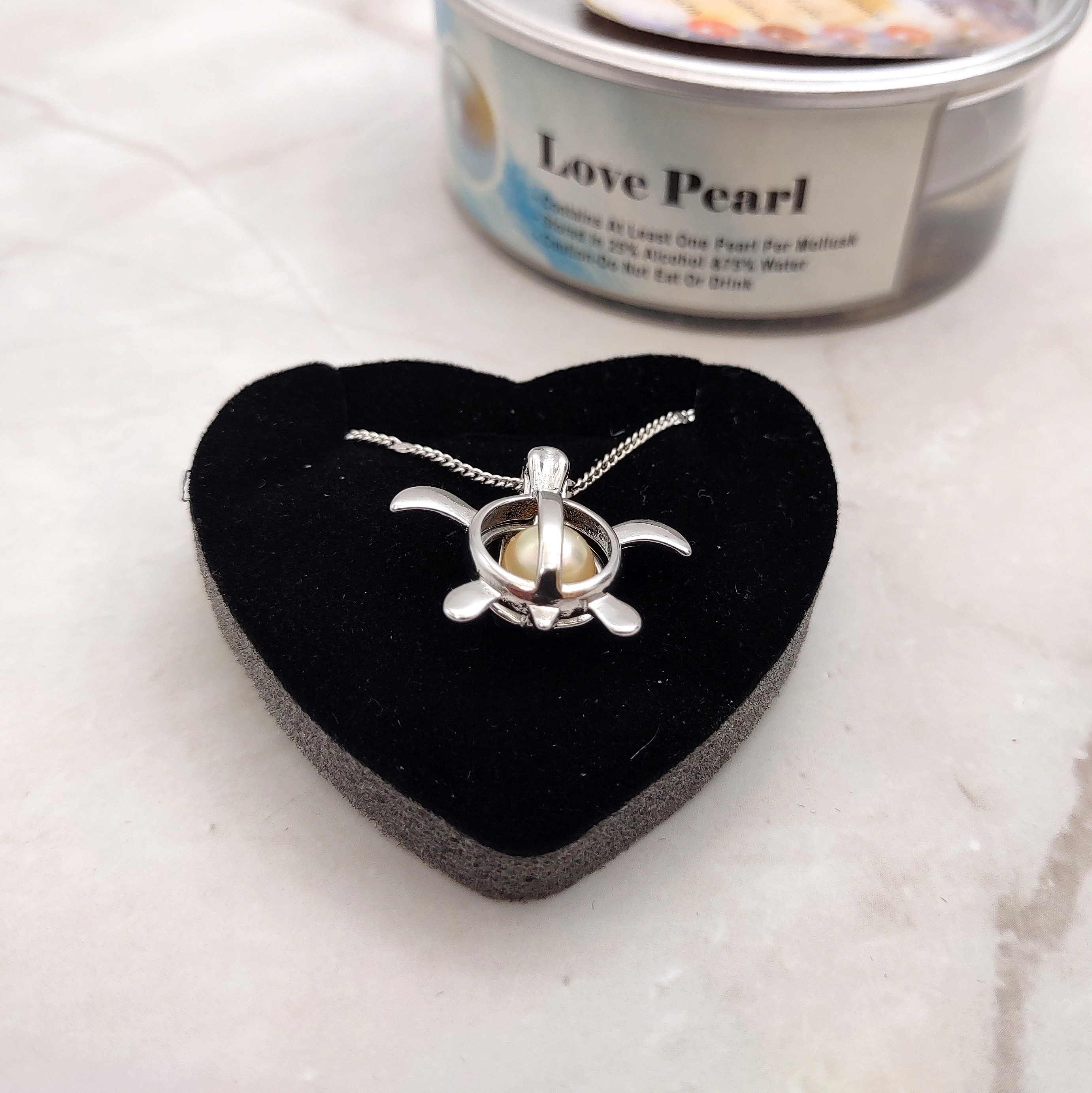 To reveal your fortune, simply make a wish and open the sealed can. Carefully open the clam to retrieve the pearl, then insert it into the pendant to complete your meaningful jewelry piece. Wear it close to your heart and carry a little piece of ocean-inspired magic and good luck wherever you go. Order your Sea Turtle Fortune Love Pearl Necklace today and let your wishes set sail!