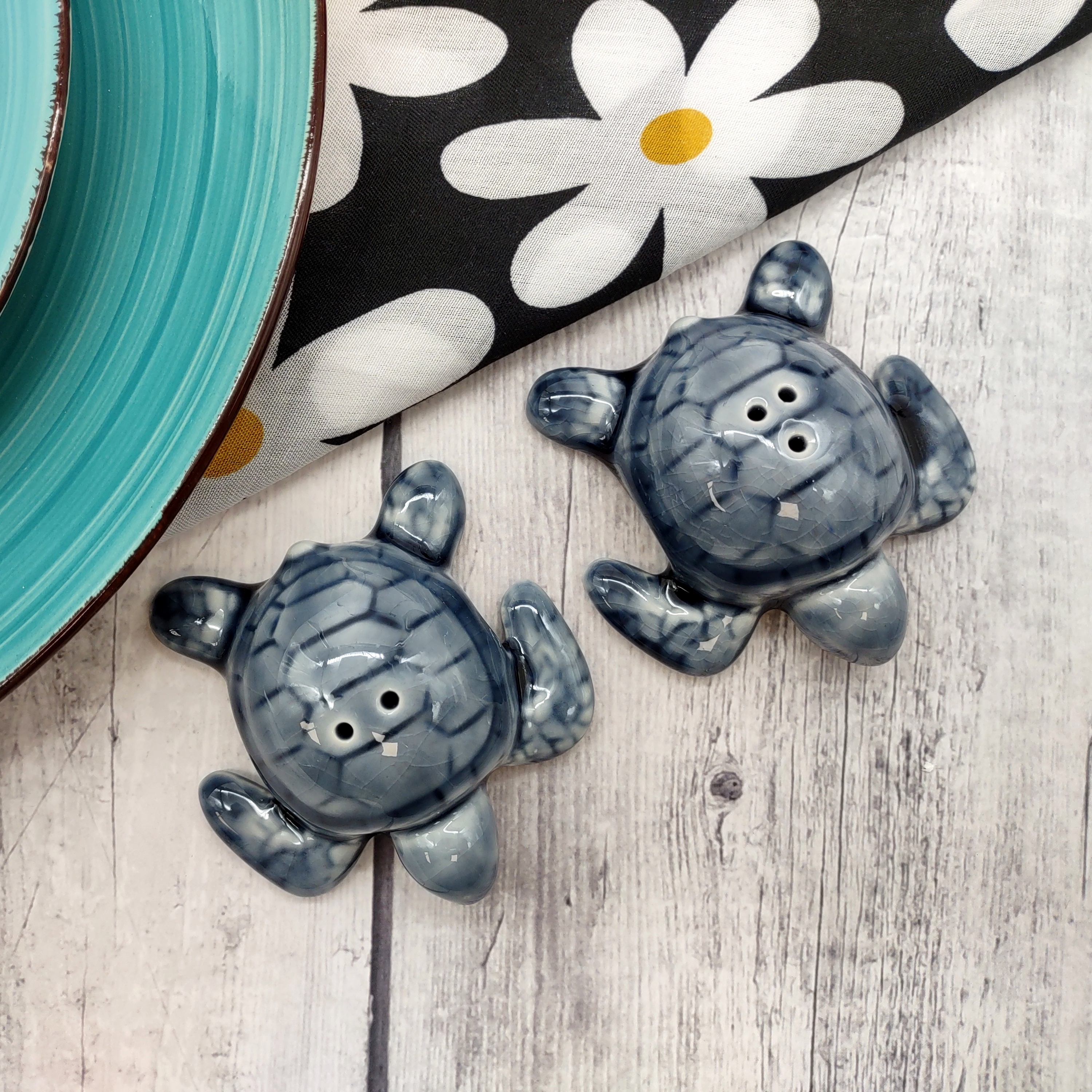 - Dark Blue White Sea Turtle Salt Pepper Shaker Set
