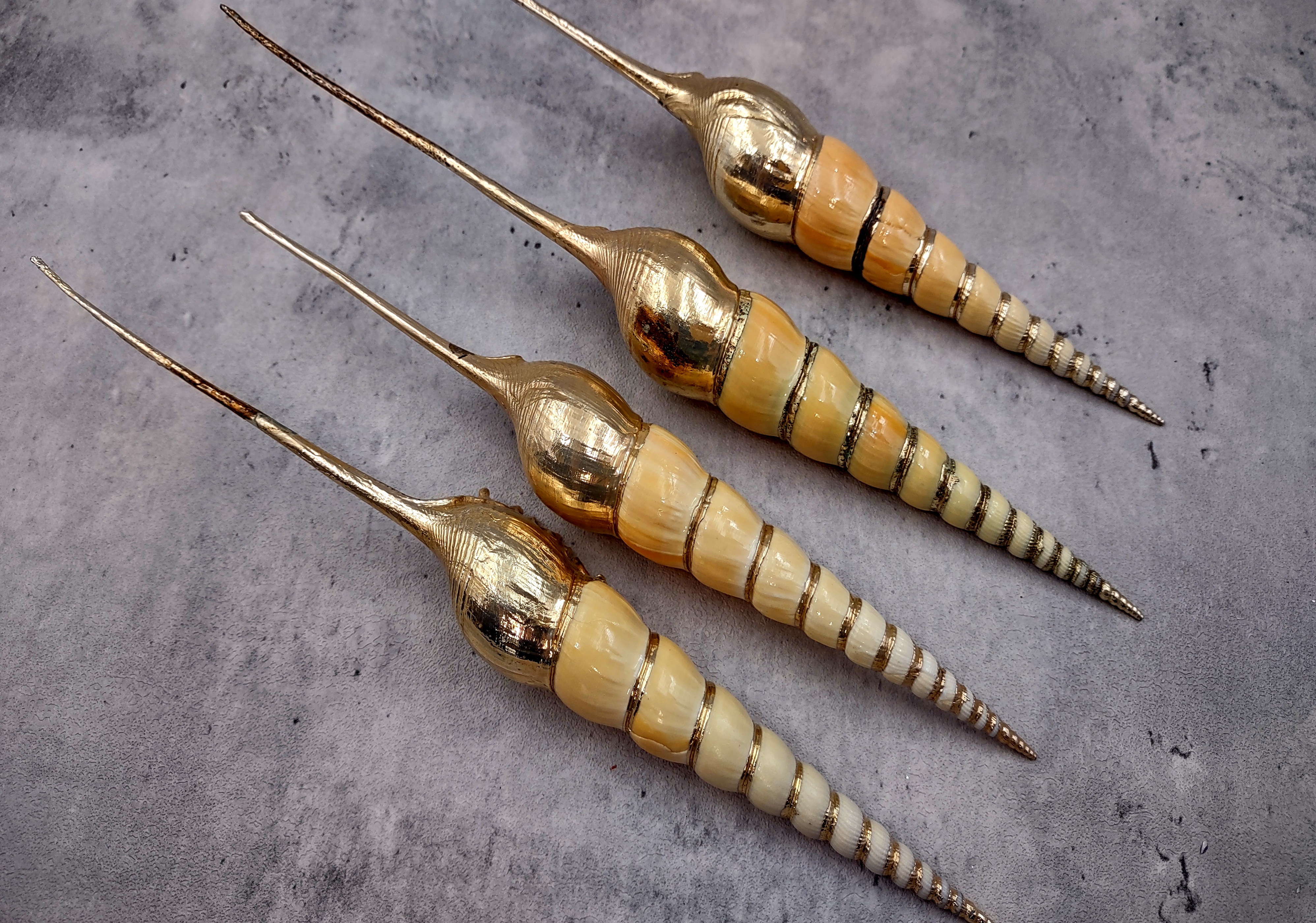 Silver plated Shin-Bone Tibia Seashells are versatile additions to any retro home collection or office display. Coastal customers appreciate using these shells to bring a touch of the ocean into their home. Beyond home decor, these shells serve as excellent bases for DIY projects like wedding table centers, candle holders, or destination memory projects—the possibilities are only limited by imagination.
