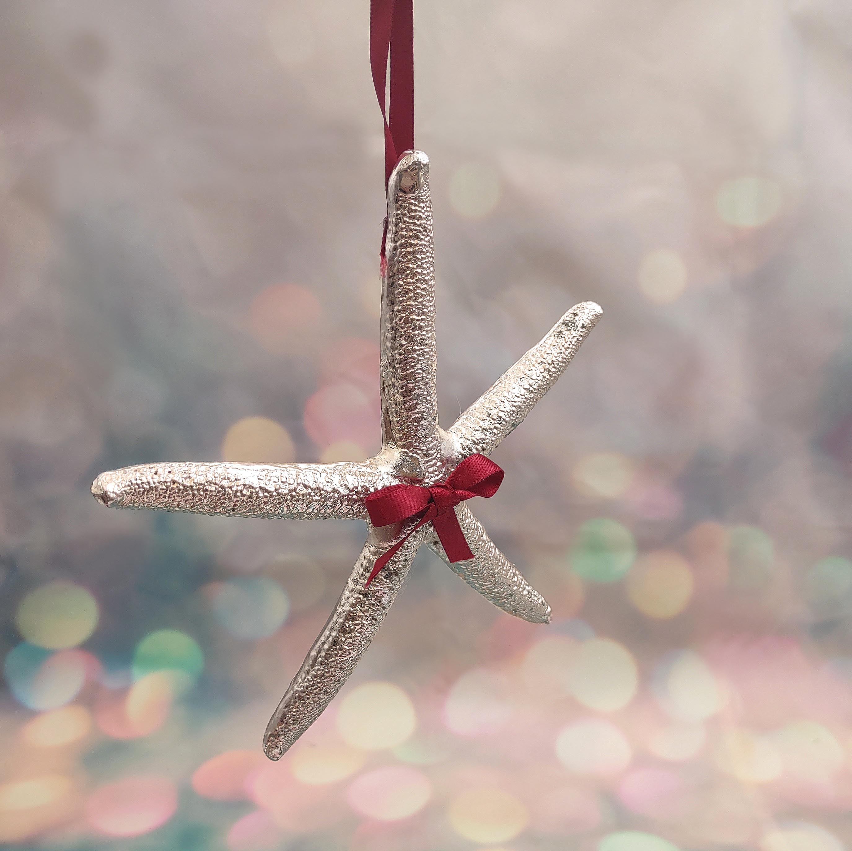 Silver Dipped Starfish Xmas Ornament great for ocean décor, Coastal Christmas Trees, collecting, Beachy Vibes all Season Long or gifts!