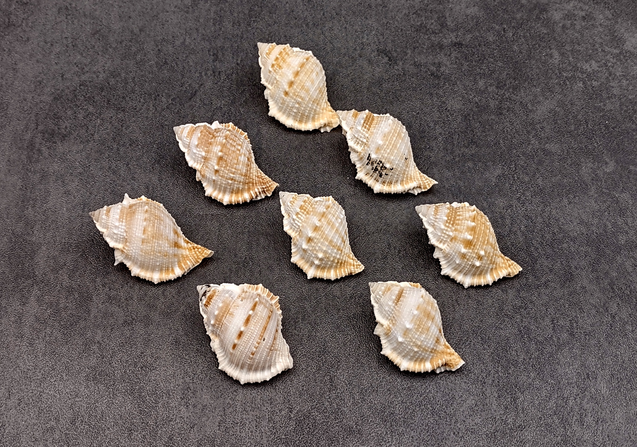 These are very pretty decorative pieces. Underwater Frog Sea Snail Shells (Bursa Rana or Bufonaria Rana) come in many shapes and sizes and these shells have beautiful markings and coloration. Can be used for small hermit crab homes. Creamy white shell with brown spotting and marks over the entire shell.
