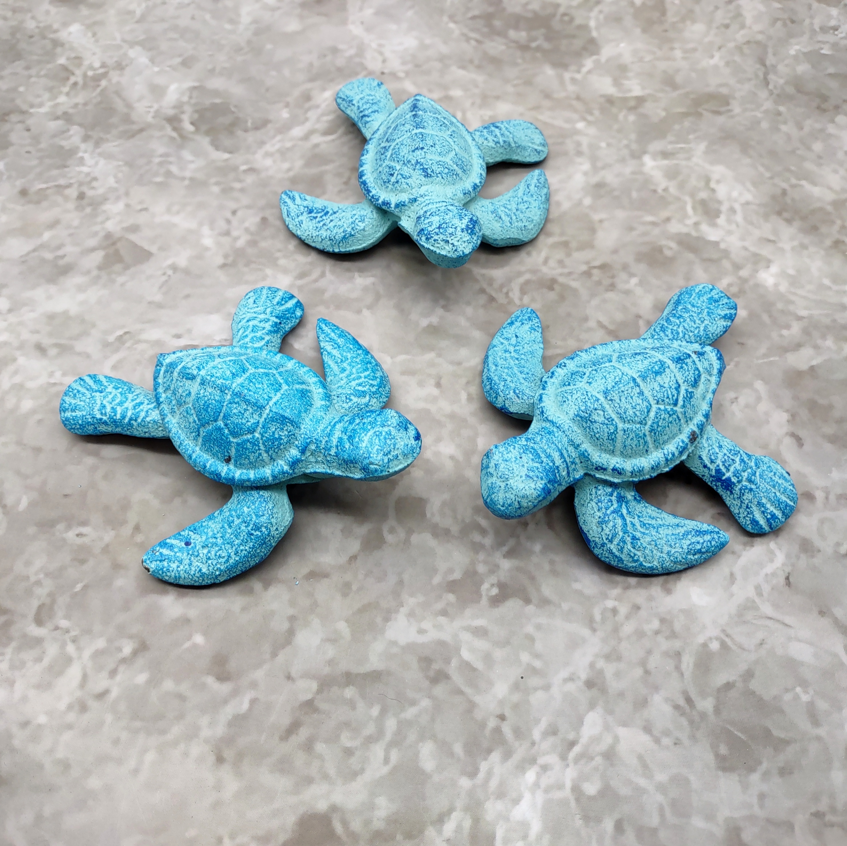 Small Metal Aqua Blue Sea Turtle Figurine (1 turtle figure approx. 3.75+ inches) Small Iron Blue Sea Turtle for coastal home decor & gifts!