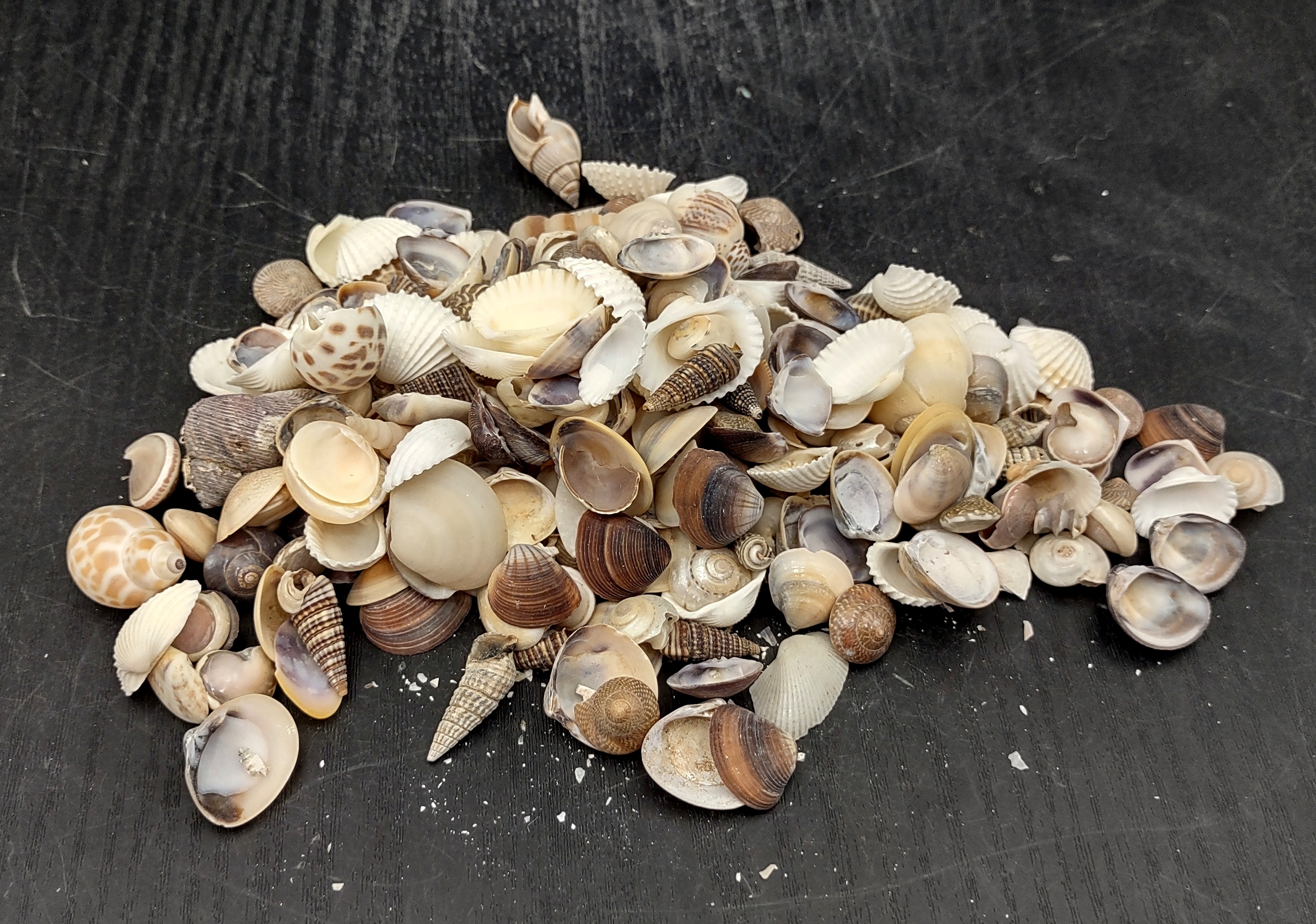 The extra small mixed shell assortment is filled with a variety of shells. You may get umbonium, pectens, urchins, cowries, olive shells, conch, frog shells, limpets, etc. Every bag is different!
